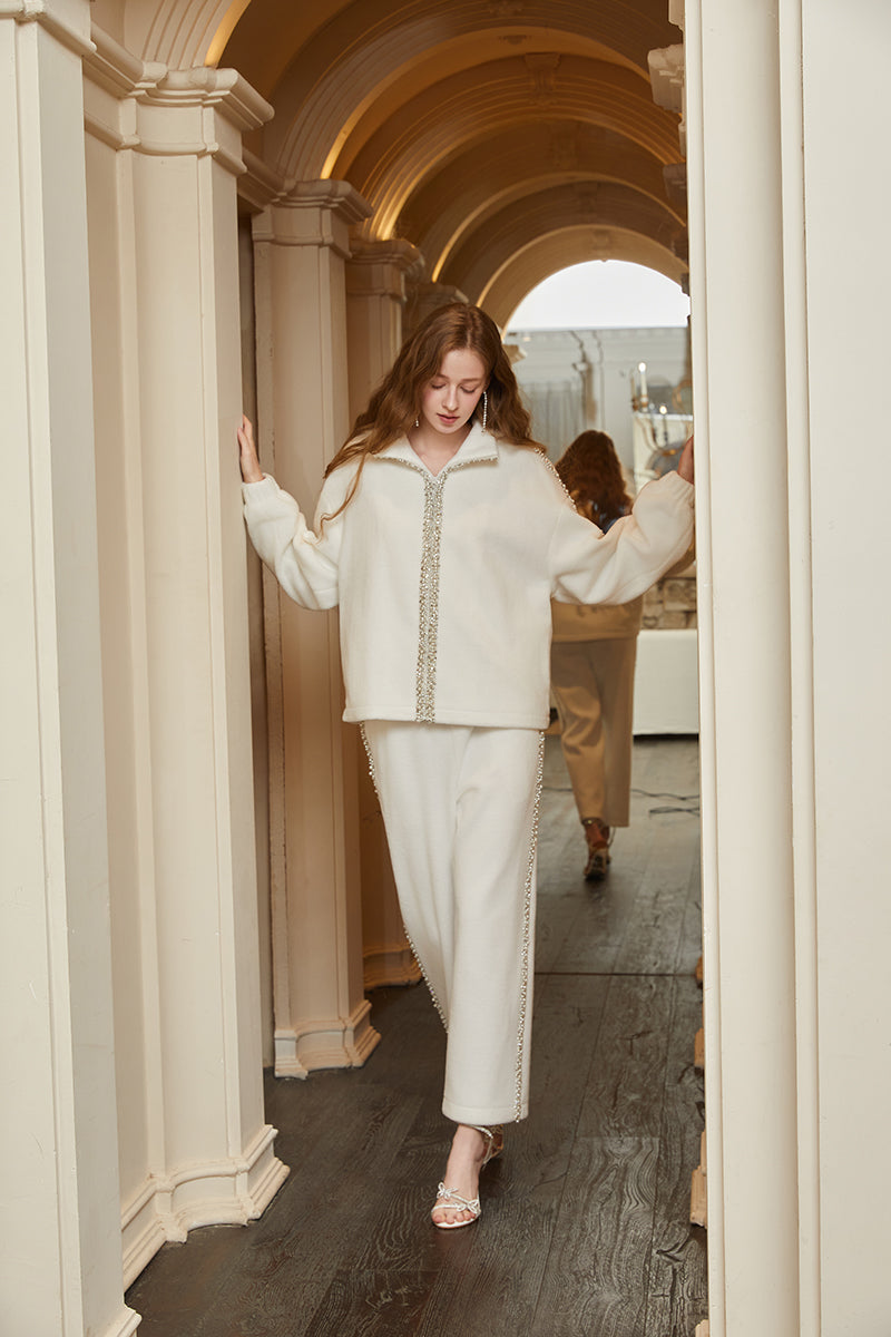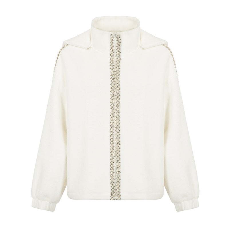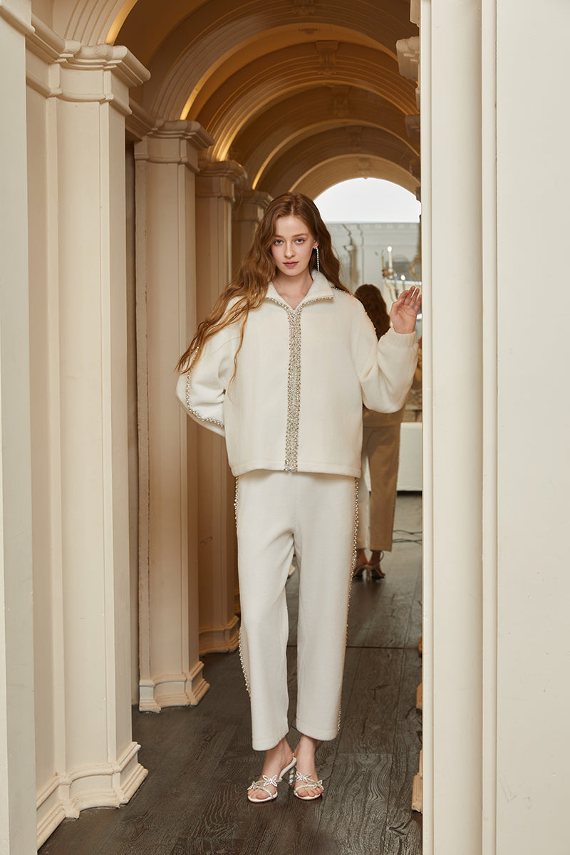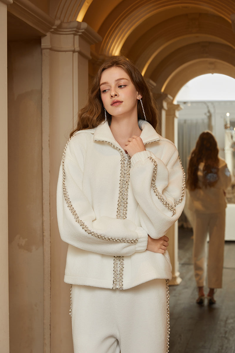CEE CUBED Pearl Crystal Embellished Hooded Jacket & Sweatpants Set