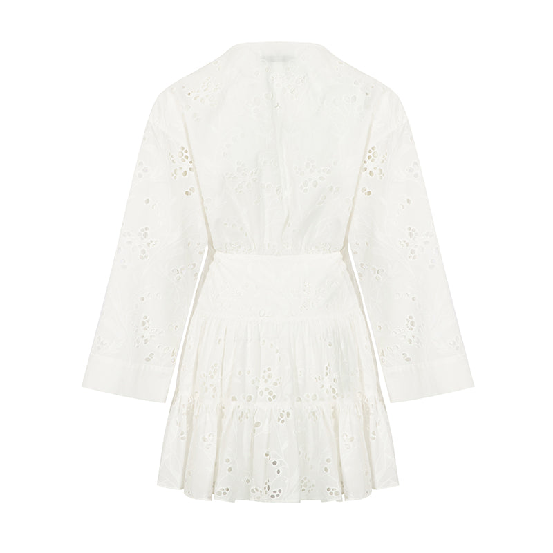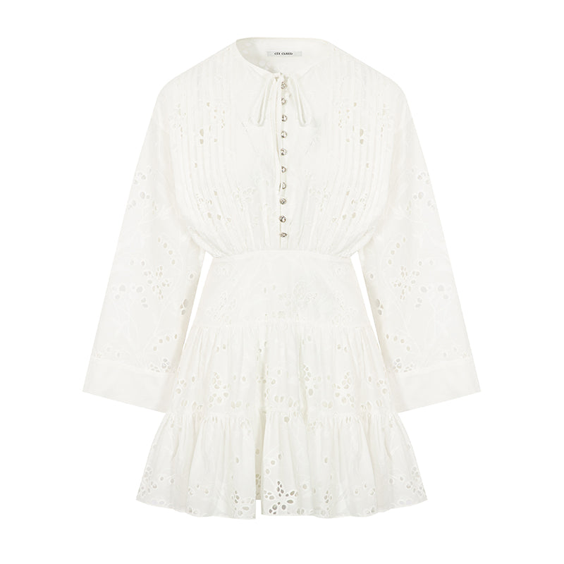 CEE CUBED White Pleated Cutout Embroidered Dress