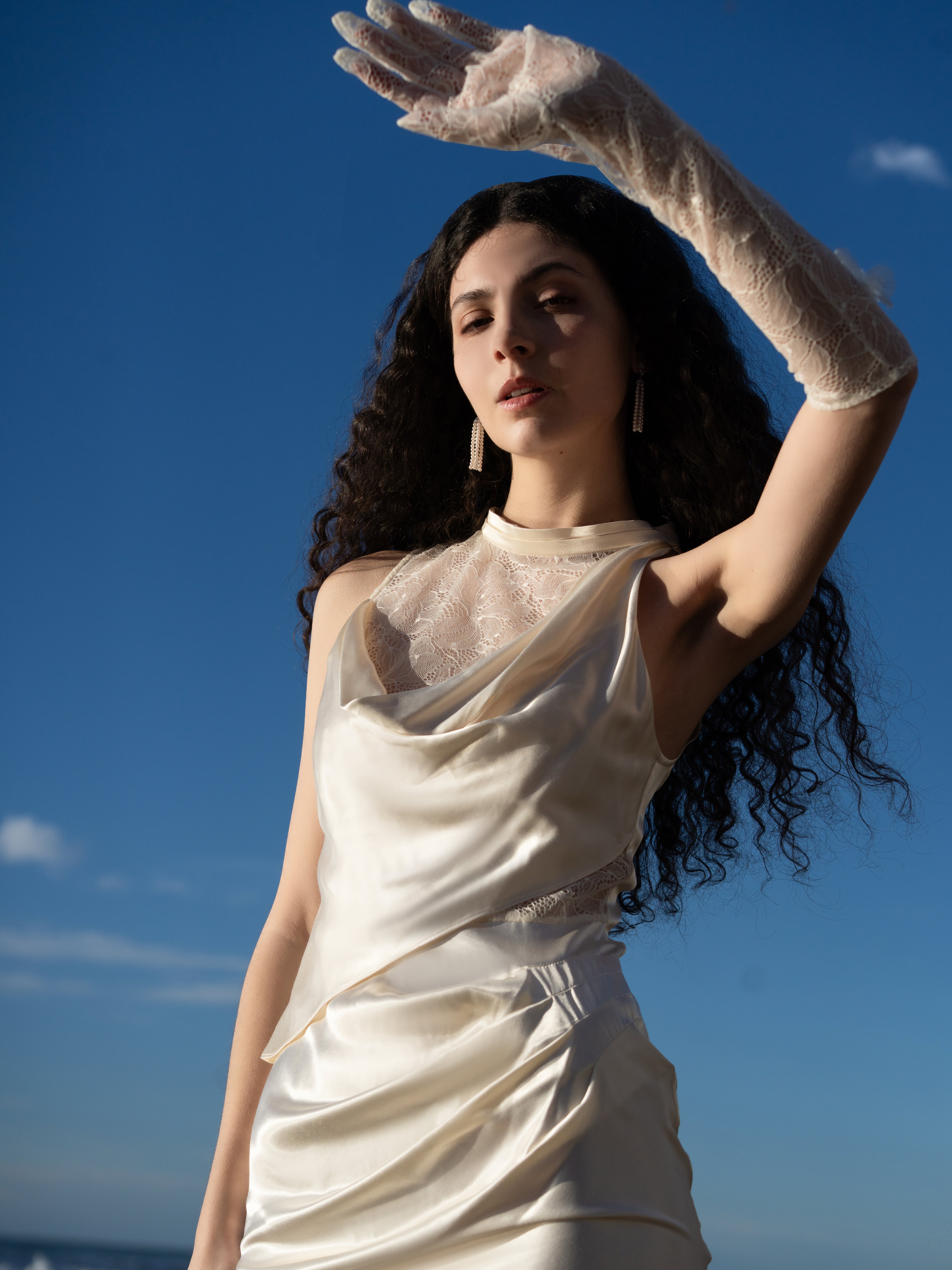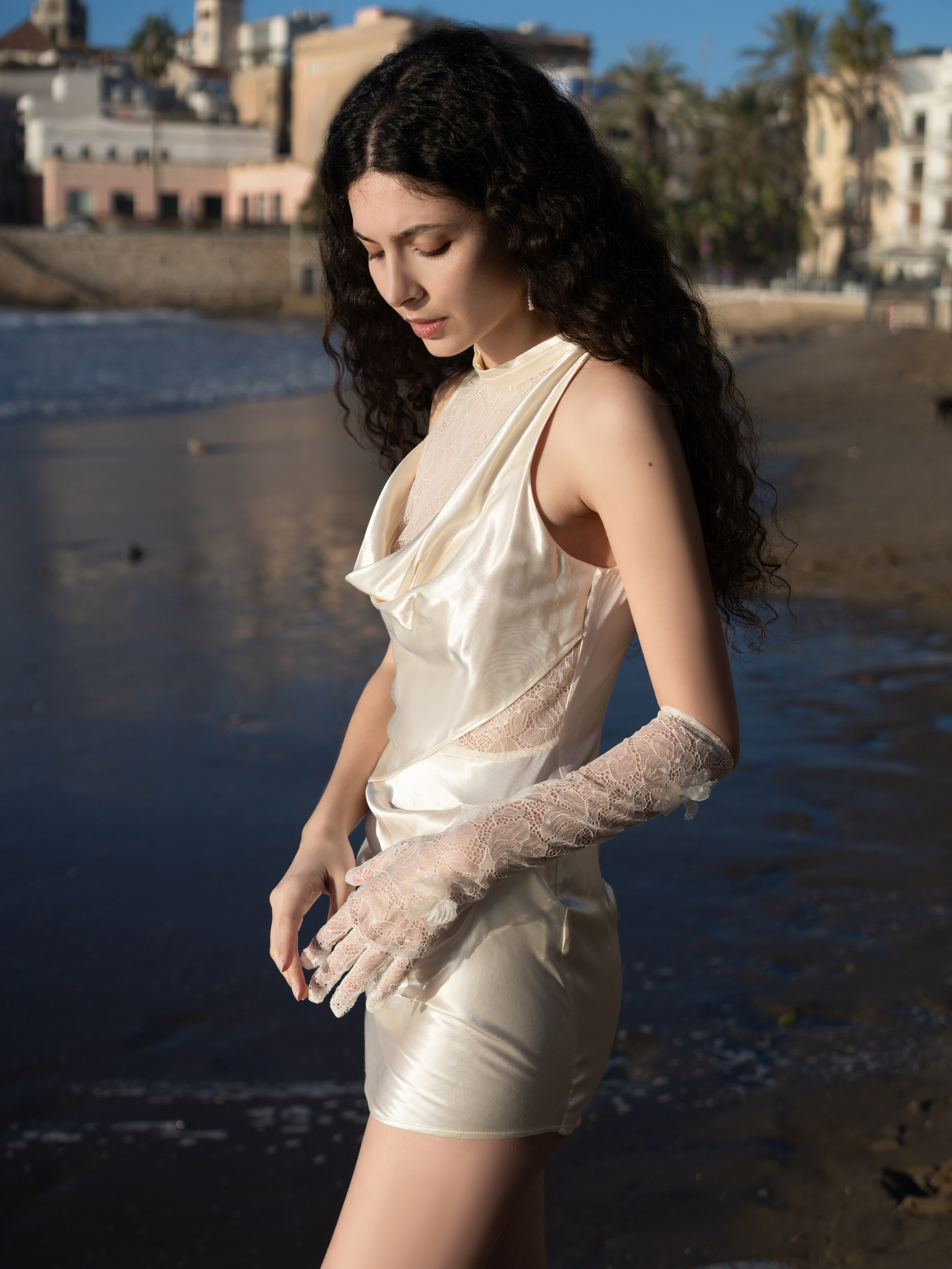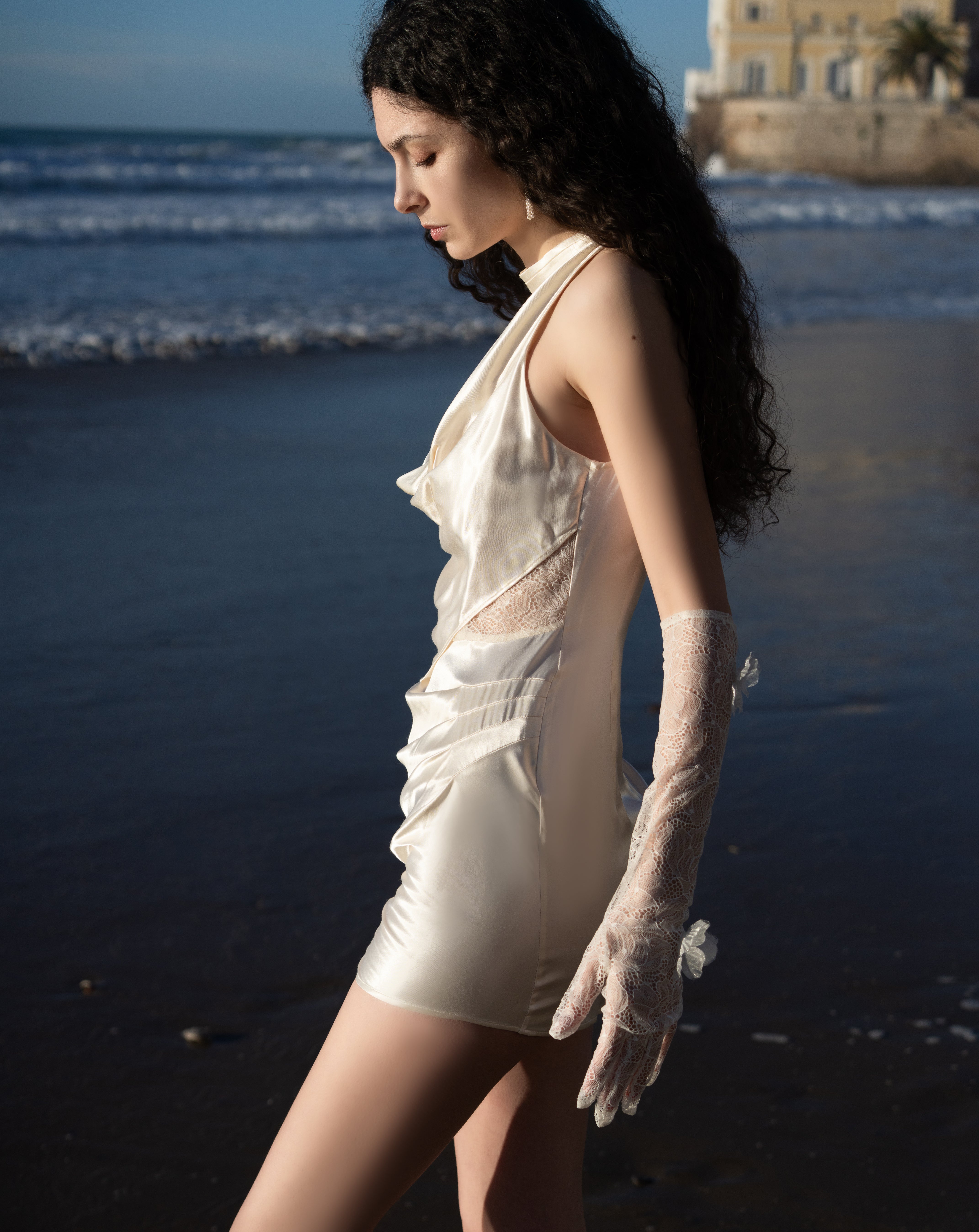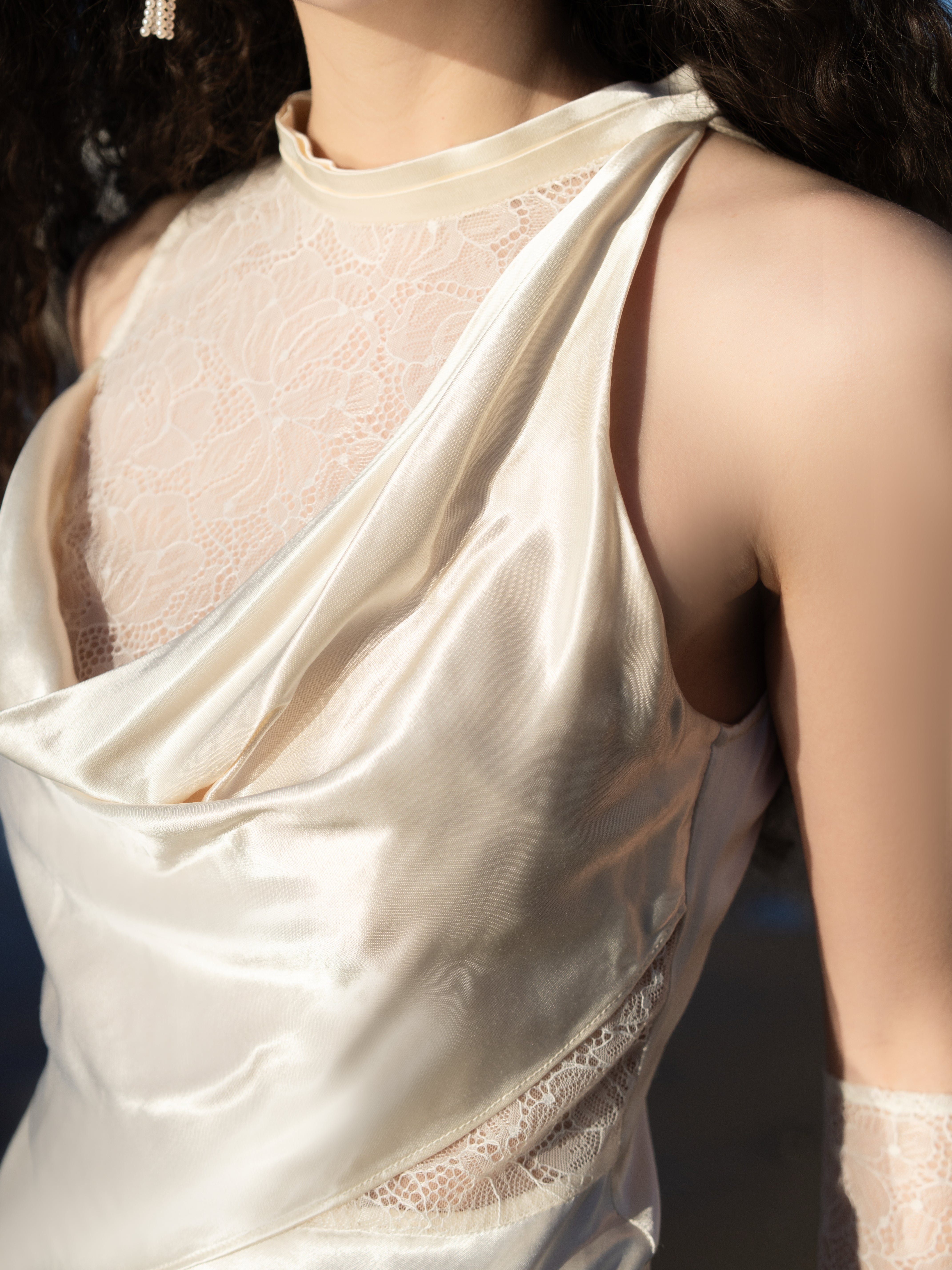 MIMI PLANGE Liquid-Shine Draped Acetate Lace Dress