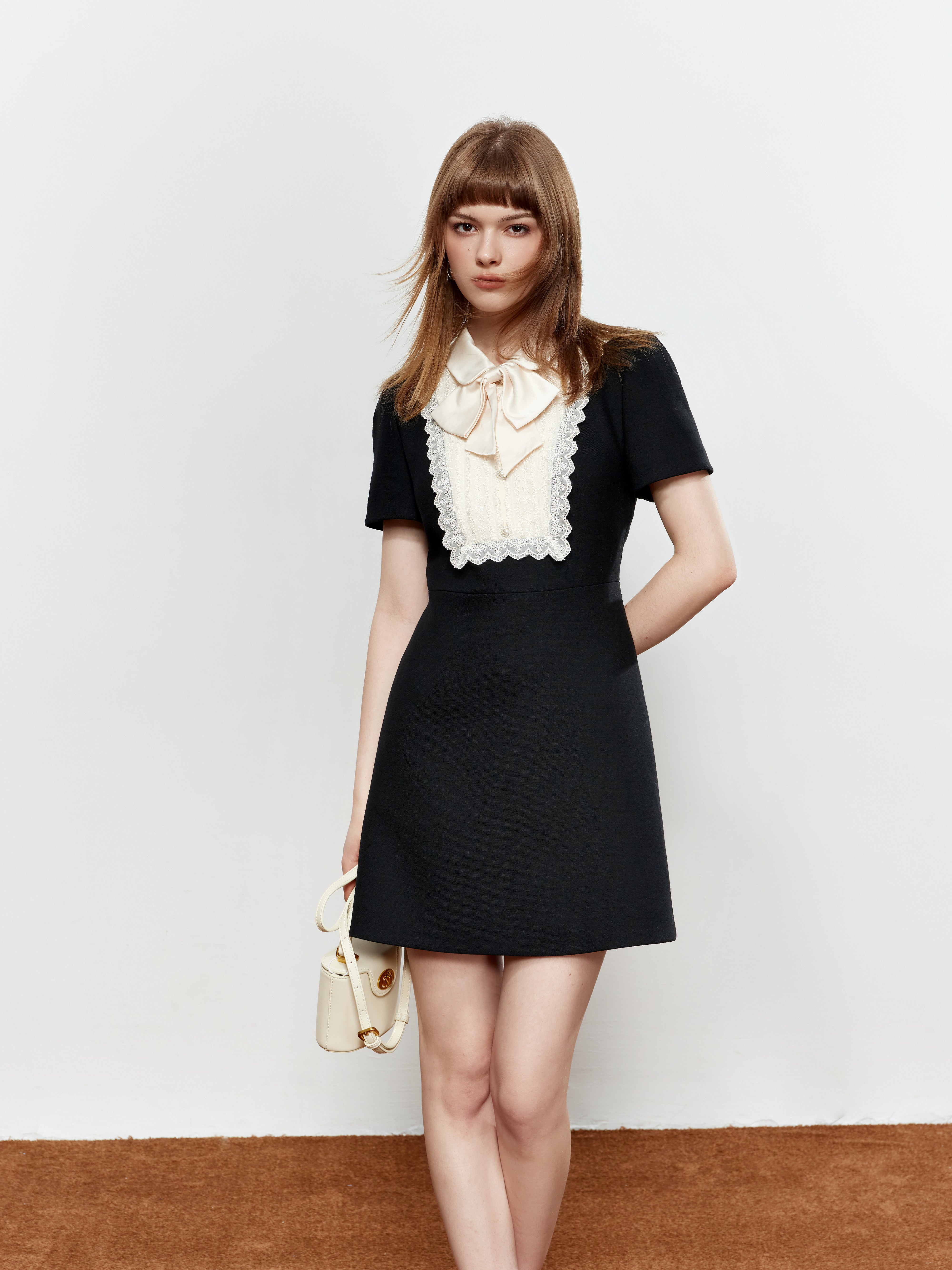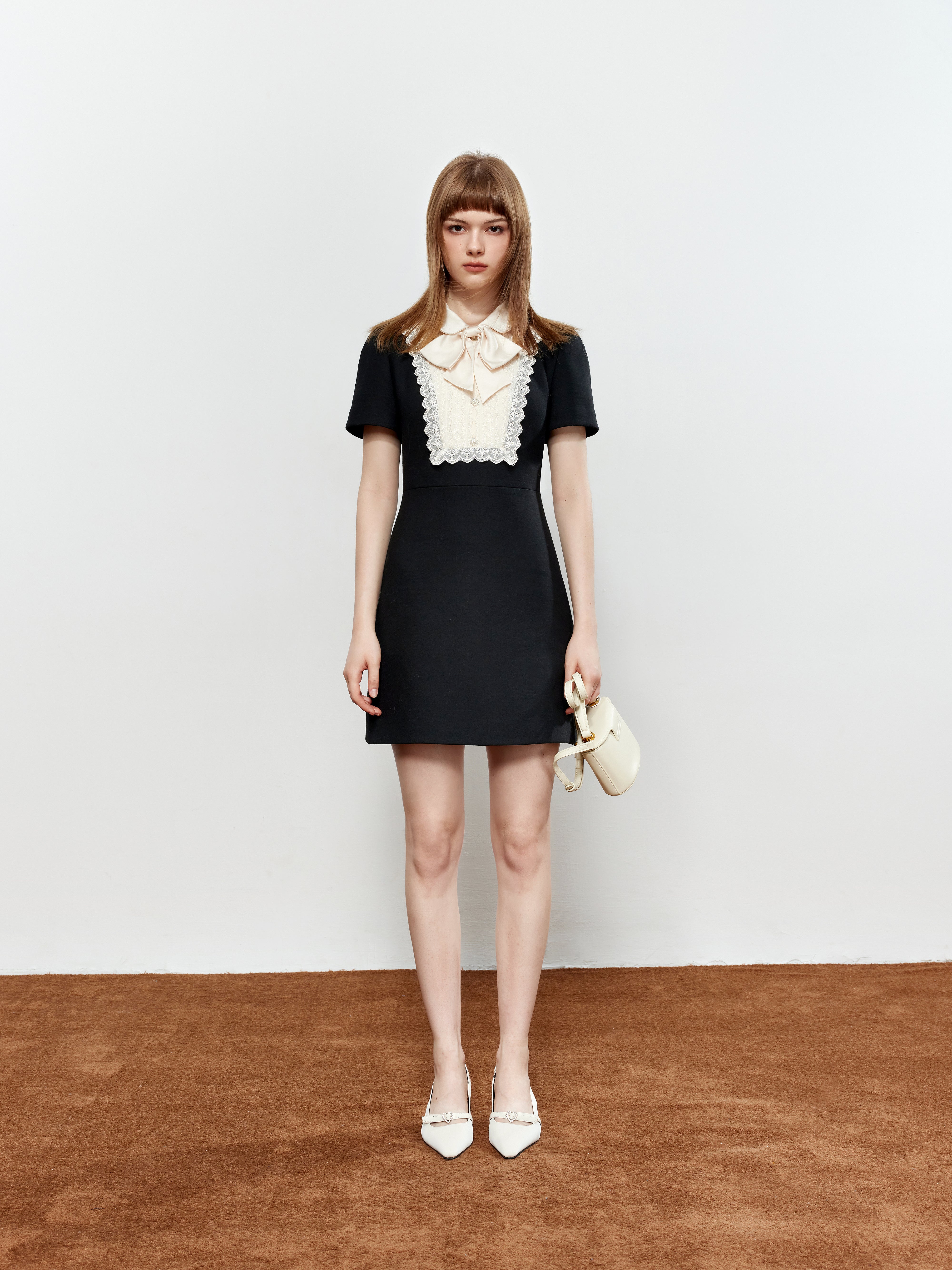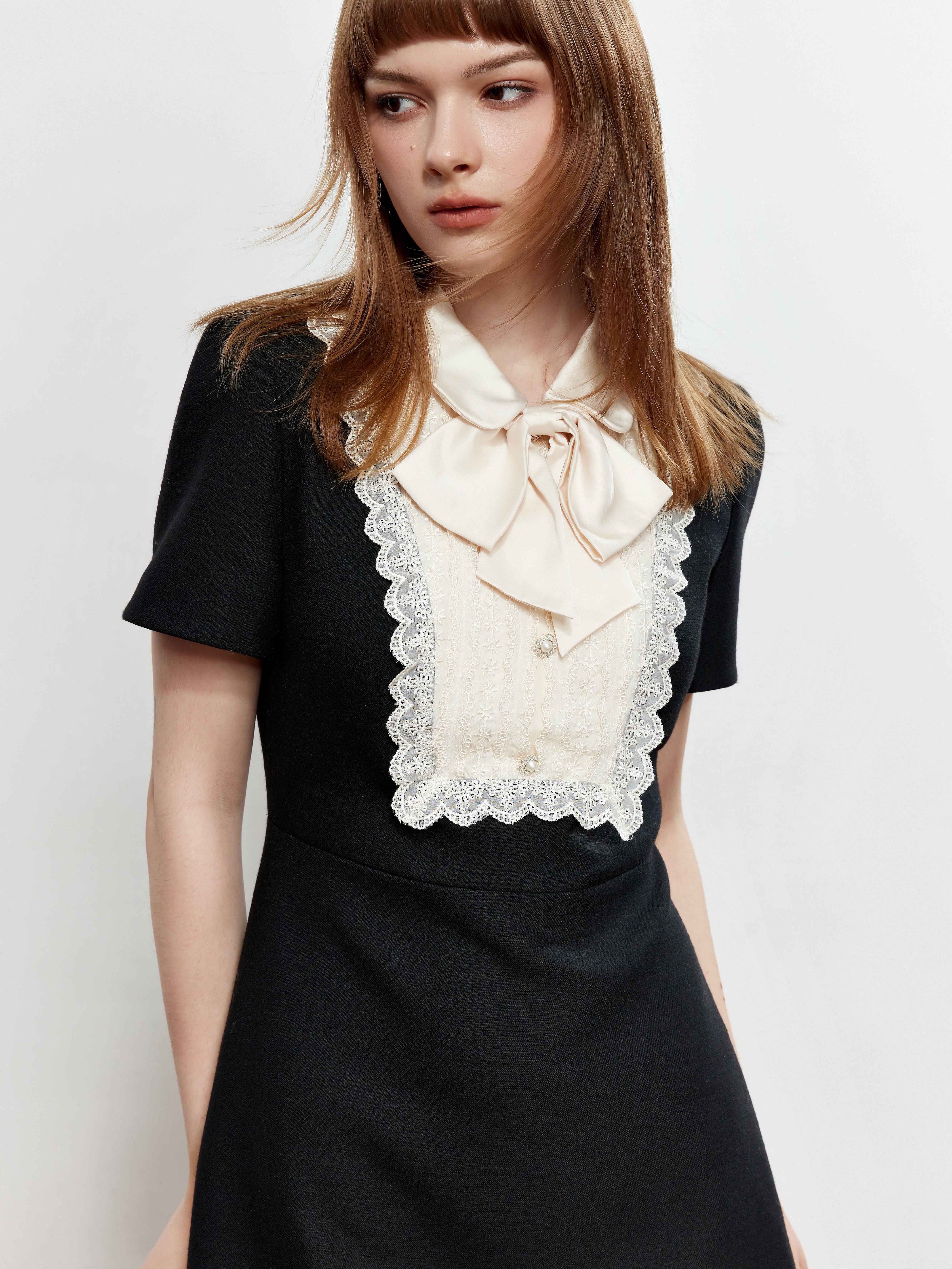 ROCHA ROMA Lace Peter Pan Collar Bow Dress