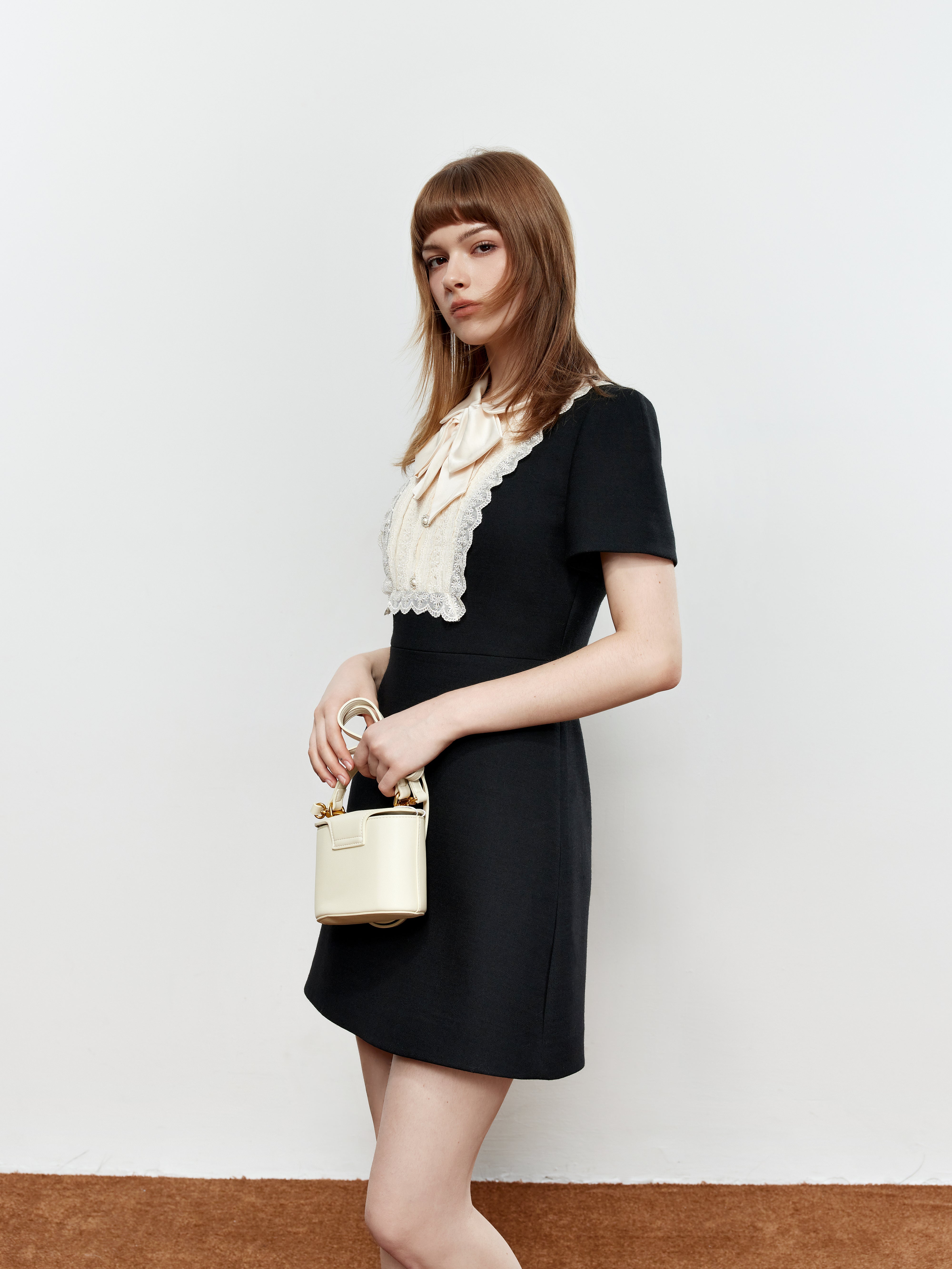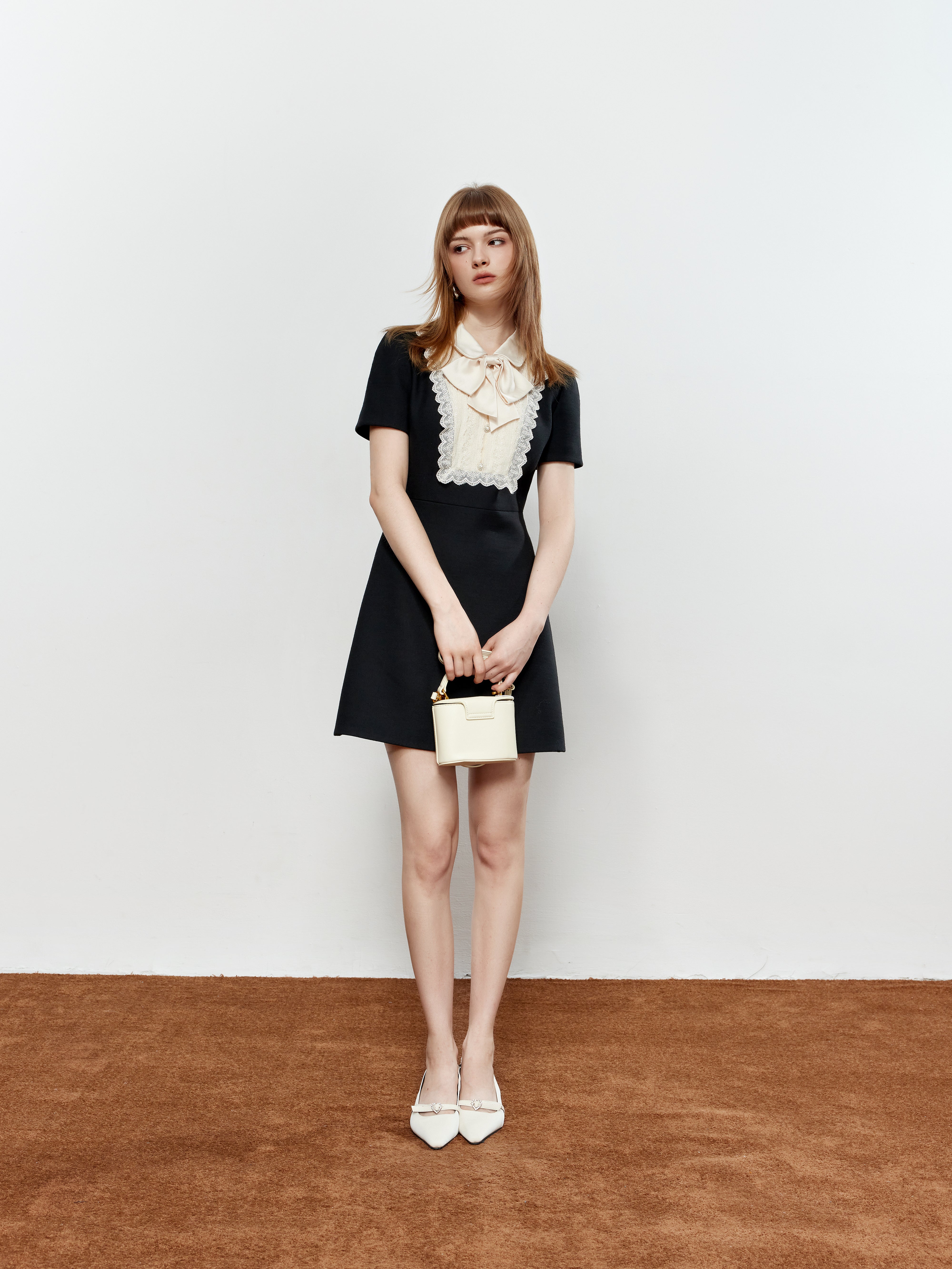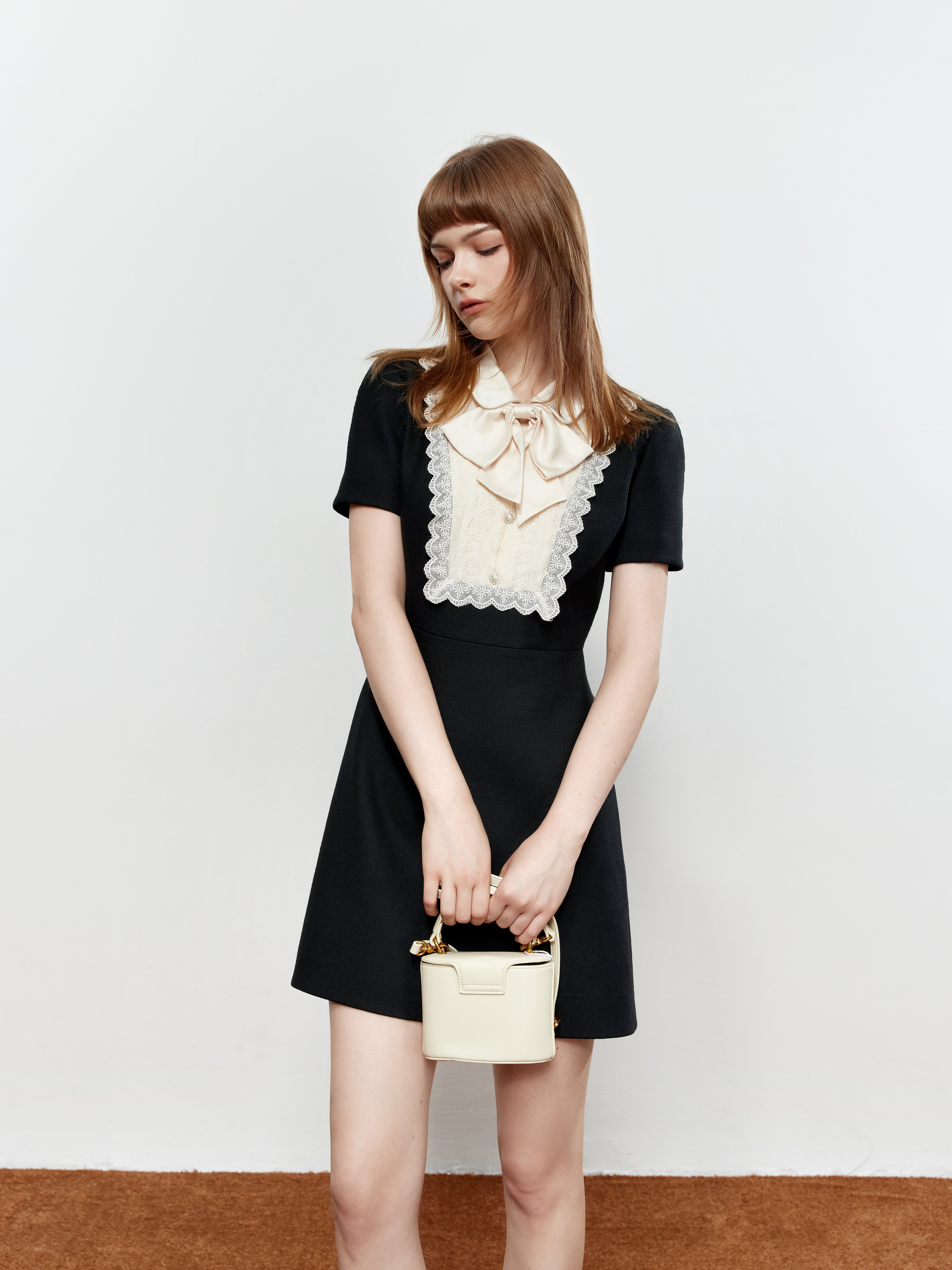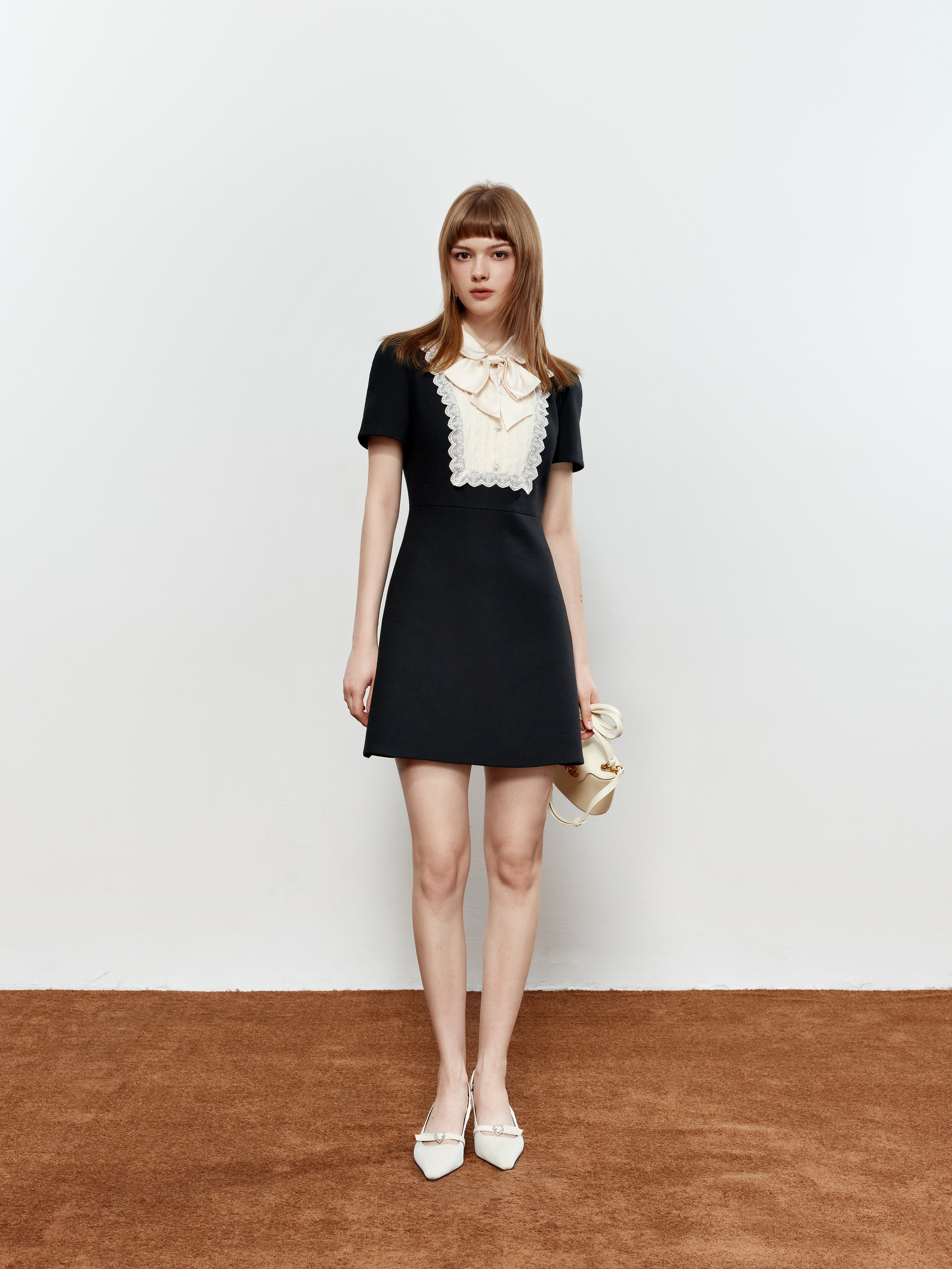 ROCHA ROMA Lace Peter Pan Collar Bow Dress