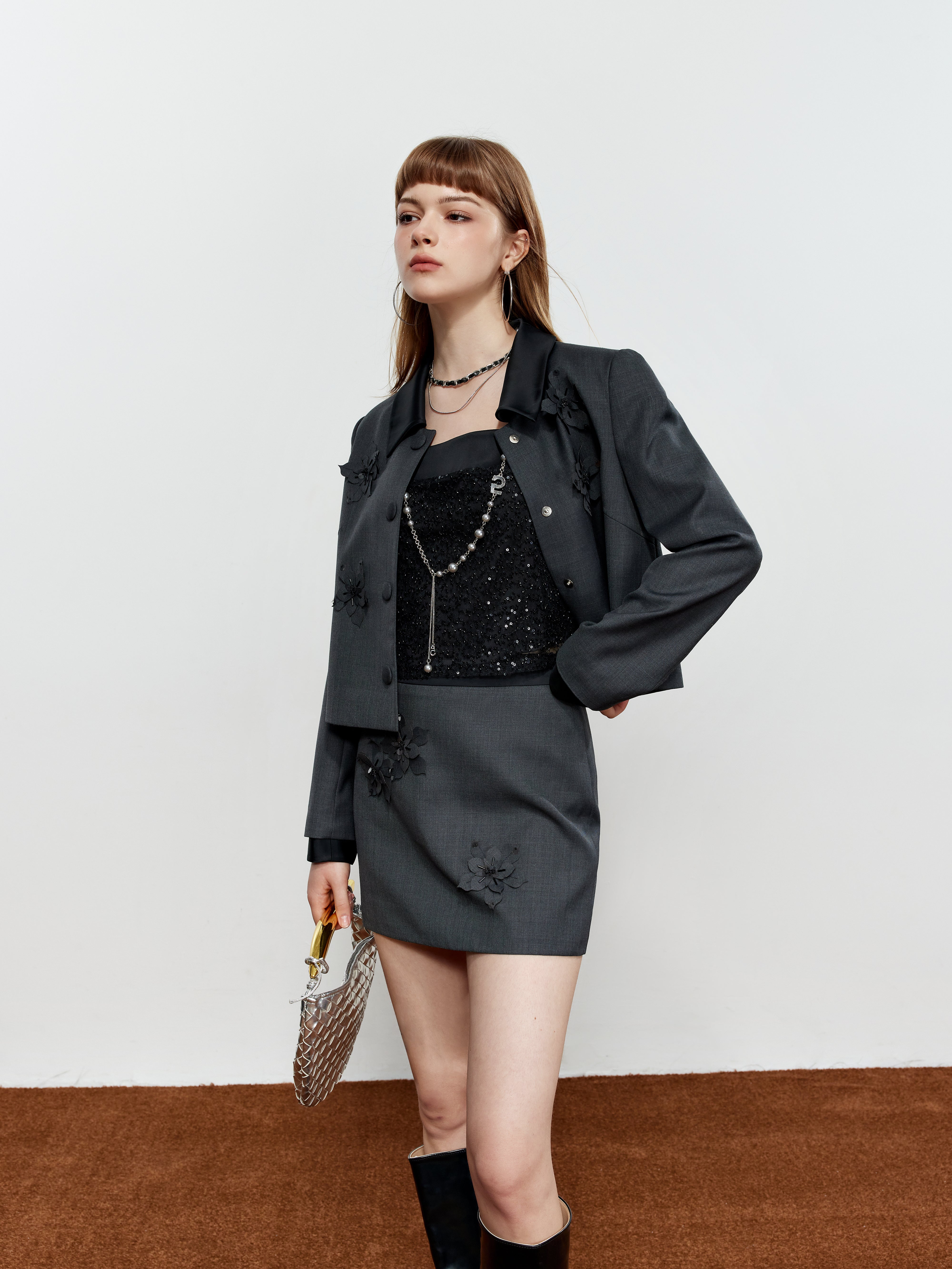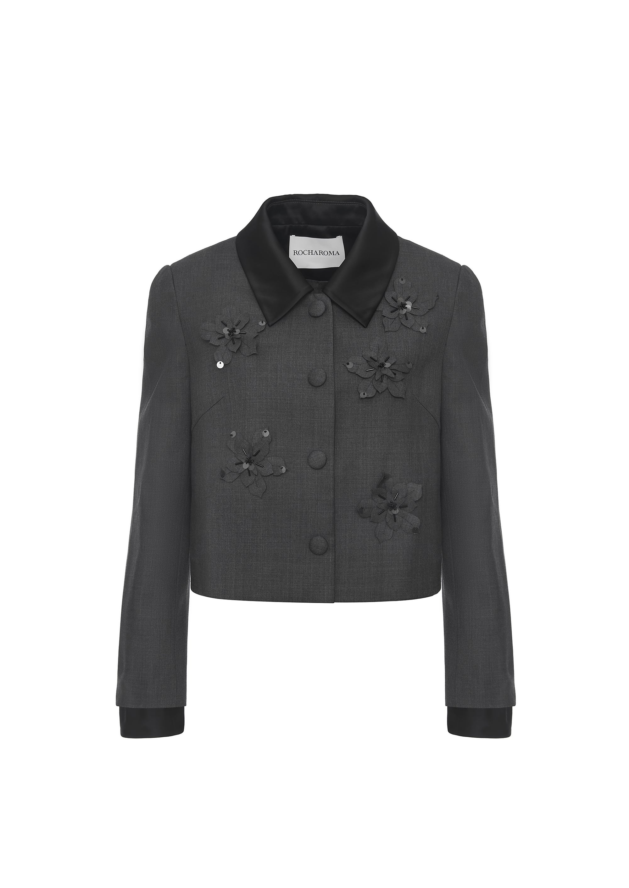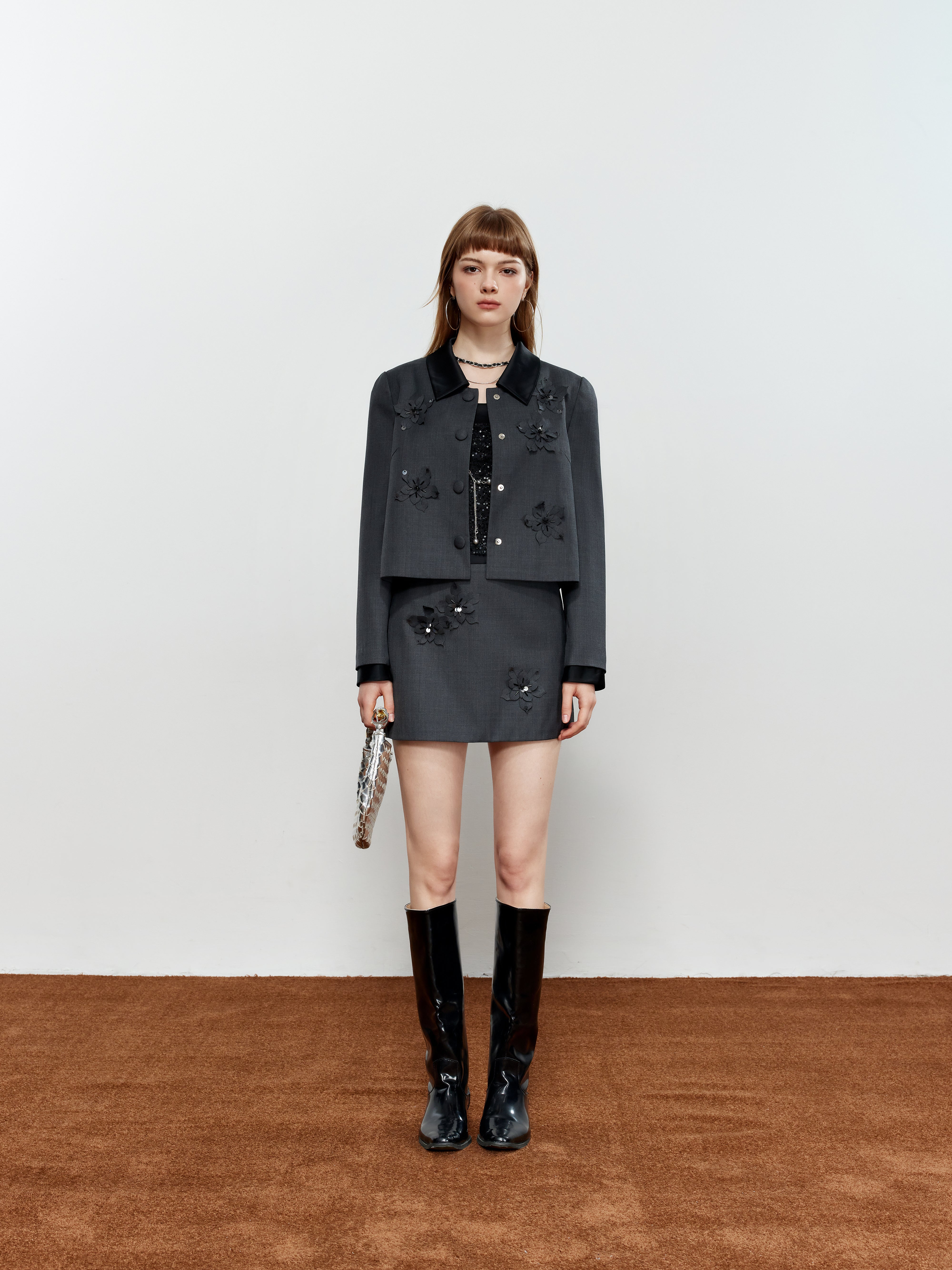 ROCHA ROMA Hand-Embellished Sequin Floral Jacket+Skirt