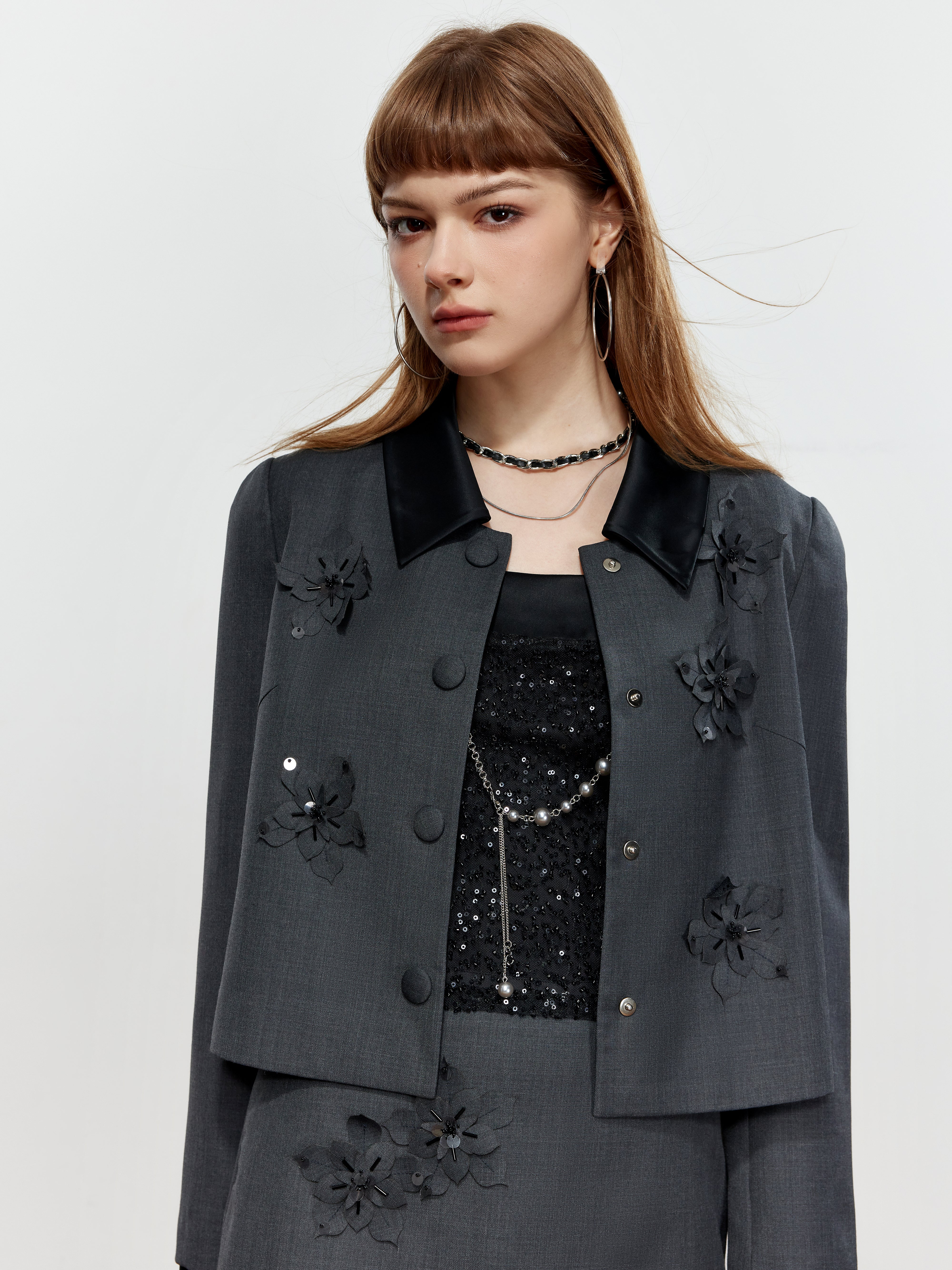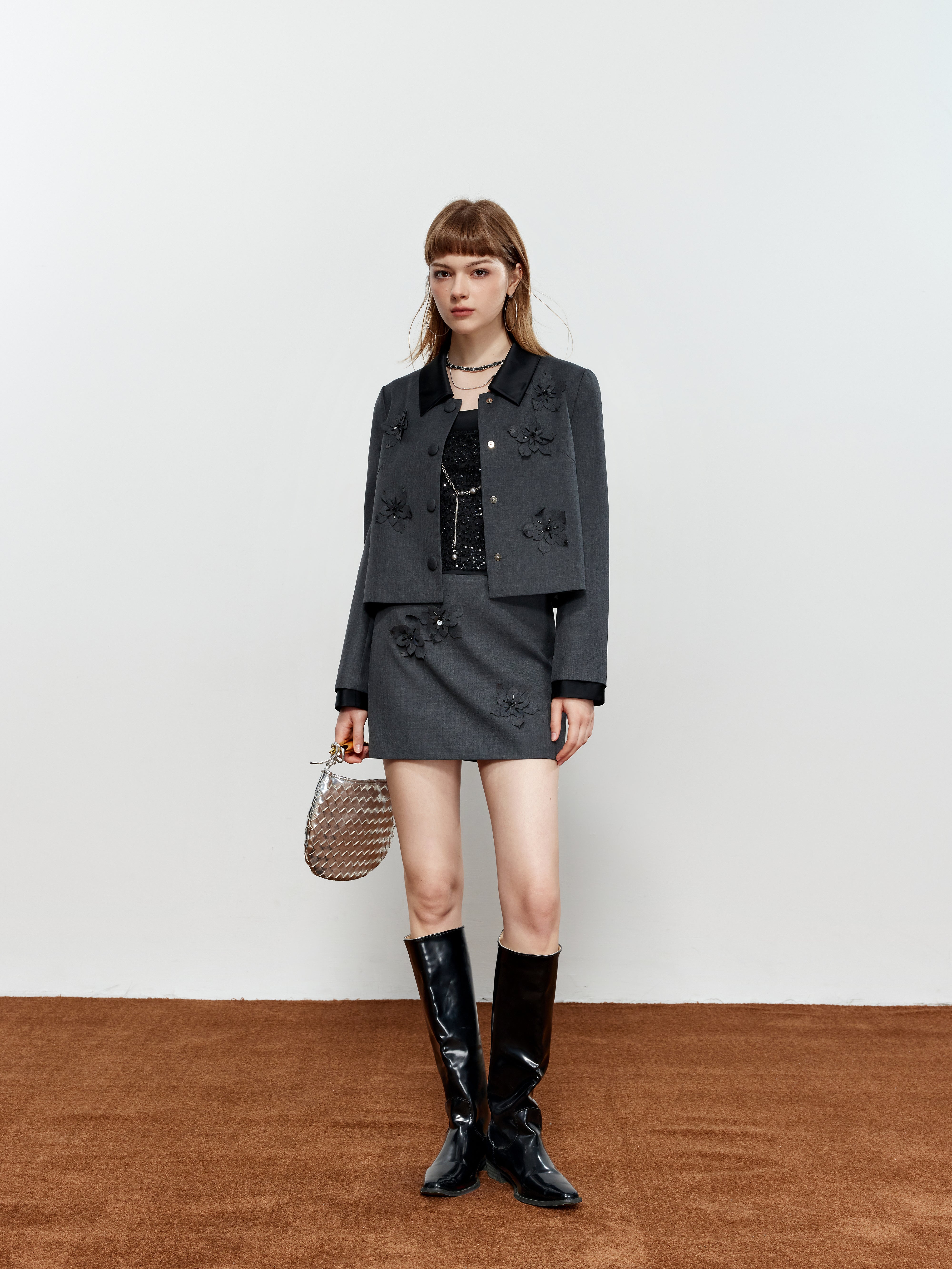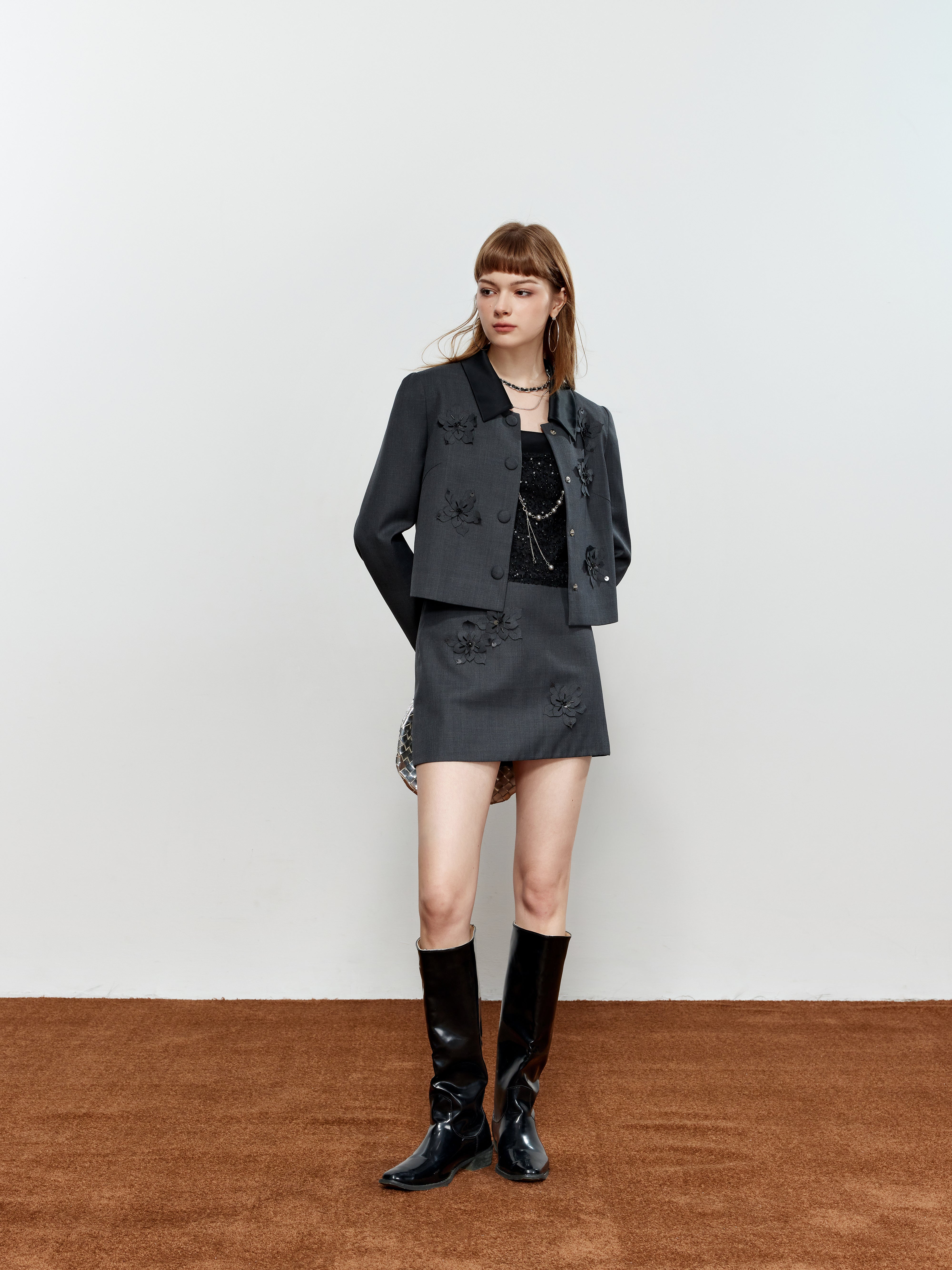 ROCHA ROMA Hand-Embellished Sequin Floral Jacket+Skirt