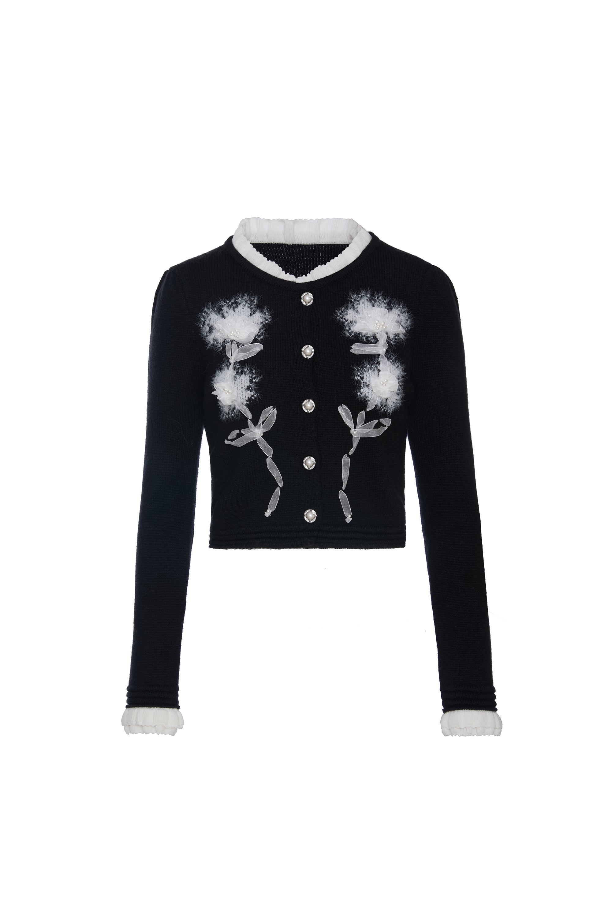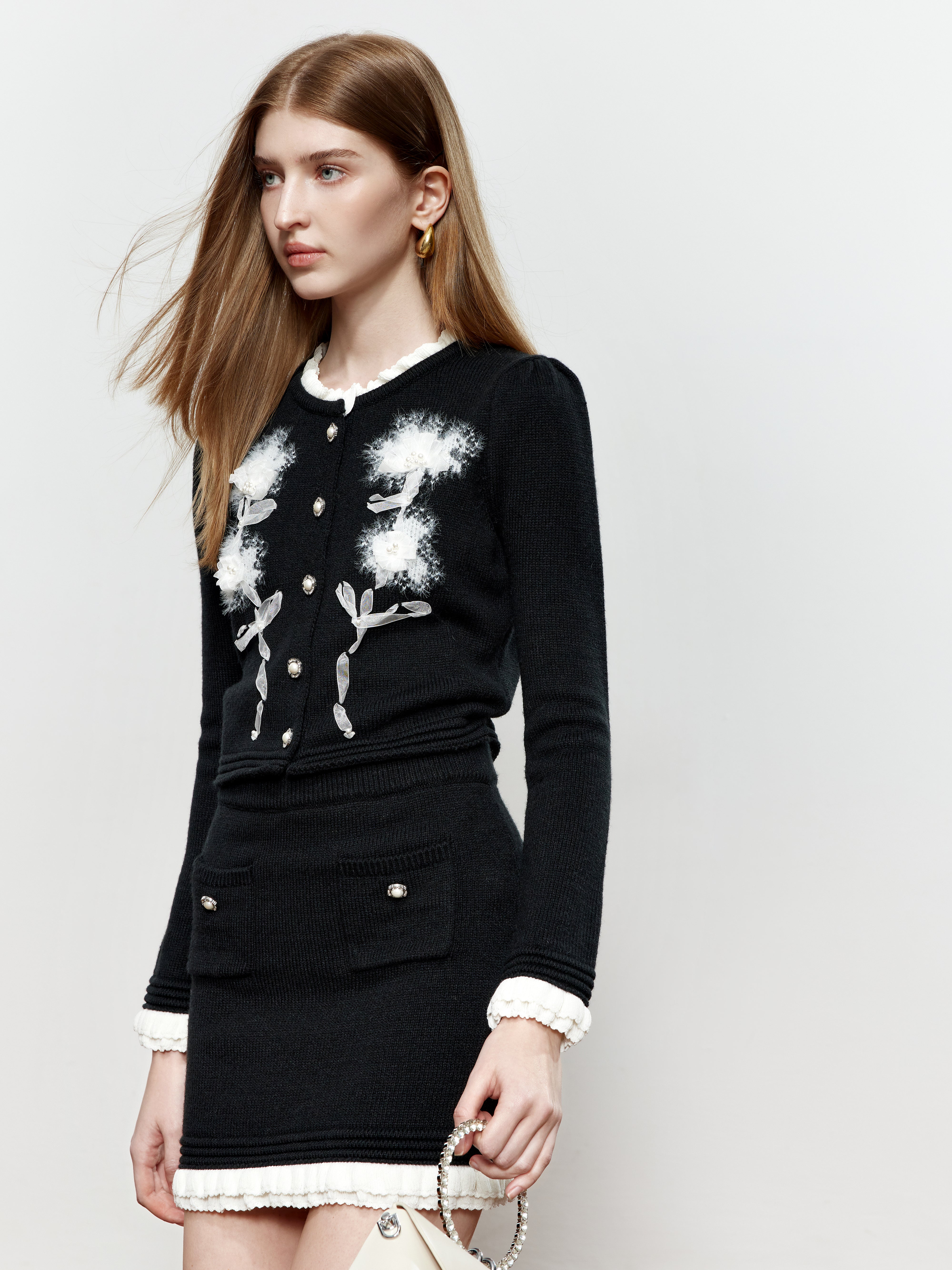 ROCHA ROMA Ribbon Floral Lace Trim Knit Top+Skirt