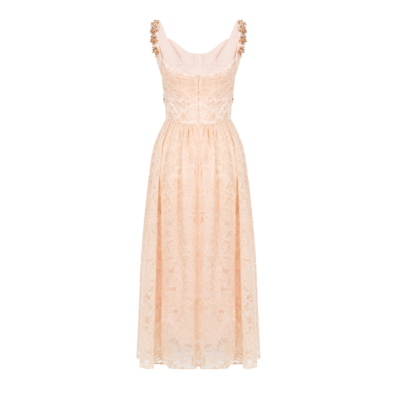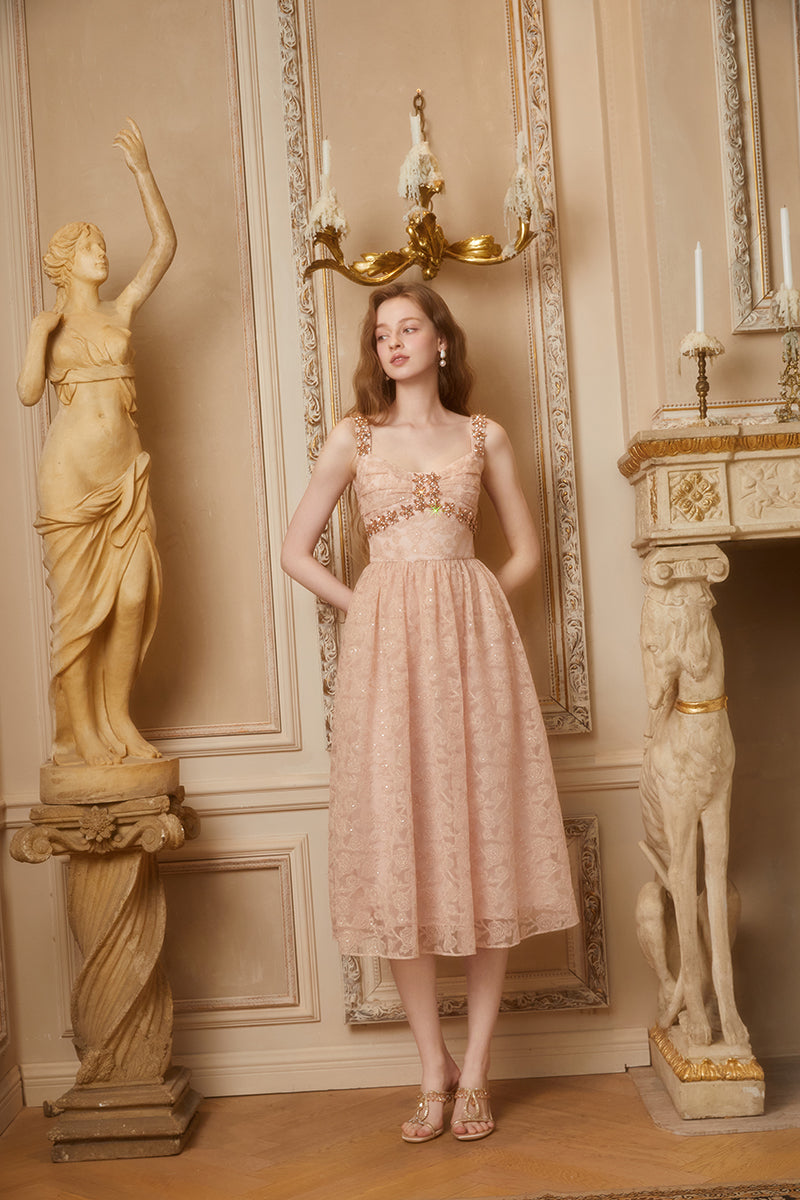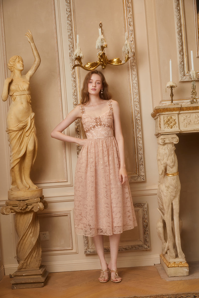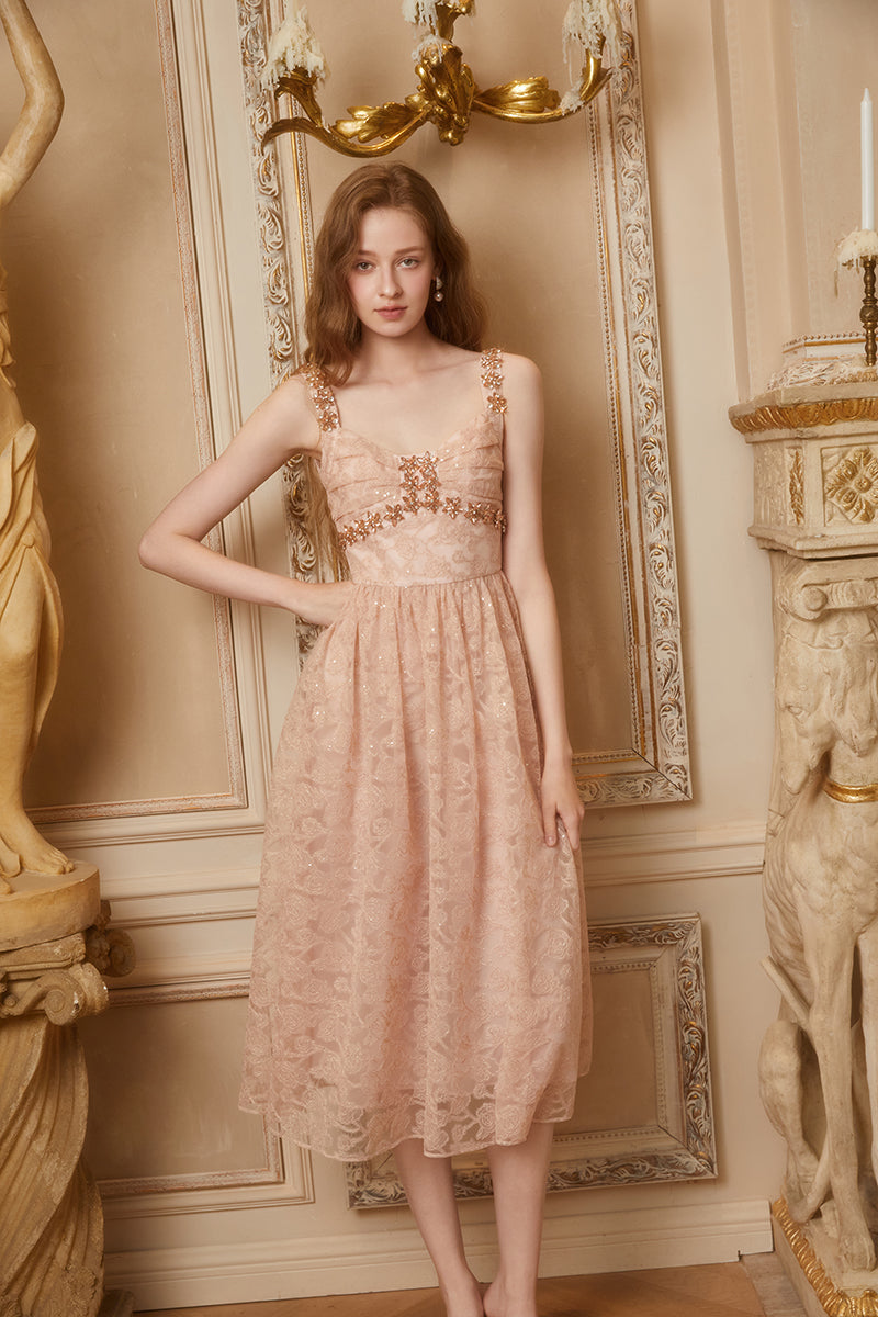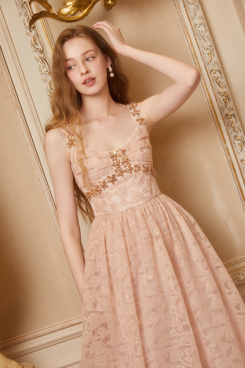 CEE CUBED Peach Pink Floral Crystal Embellished Dress