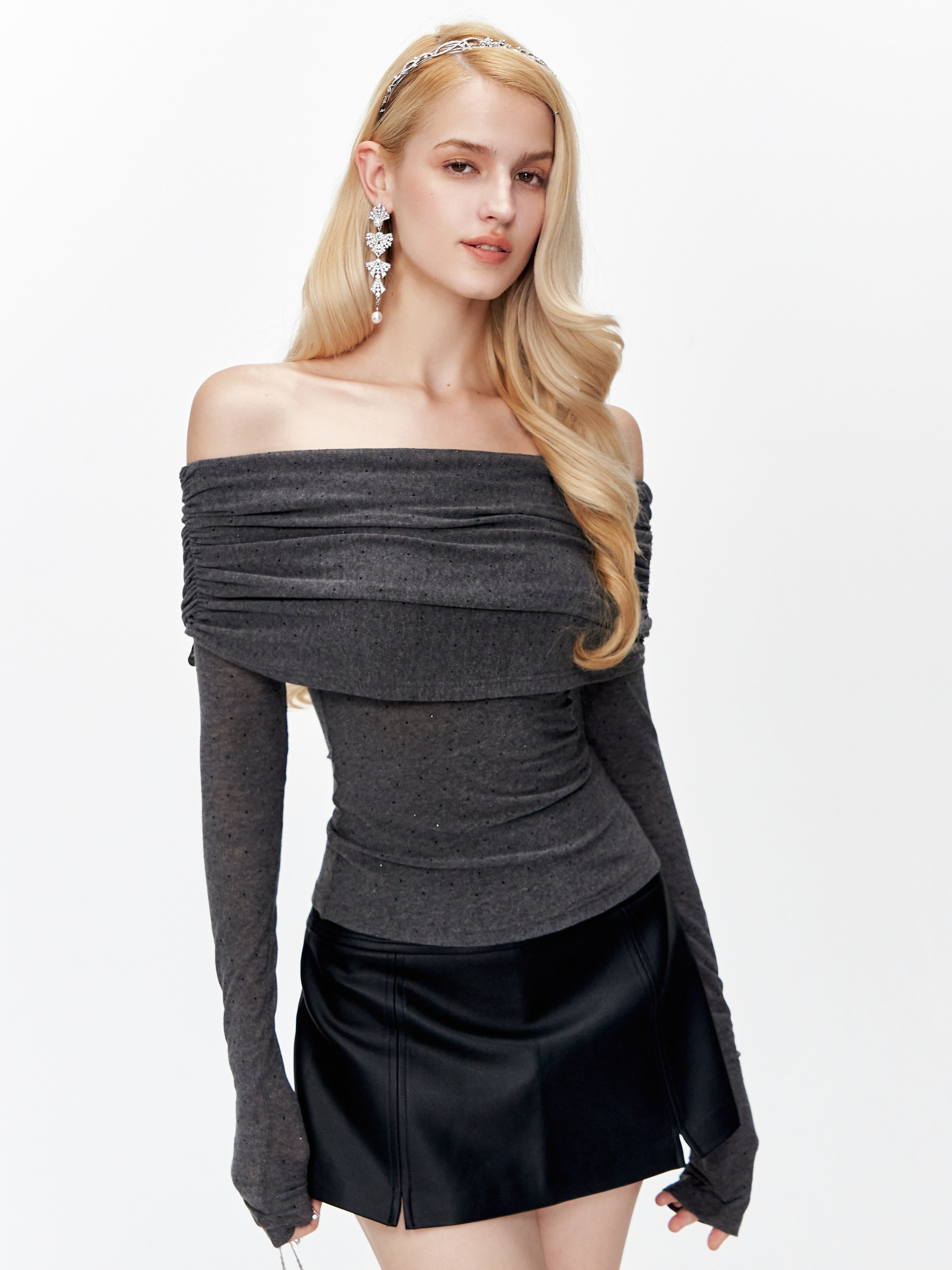 ROCHA ROMA Off-Shoulder Crystal-Embellished Knit Top