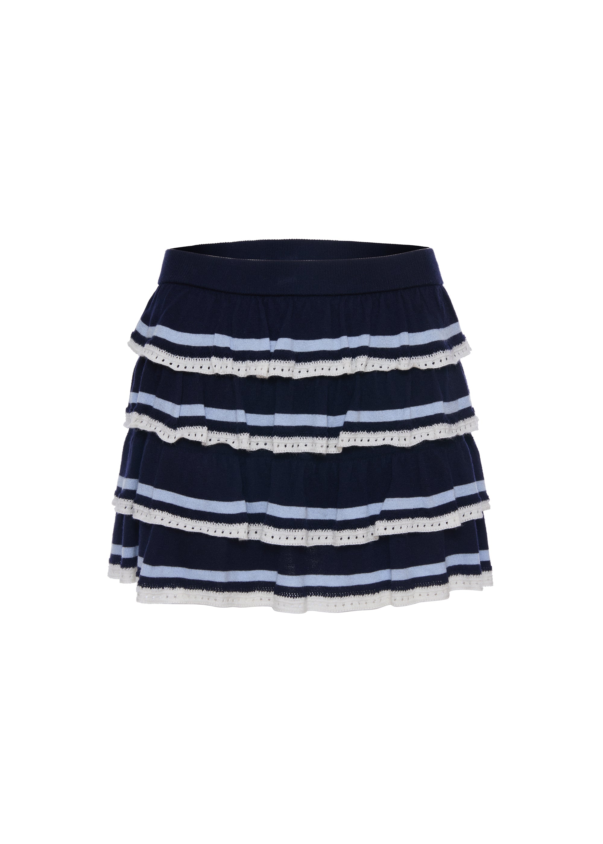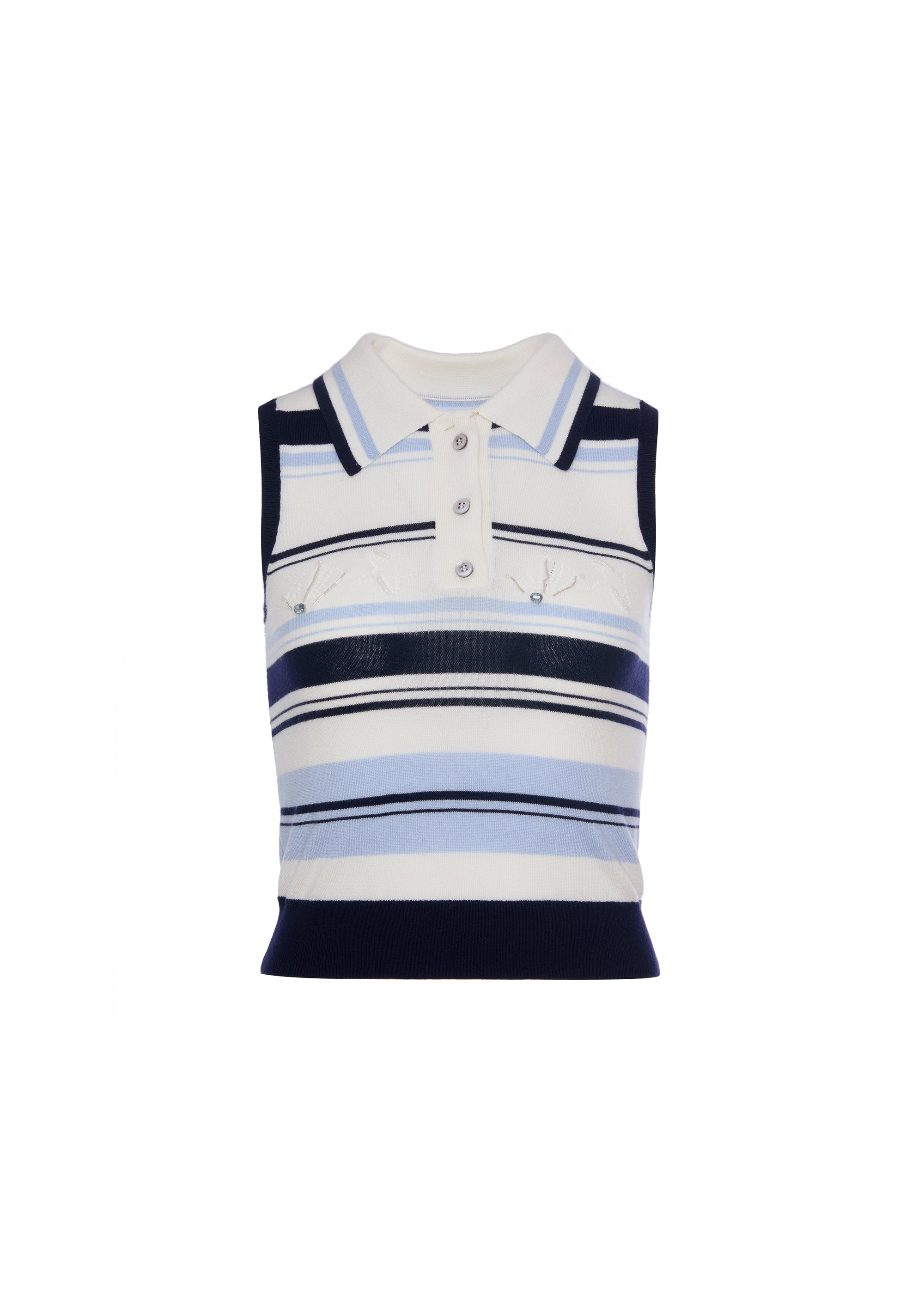 ROCHA ROMA Striped Polo-Collar Vest Top & Multi-Layer Ruffle Striped Skirt Set