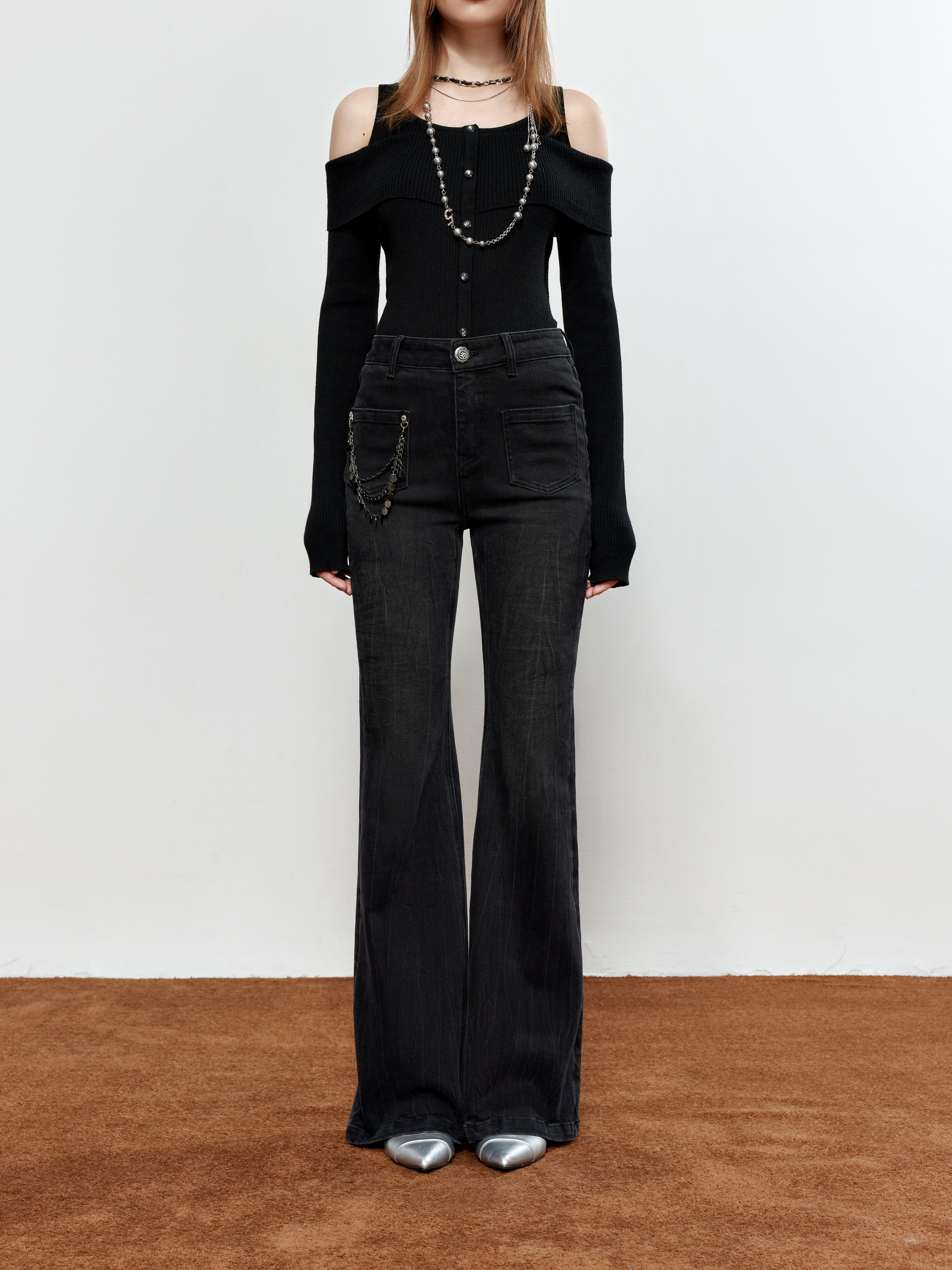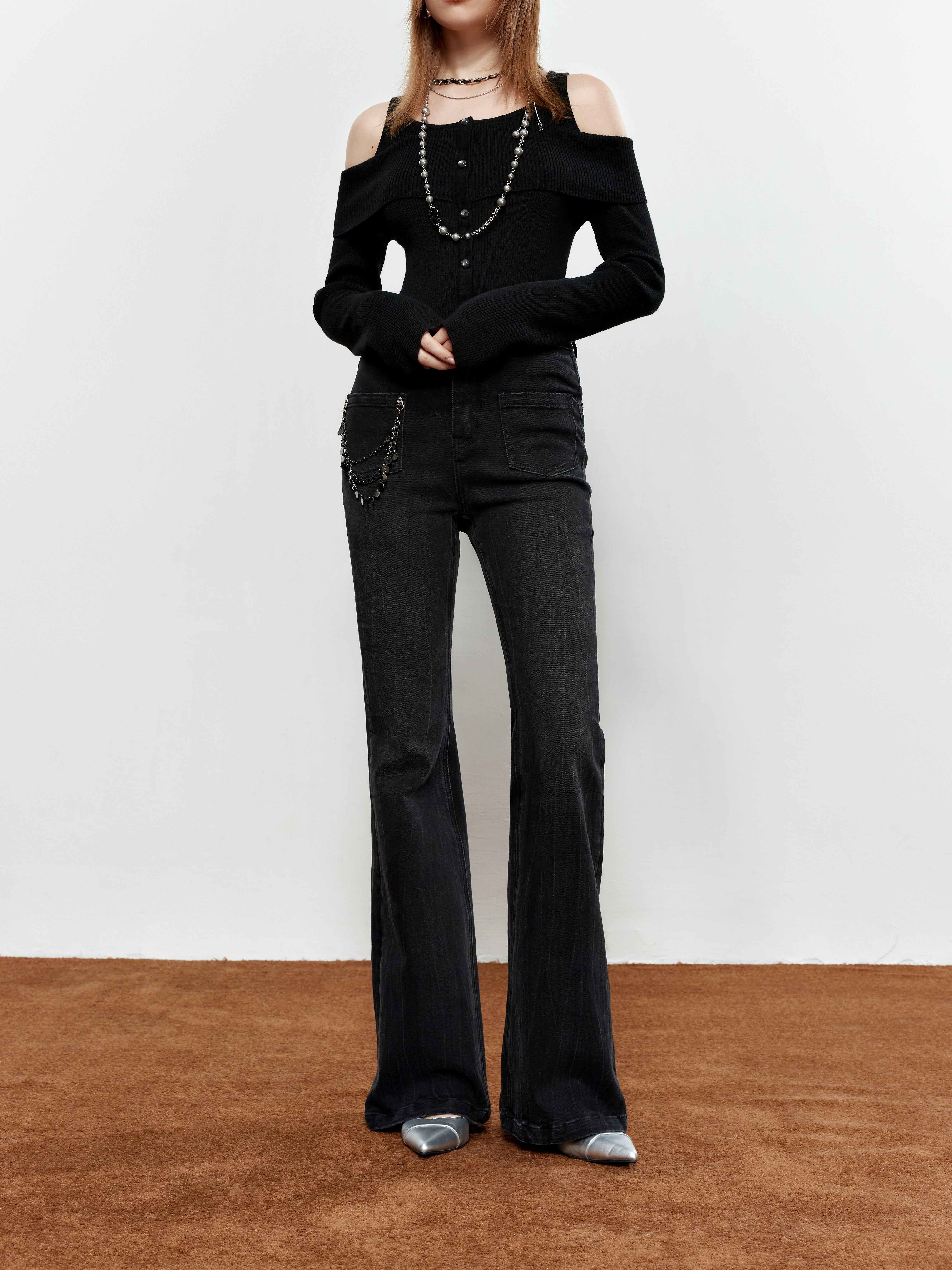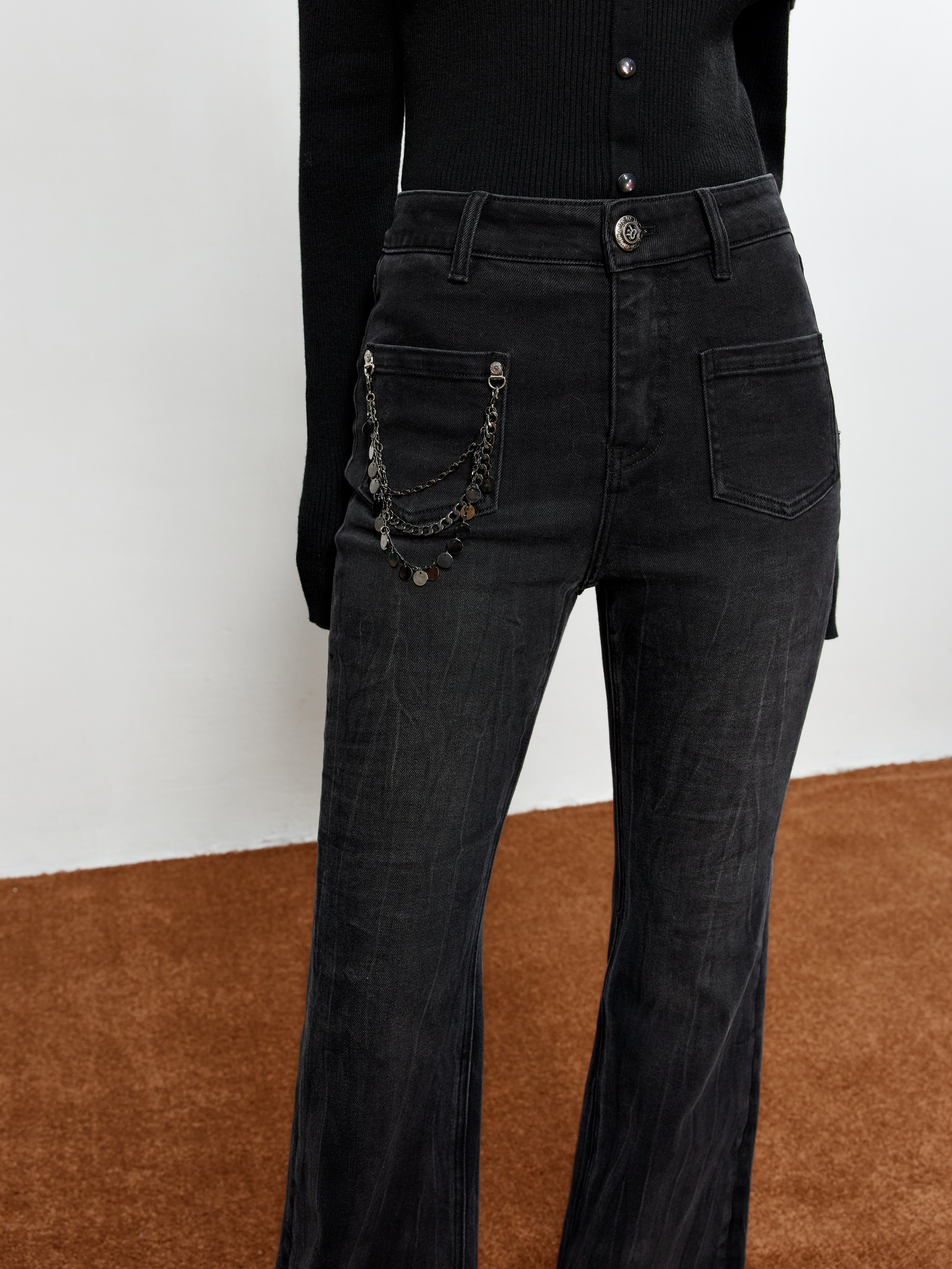 ROCHA ROMA Chain-Detail Flared Jeans