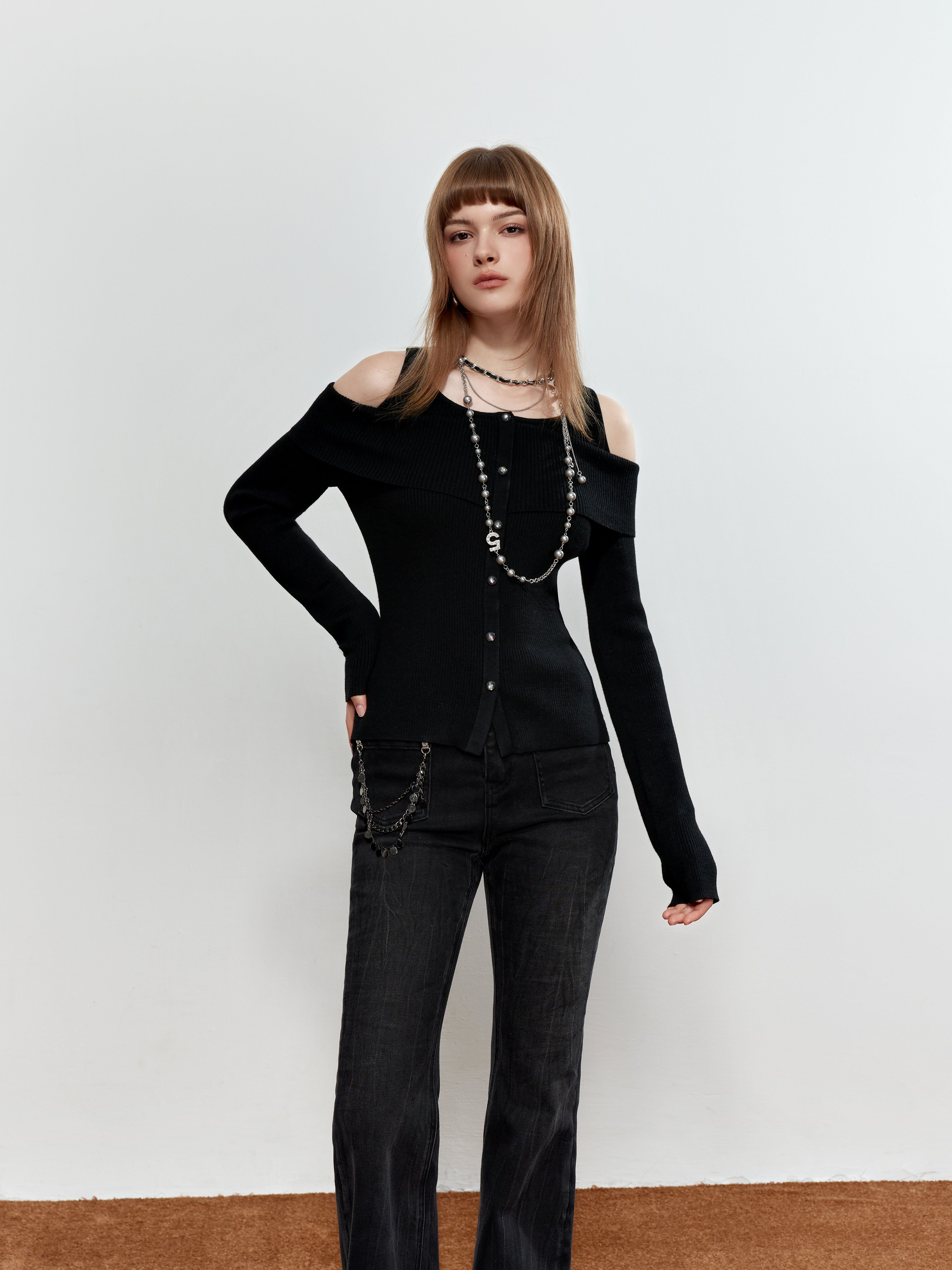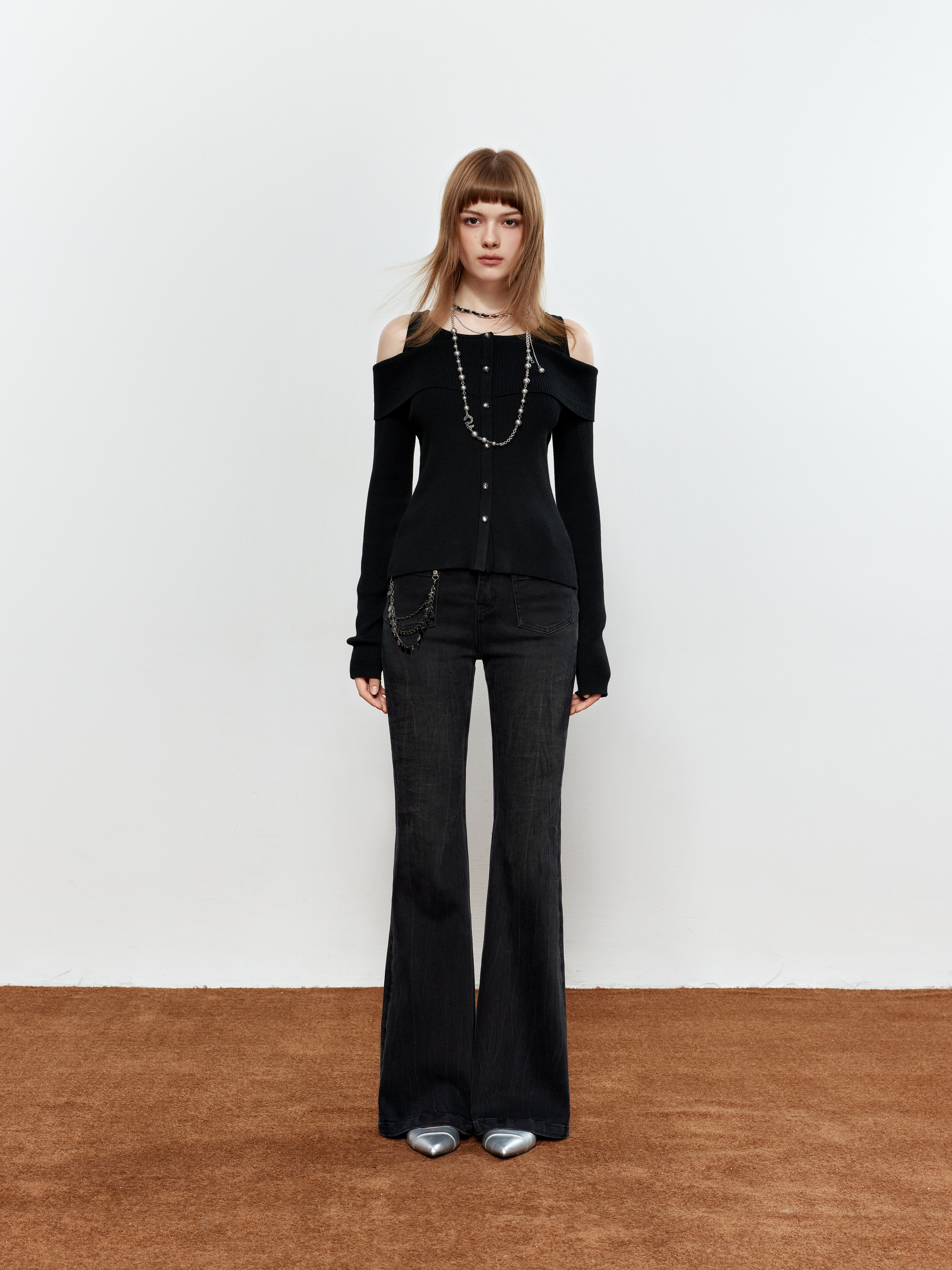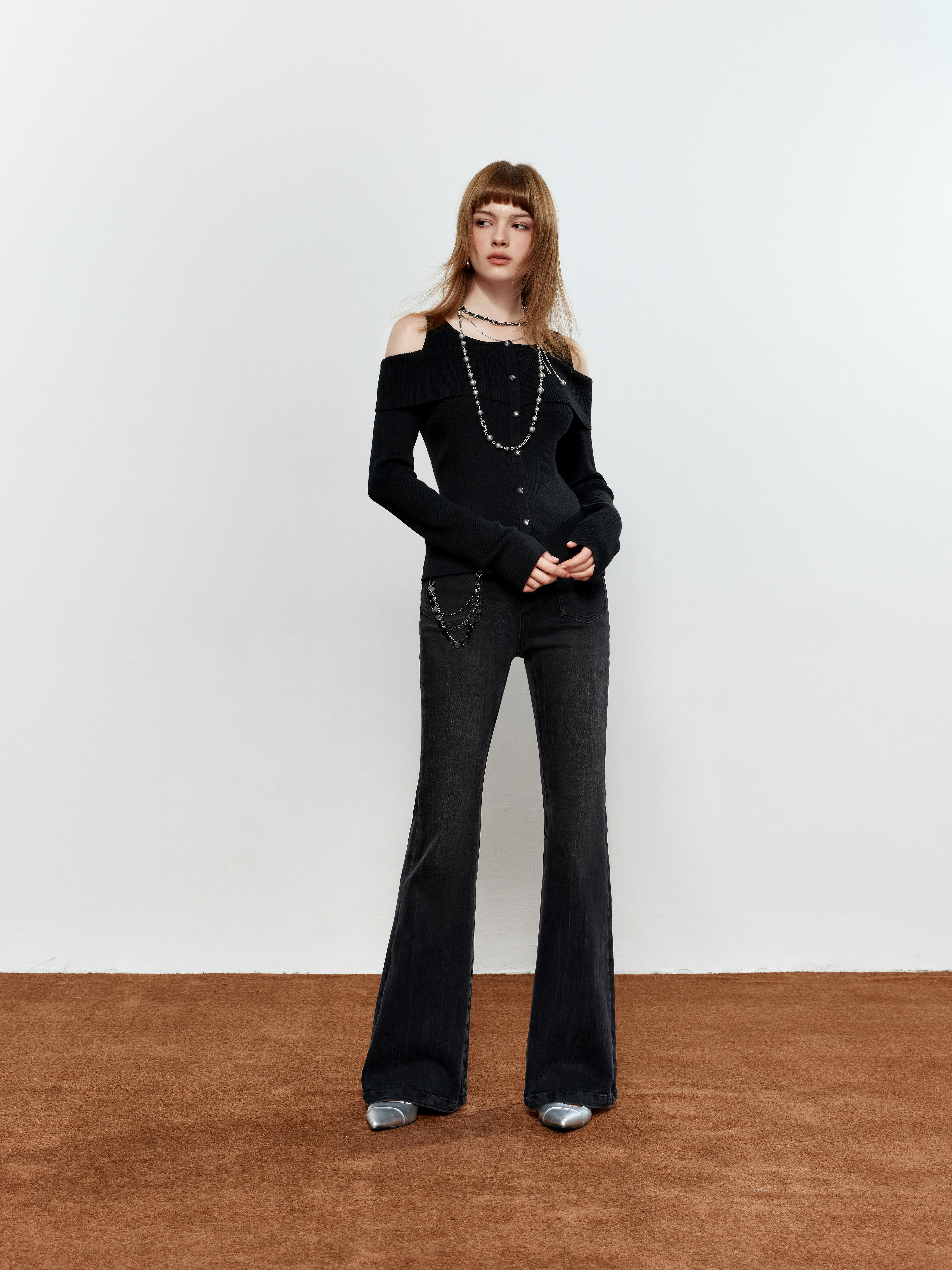 ROCHA ROMA Chain-Detail Flared Jeans