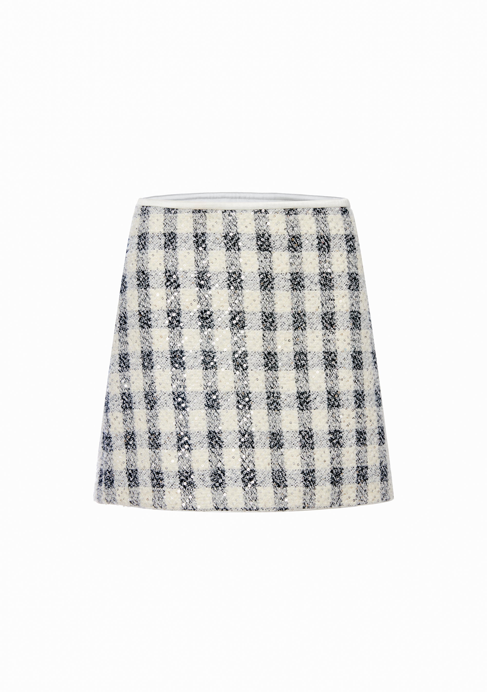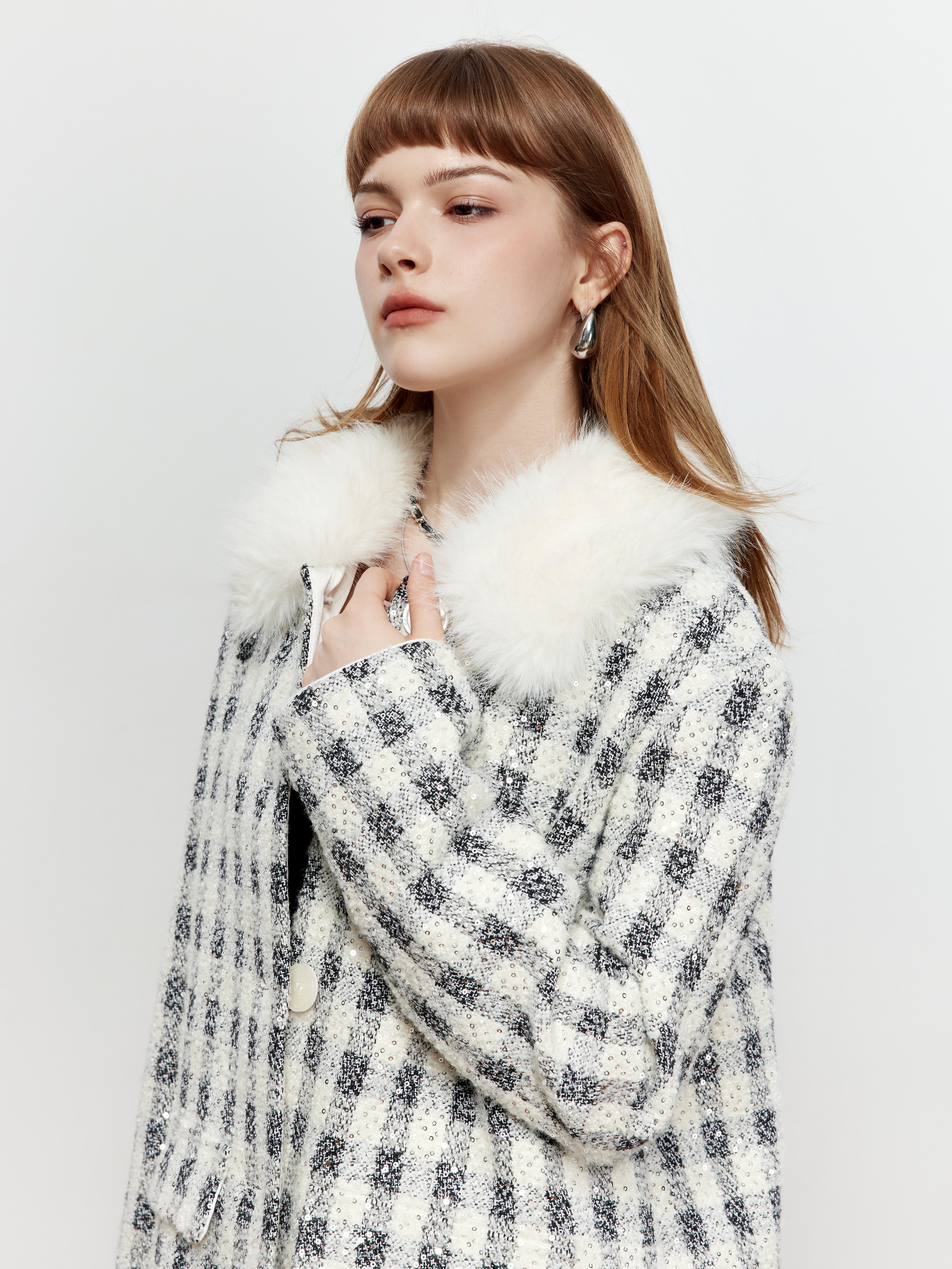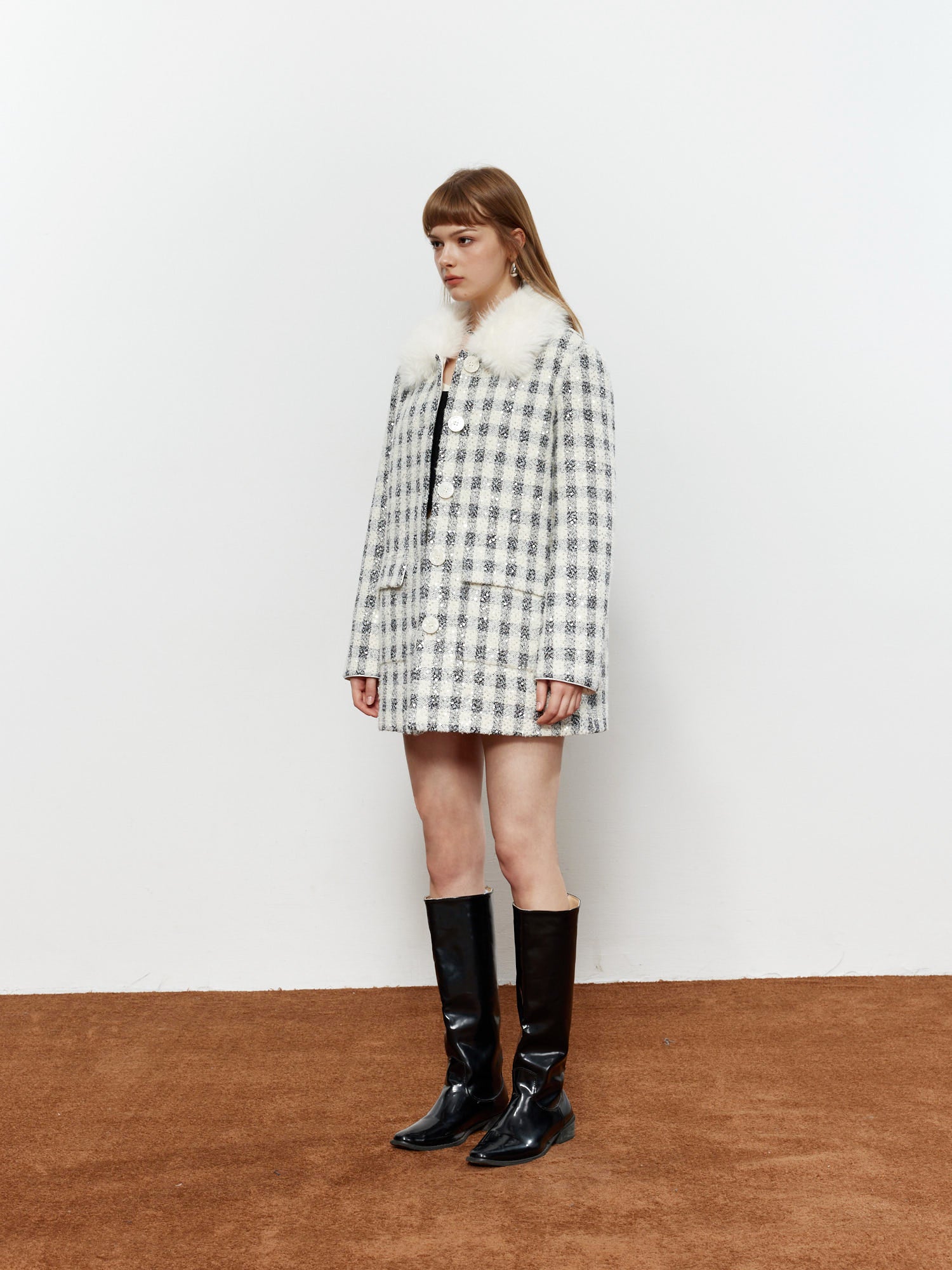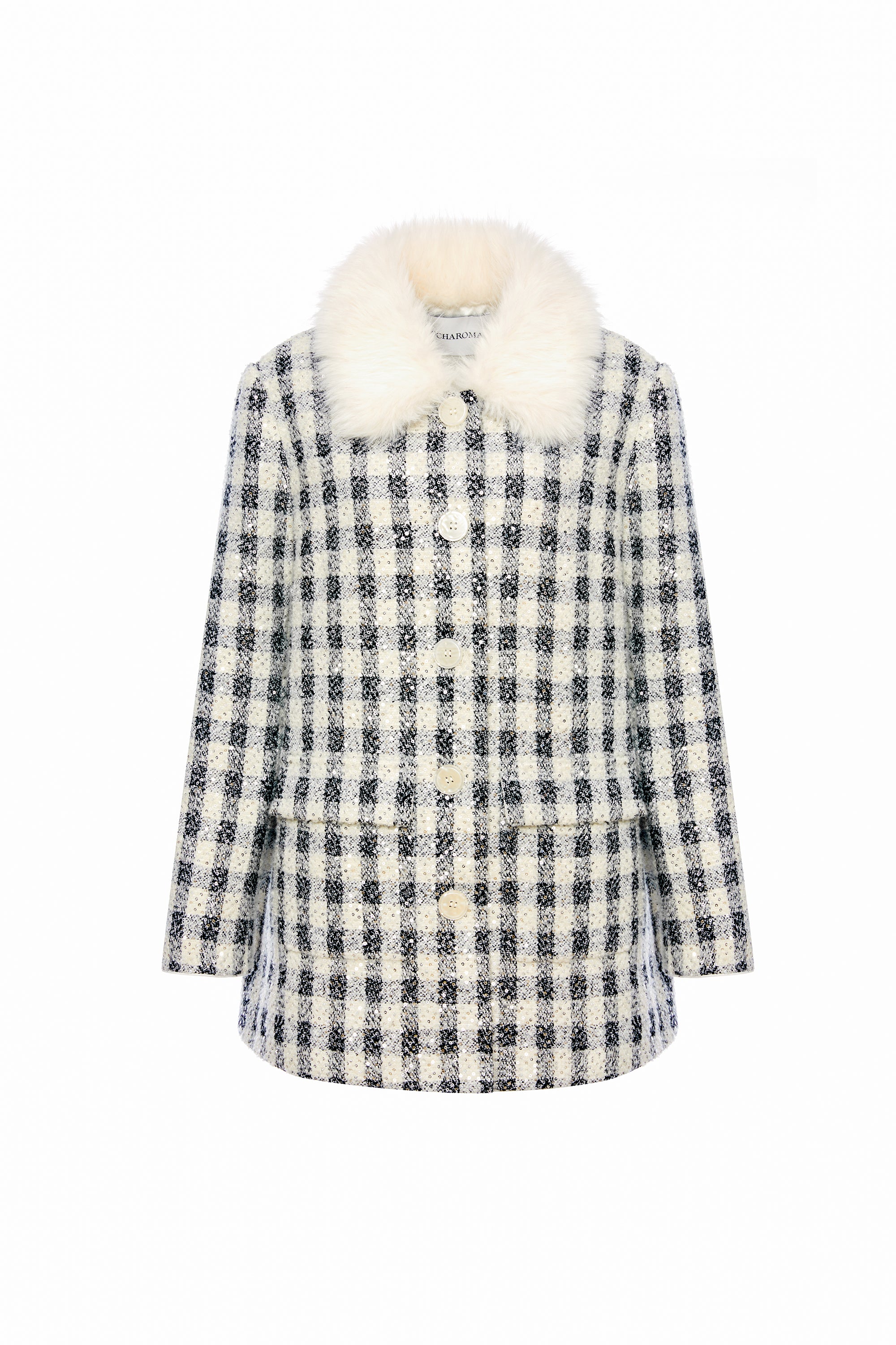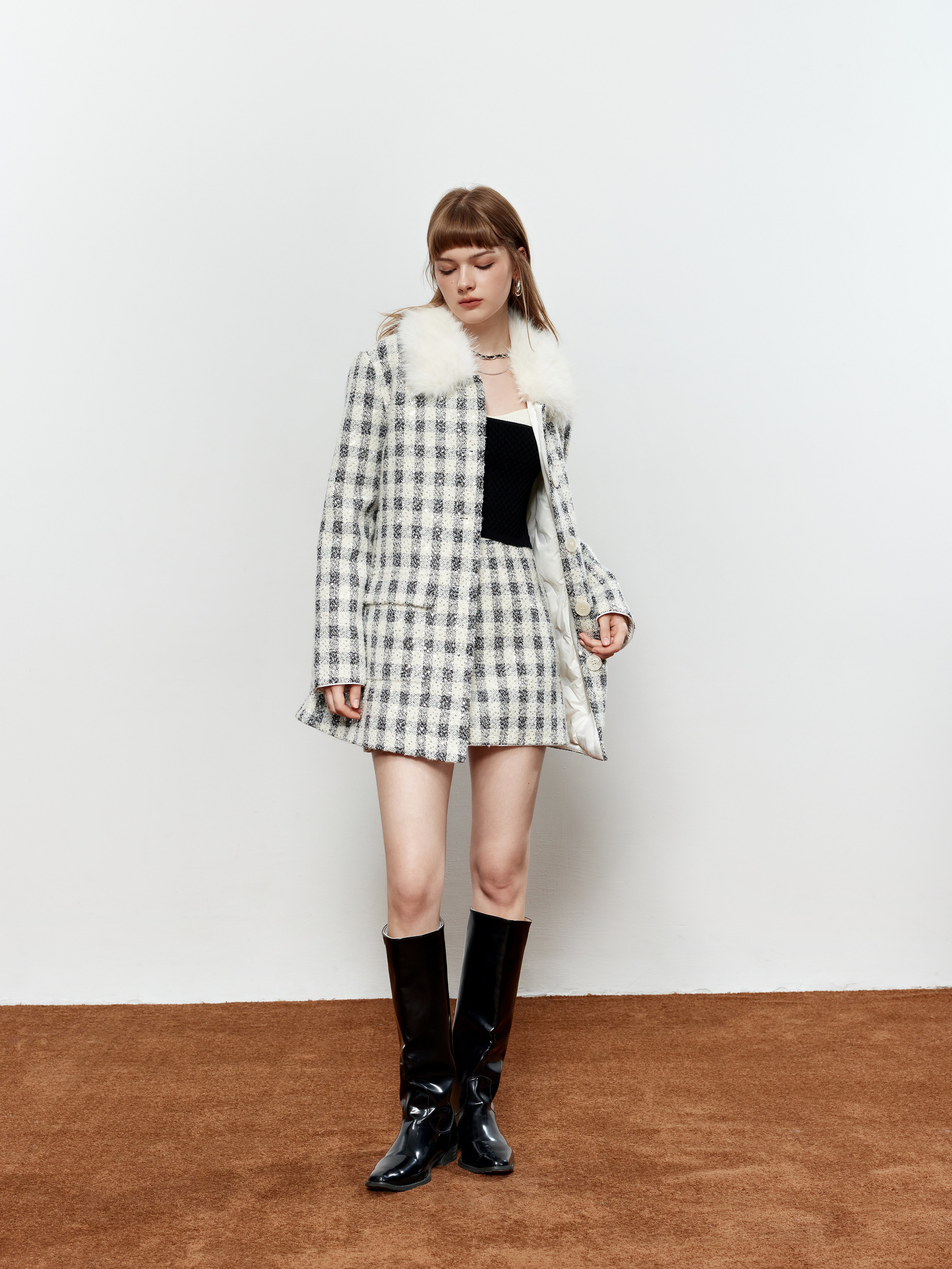 ROCHA ROMA Fur Collar Plaid Jacket+Skirt