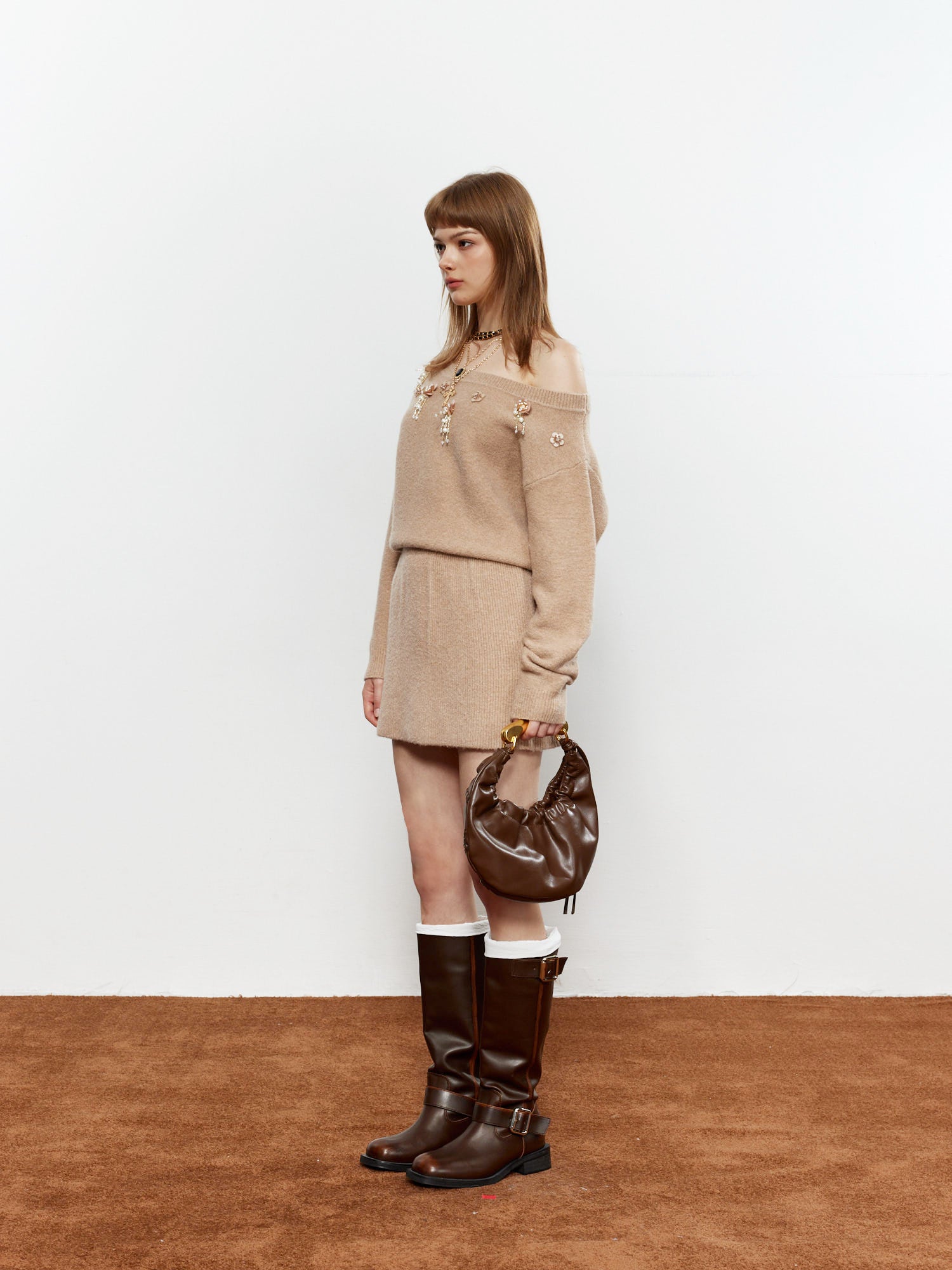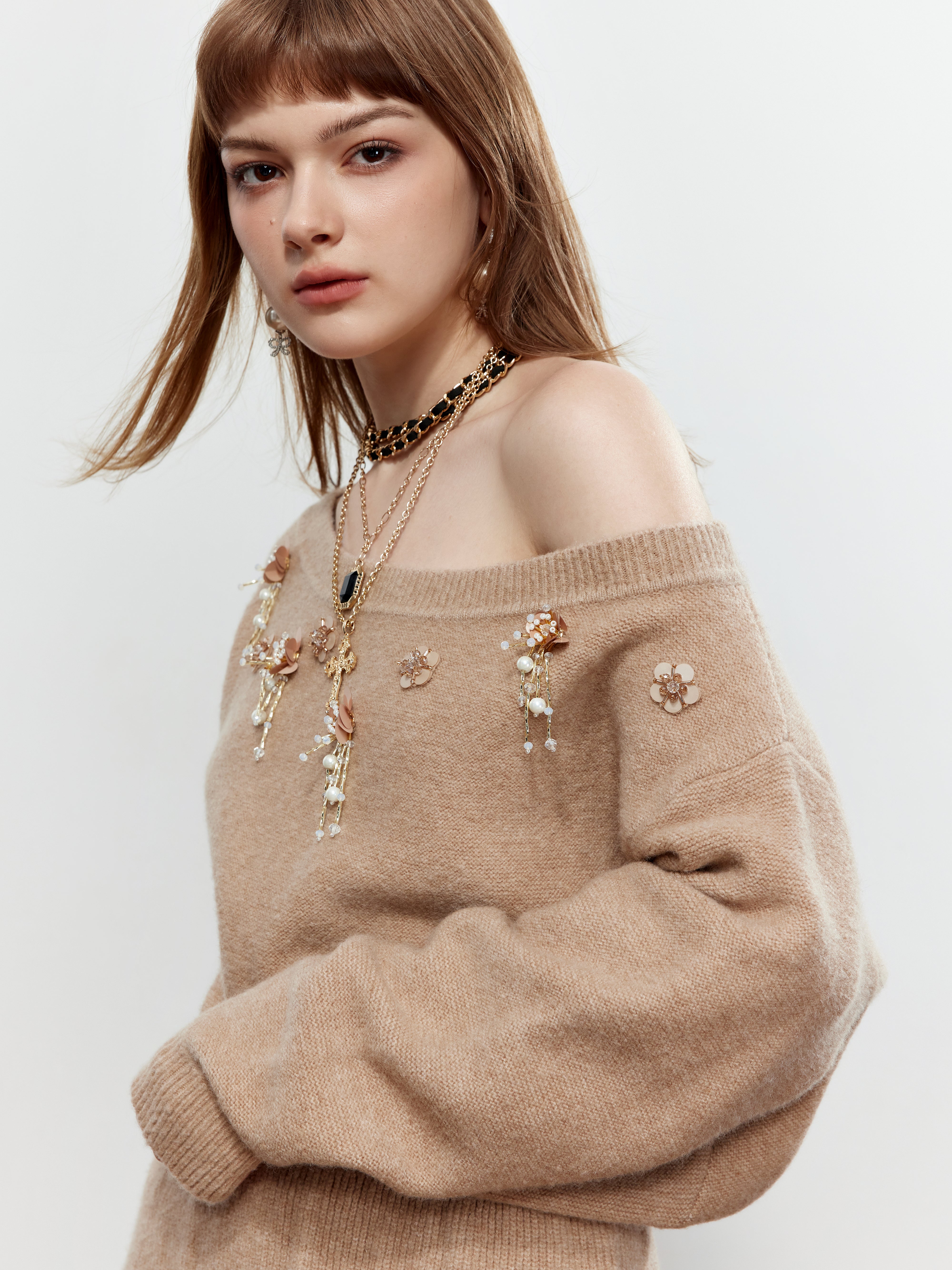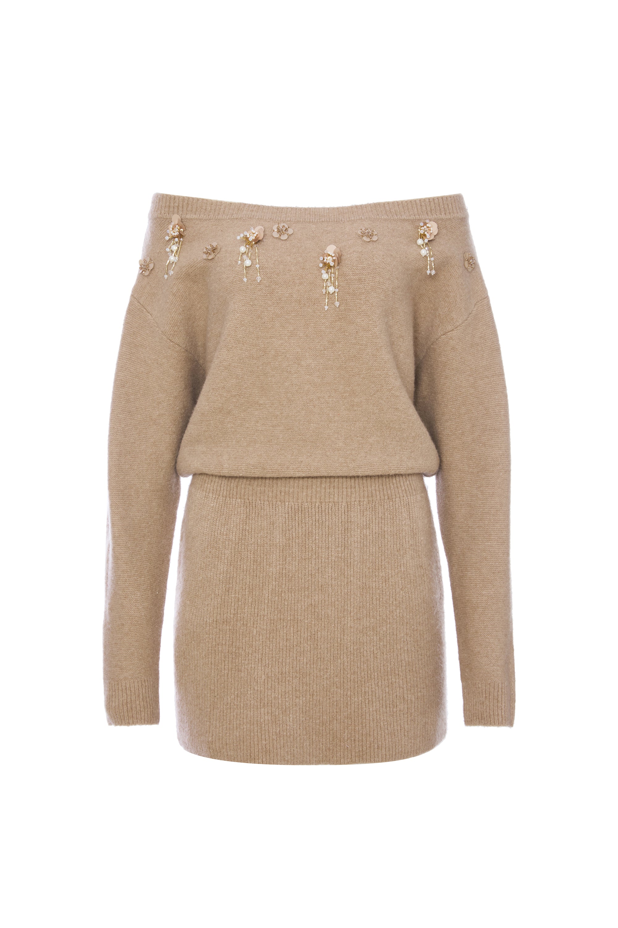 ROCHA ROMA Off Shoulder Beaded Knit Dress