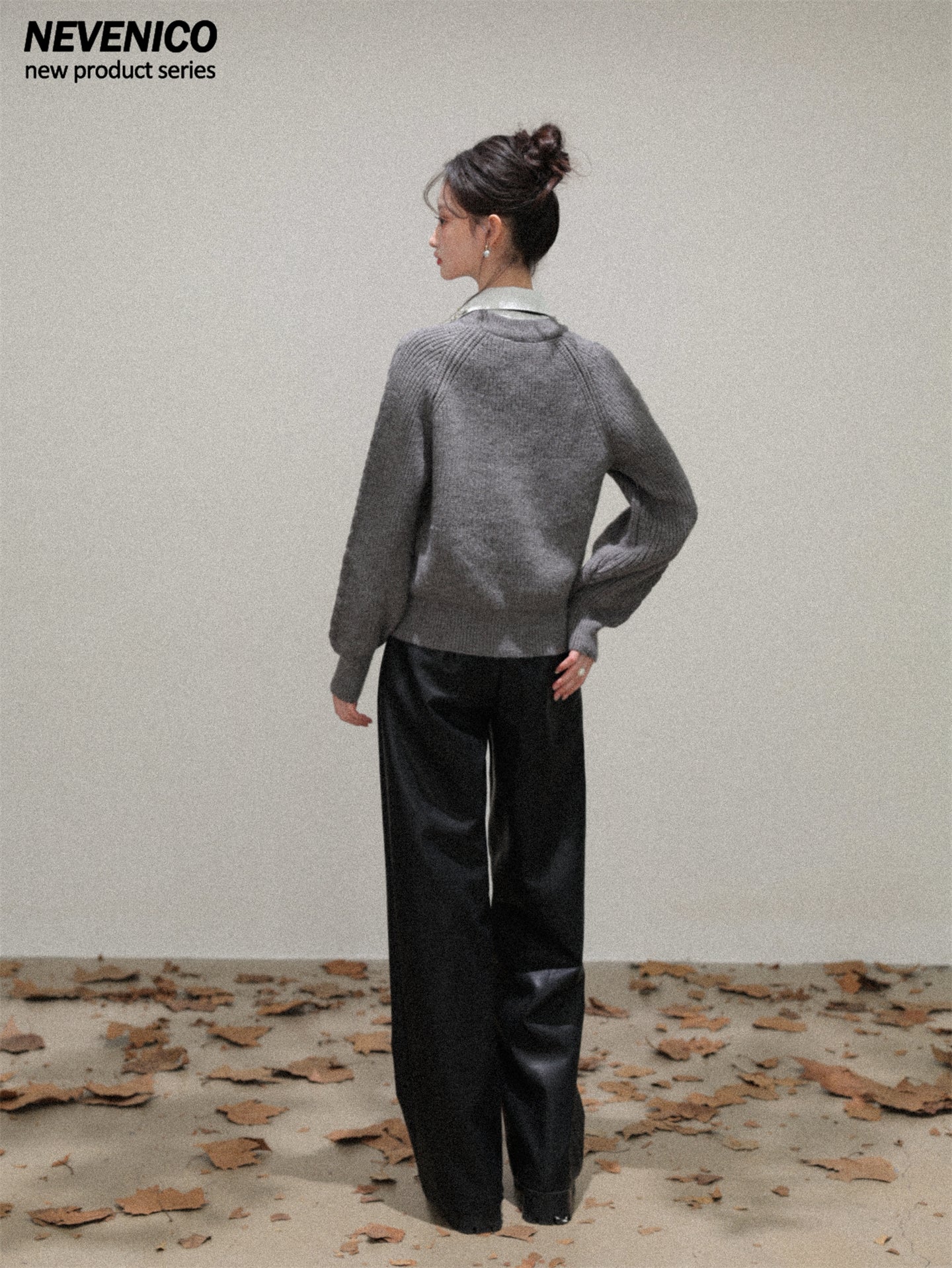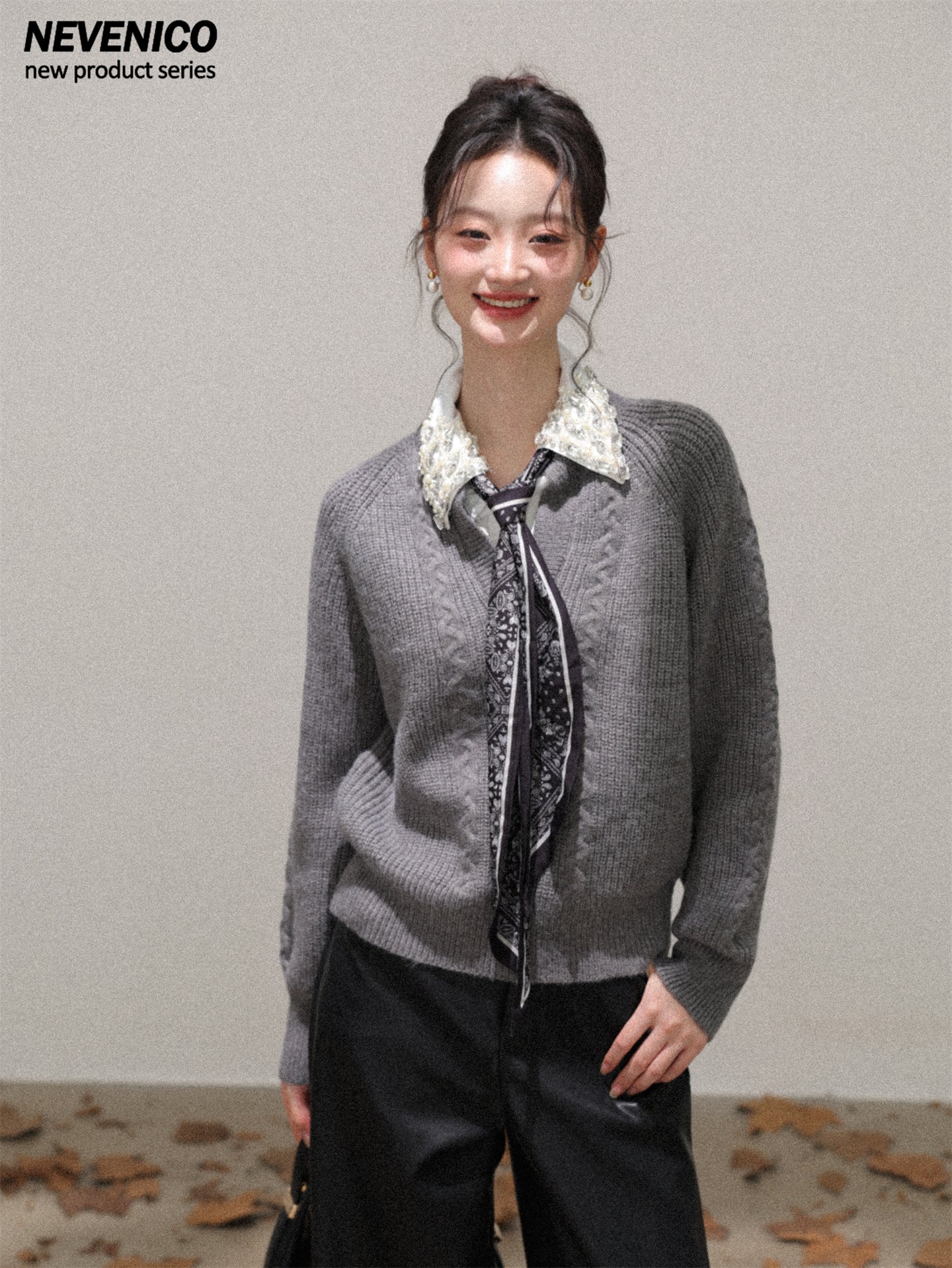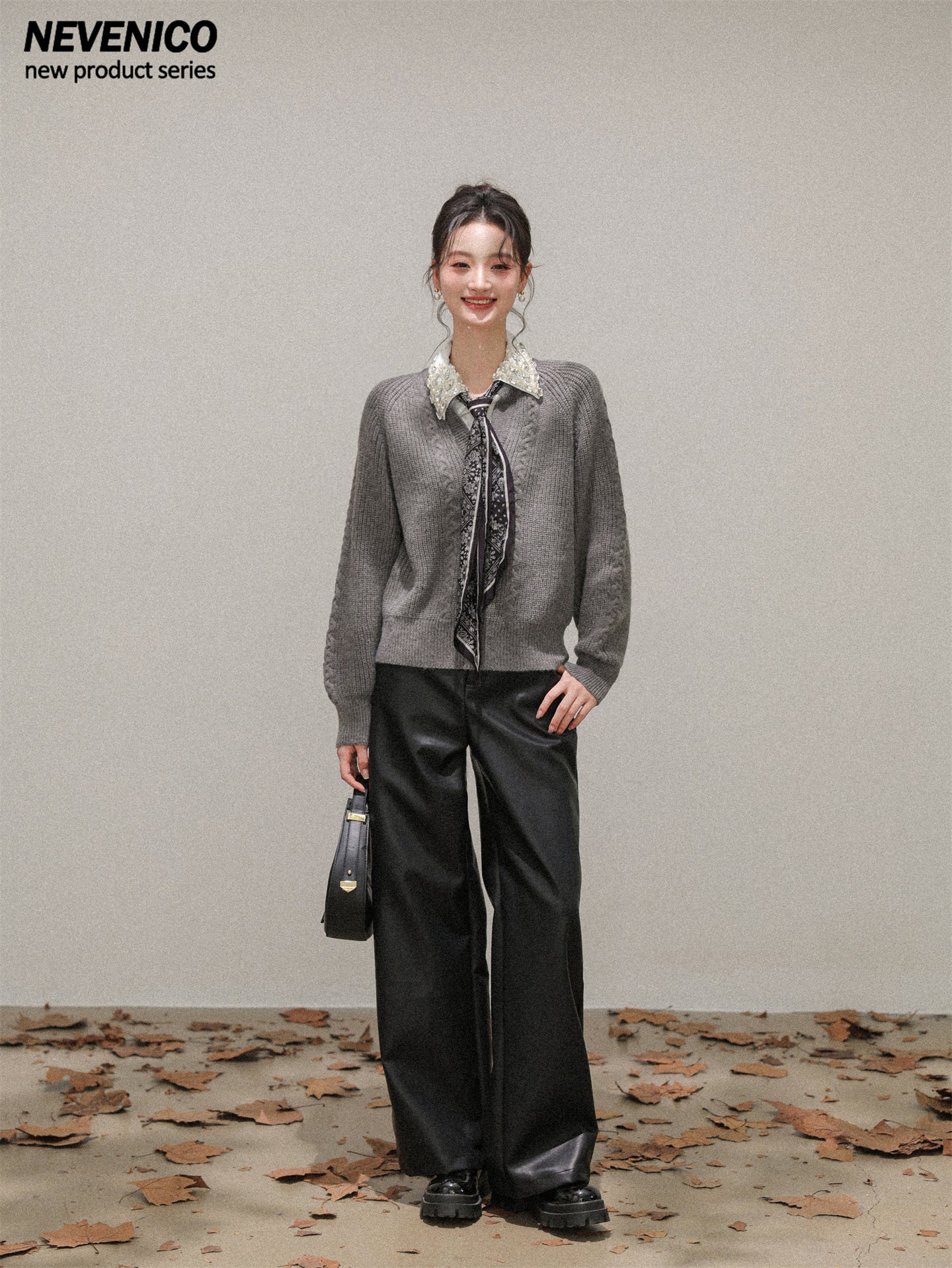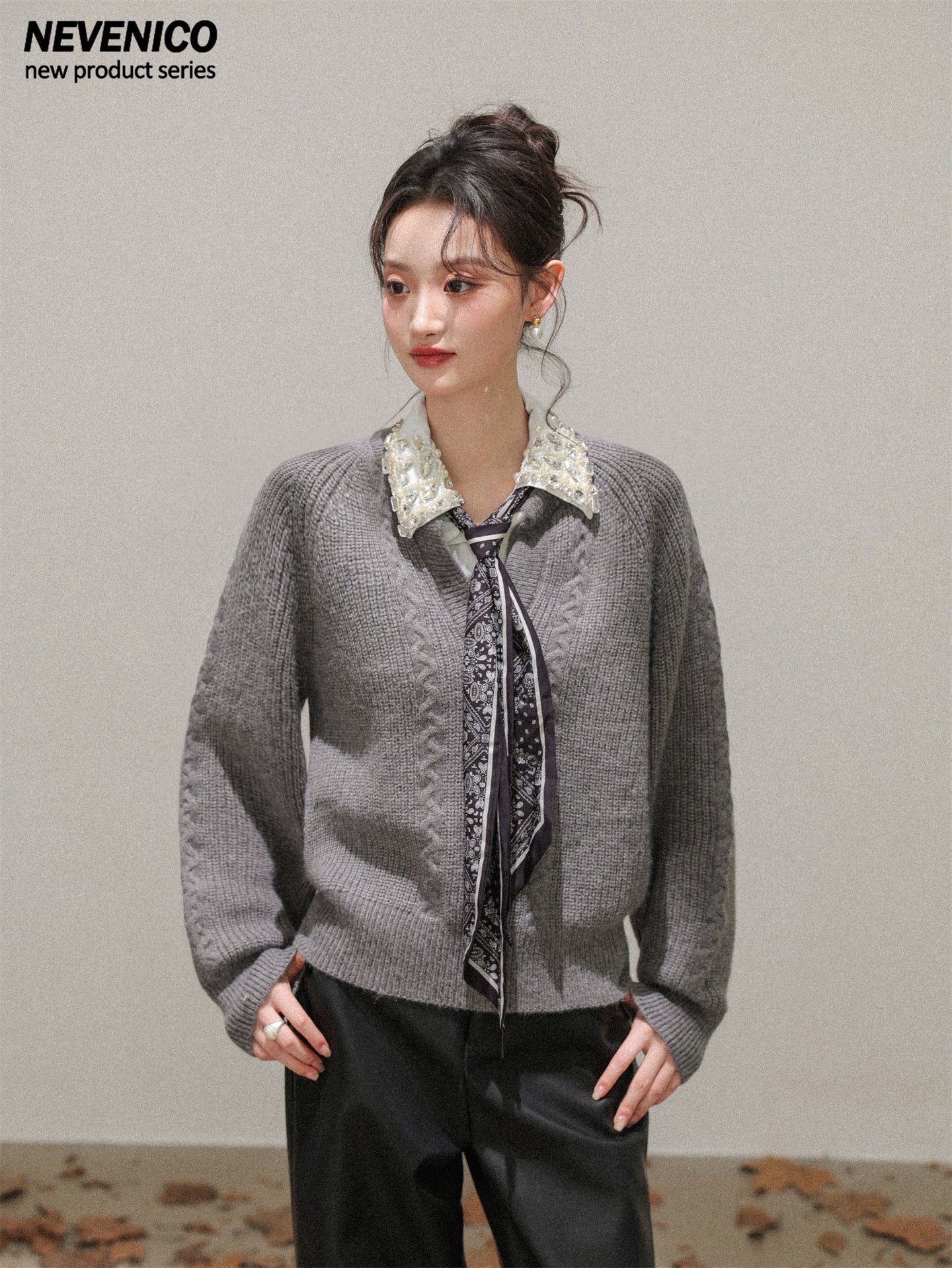 NEVENICO Embellished Faux Two-Piece Knit Top (Scarf Included)