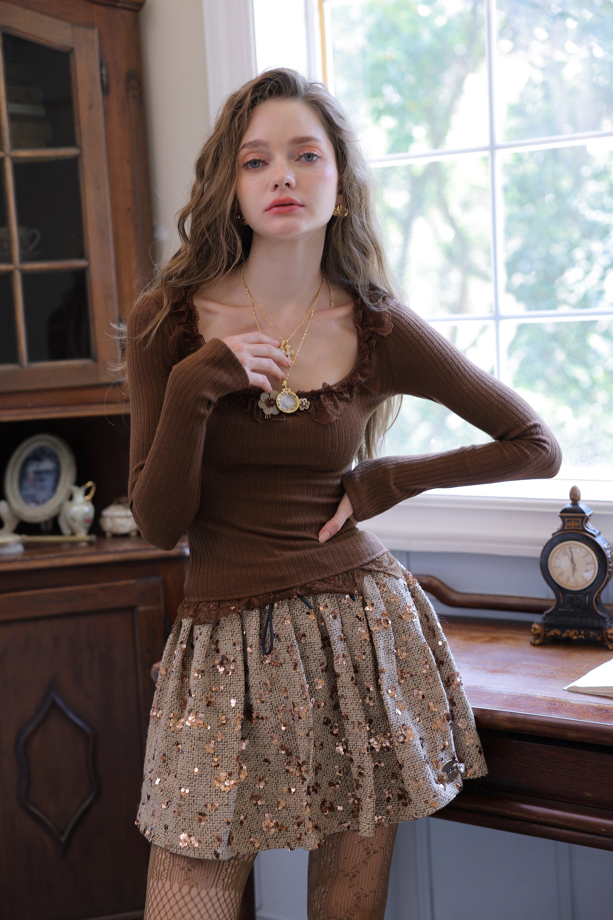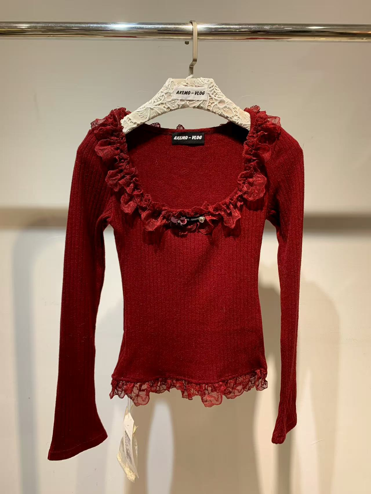AKEMO Retro Knitted Base Layer Top (GREY)(BROWN)(WHITE)(RED)