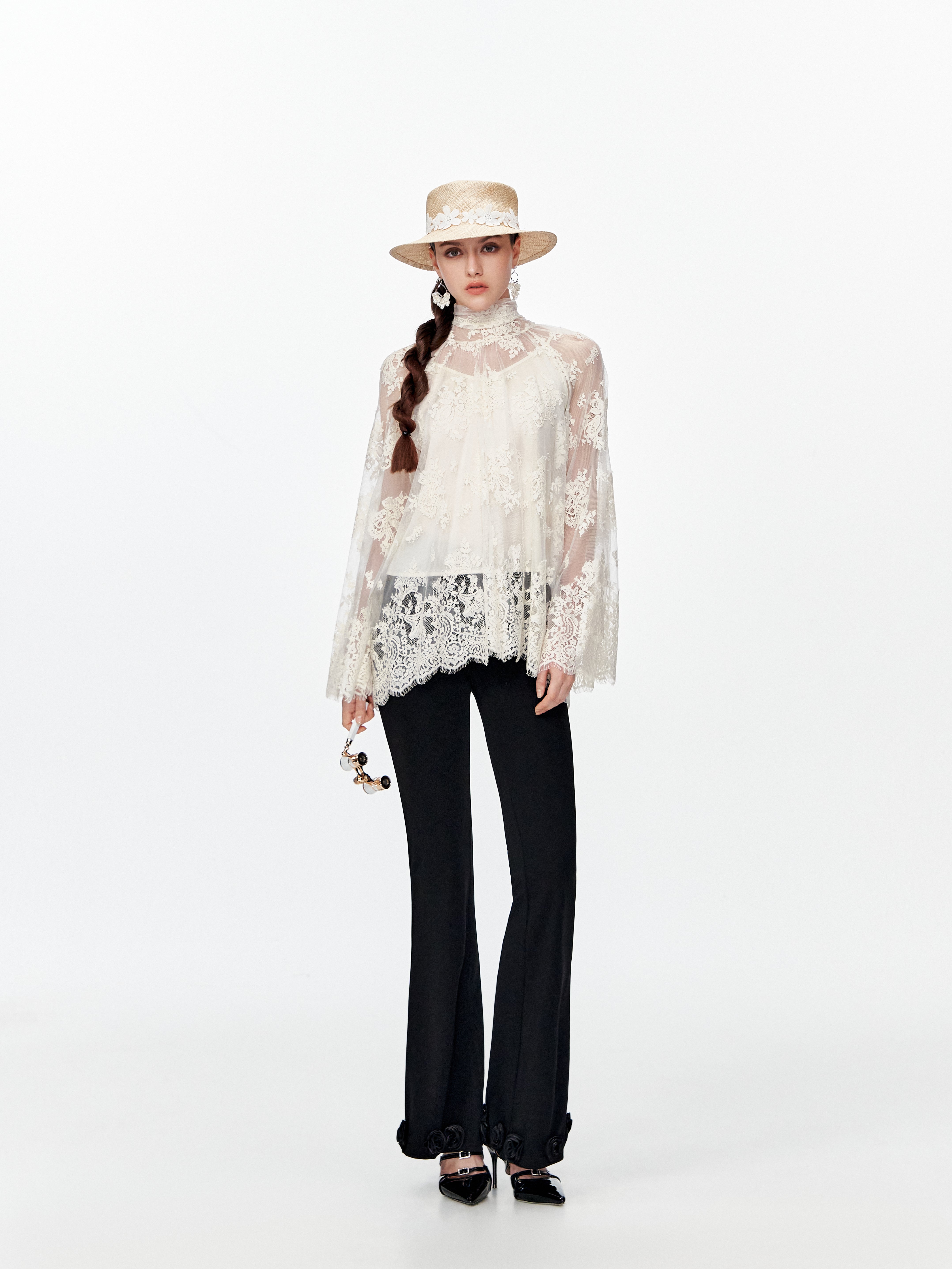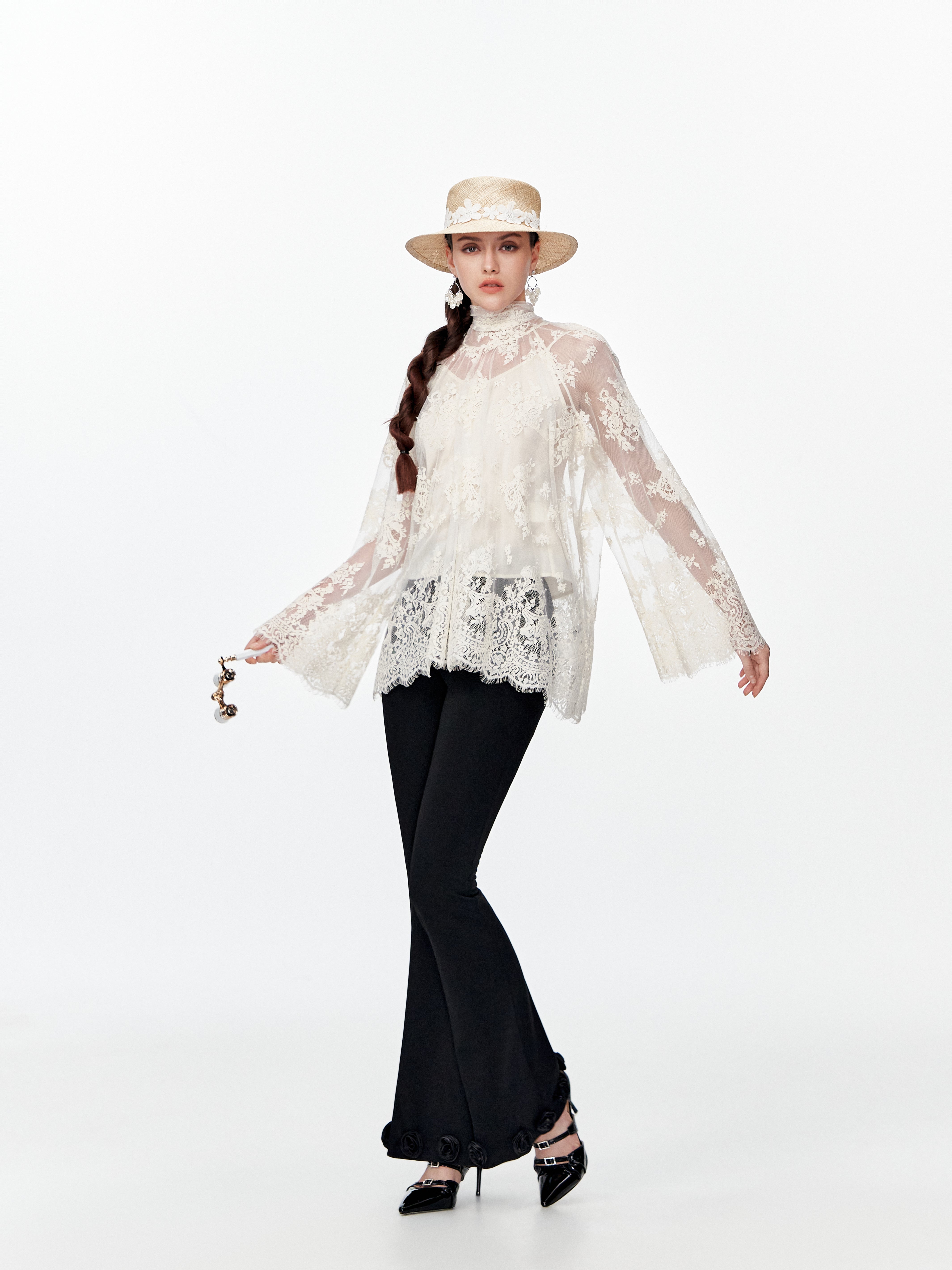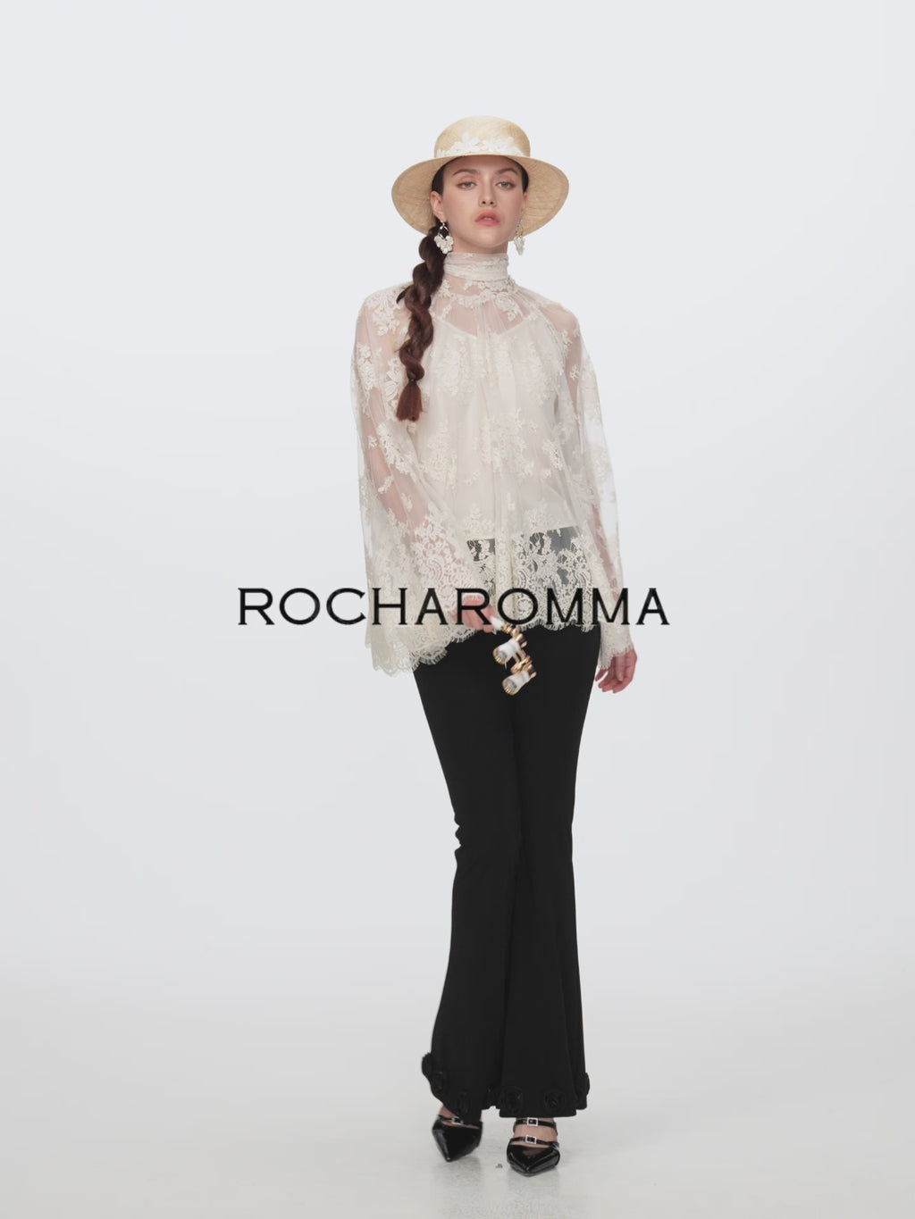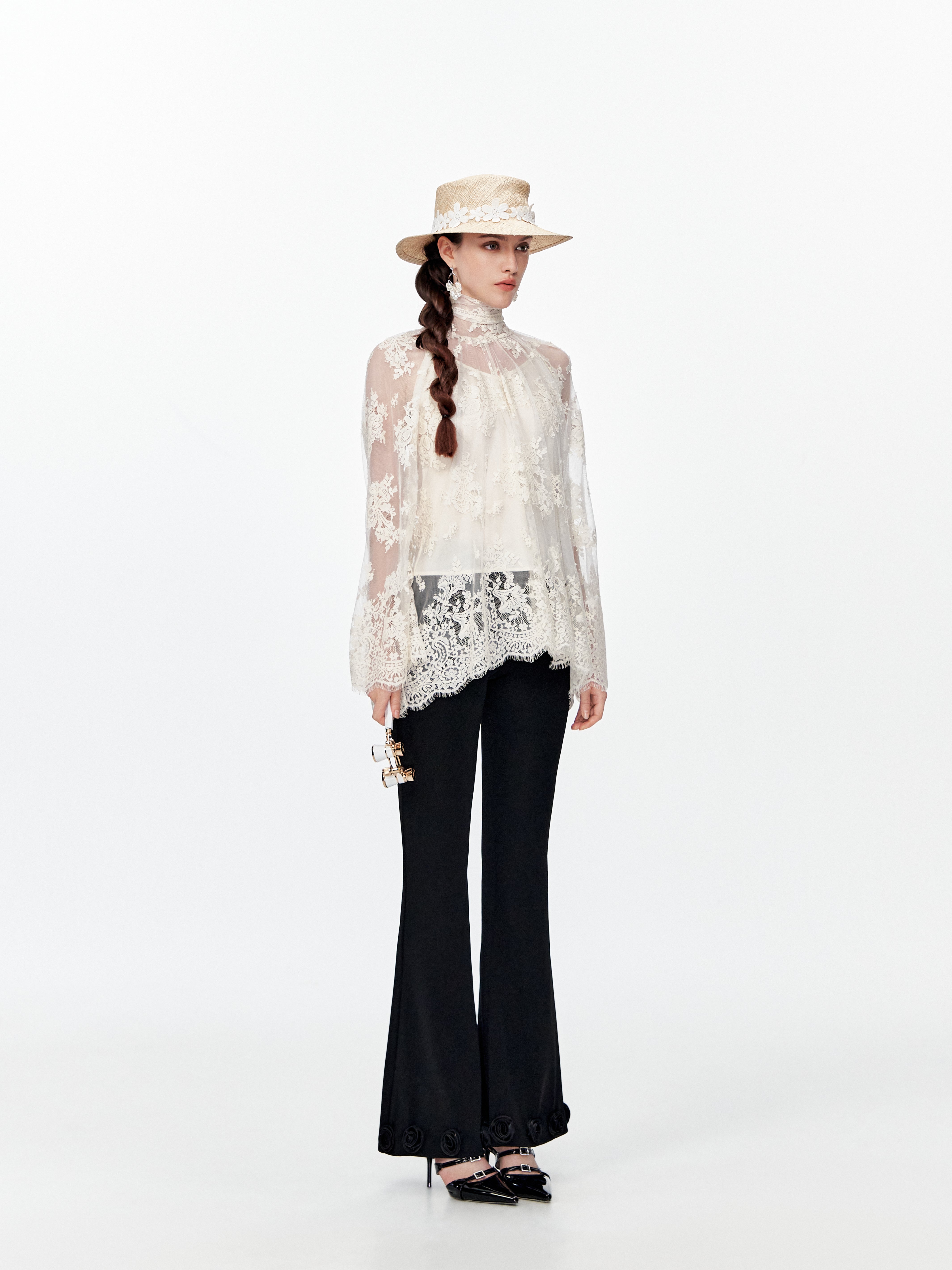 ROCHA ROMA Lace-Panel High-Neck Overlay Top