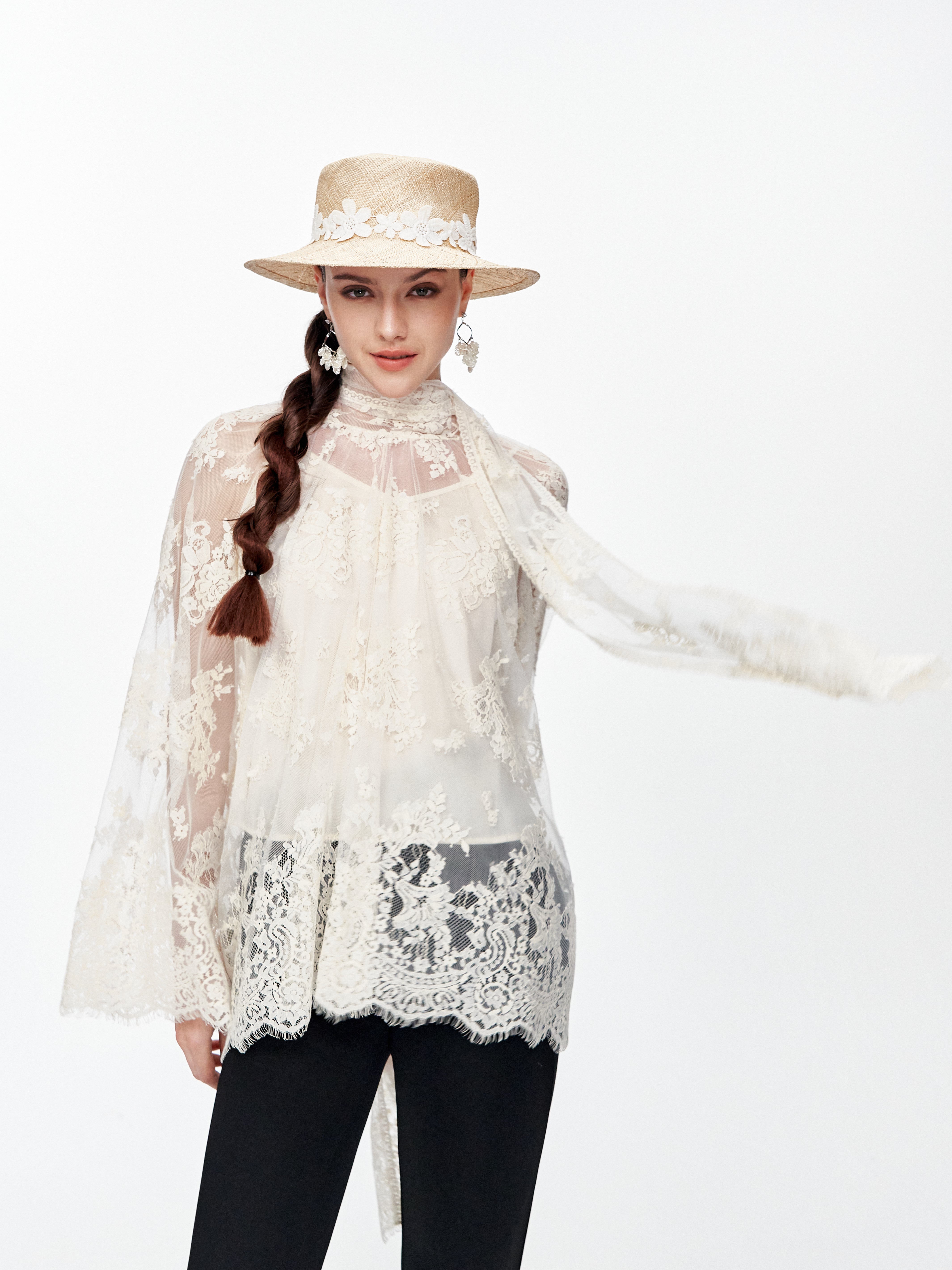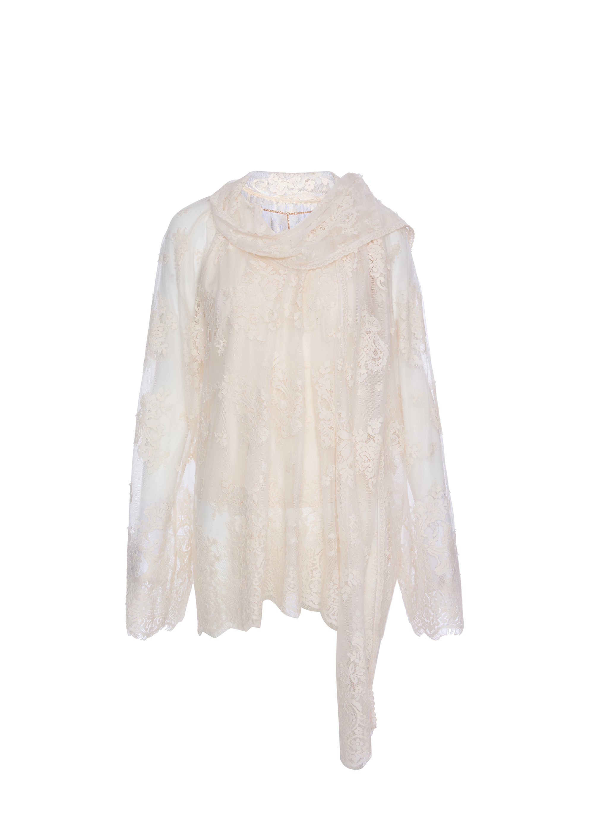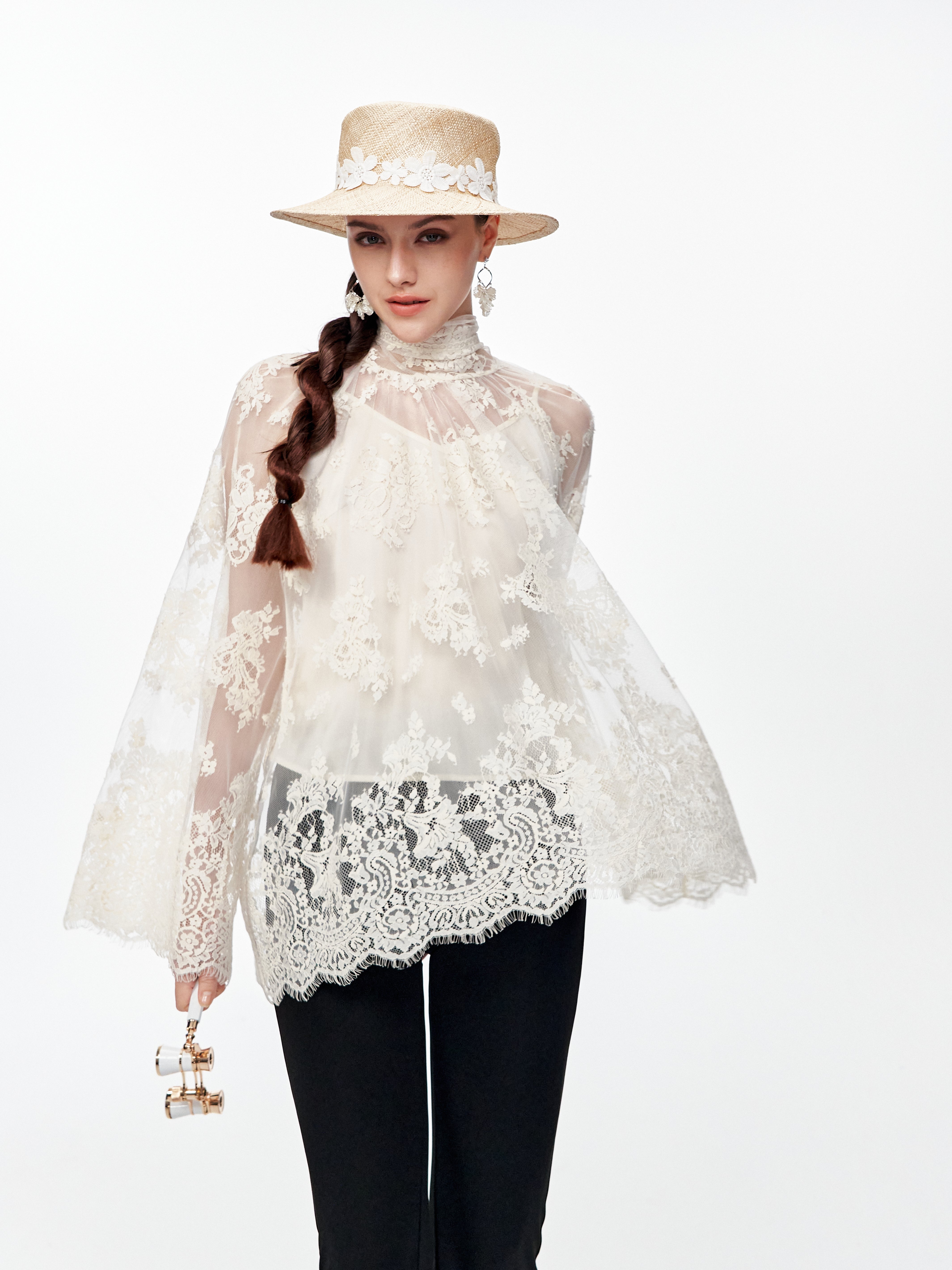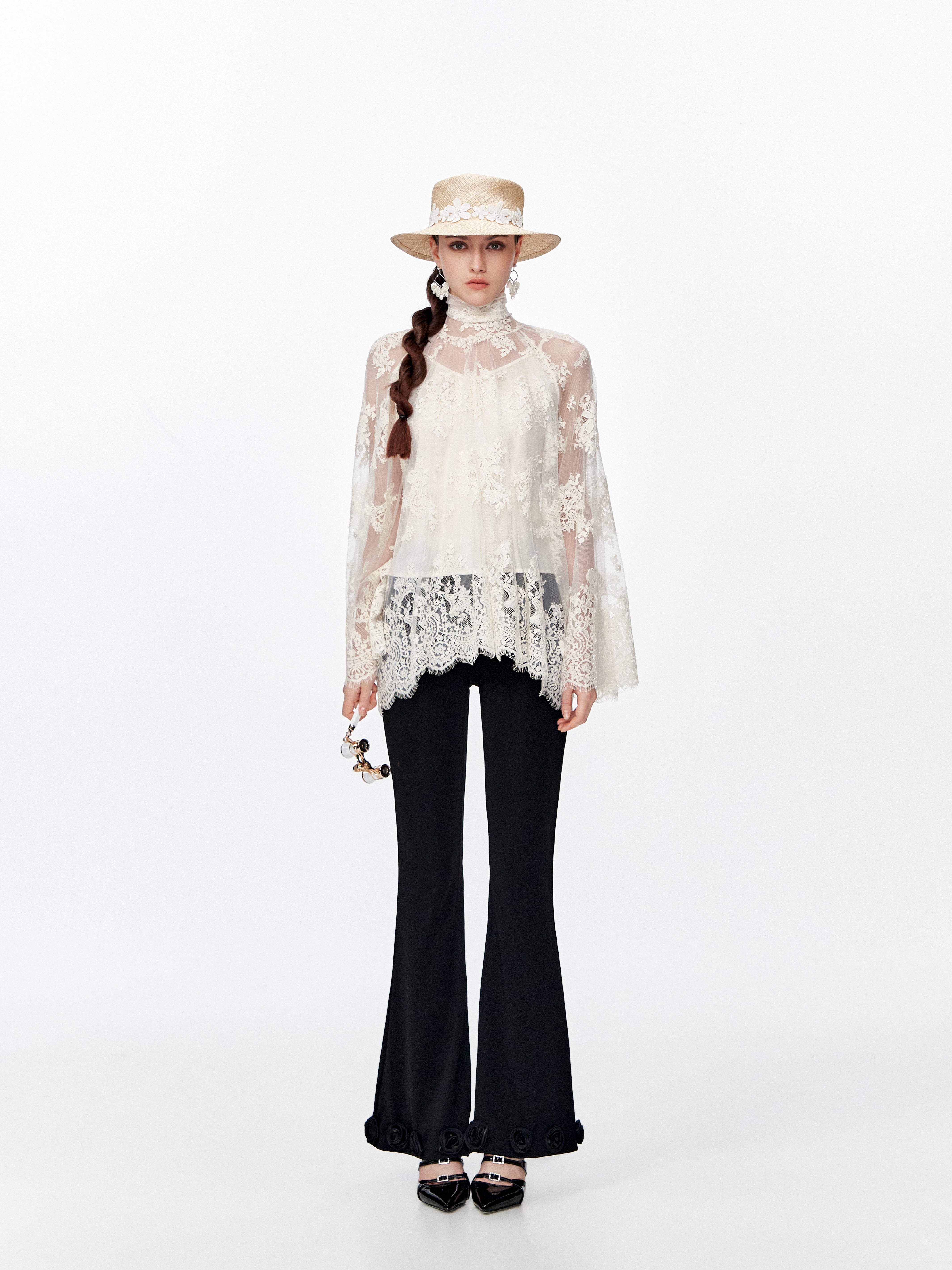 ROCHA ROMA Lace-Panel High-Neck Overlay Top