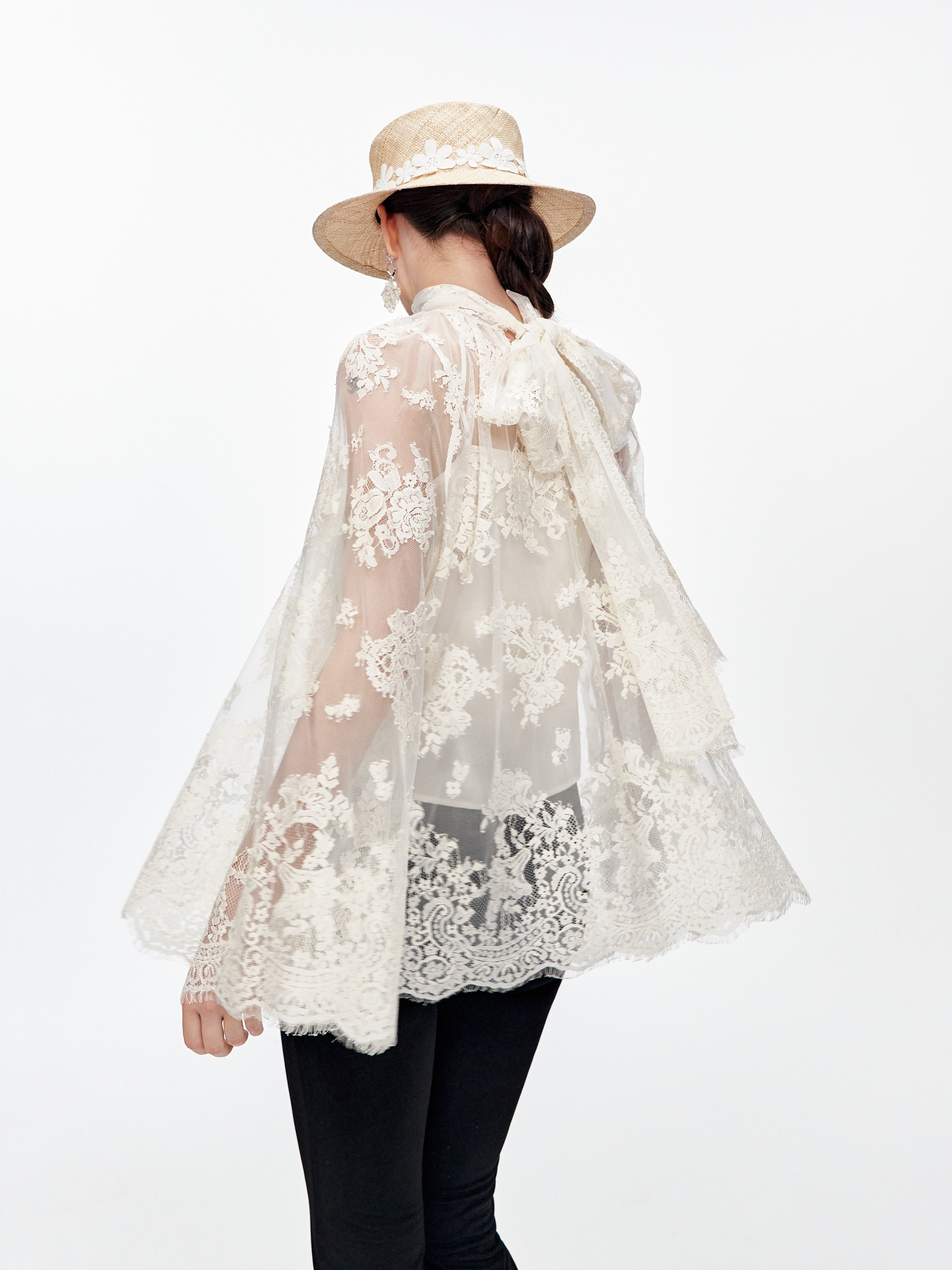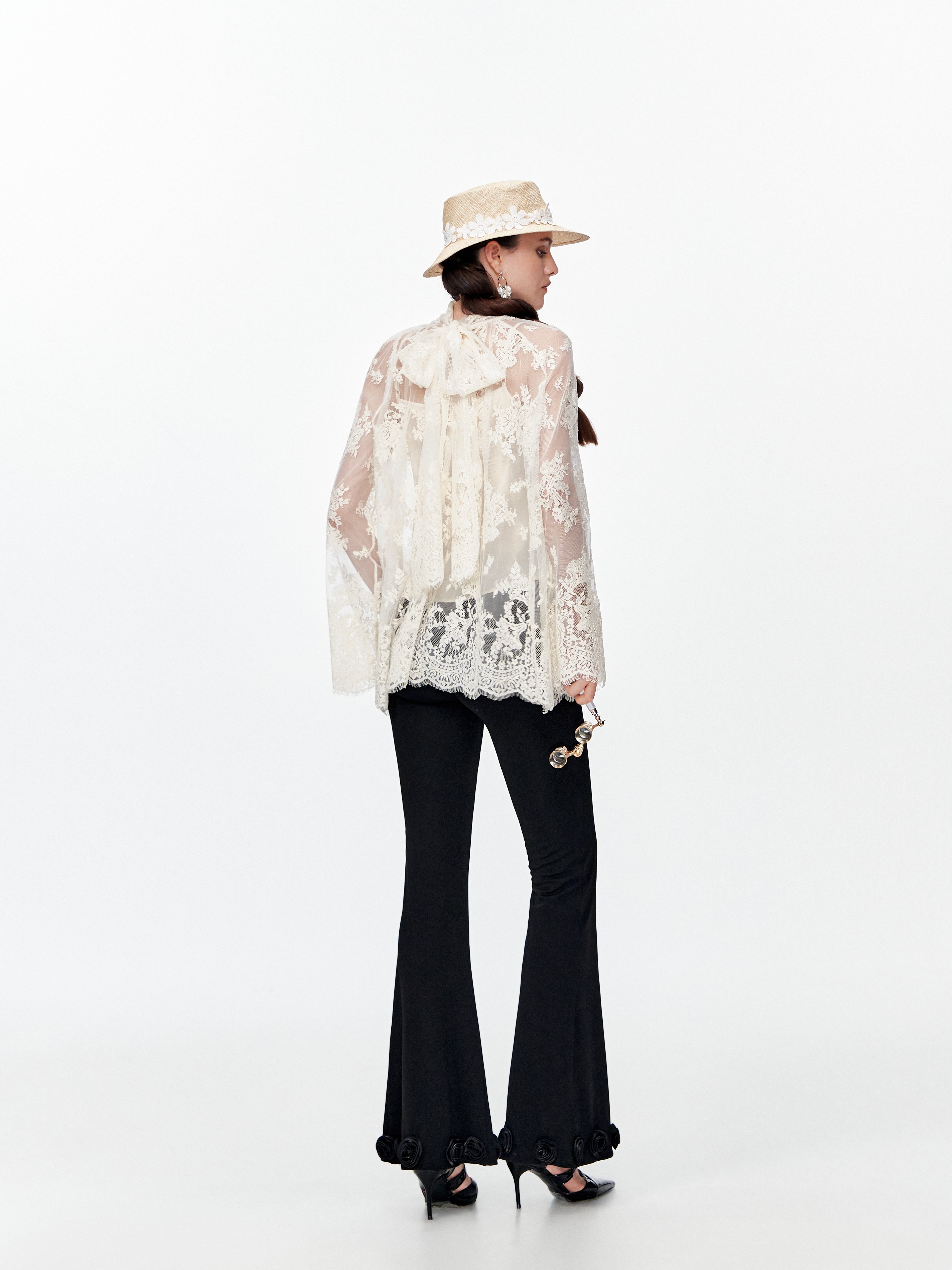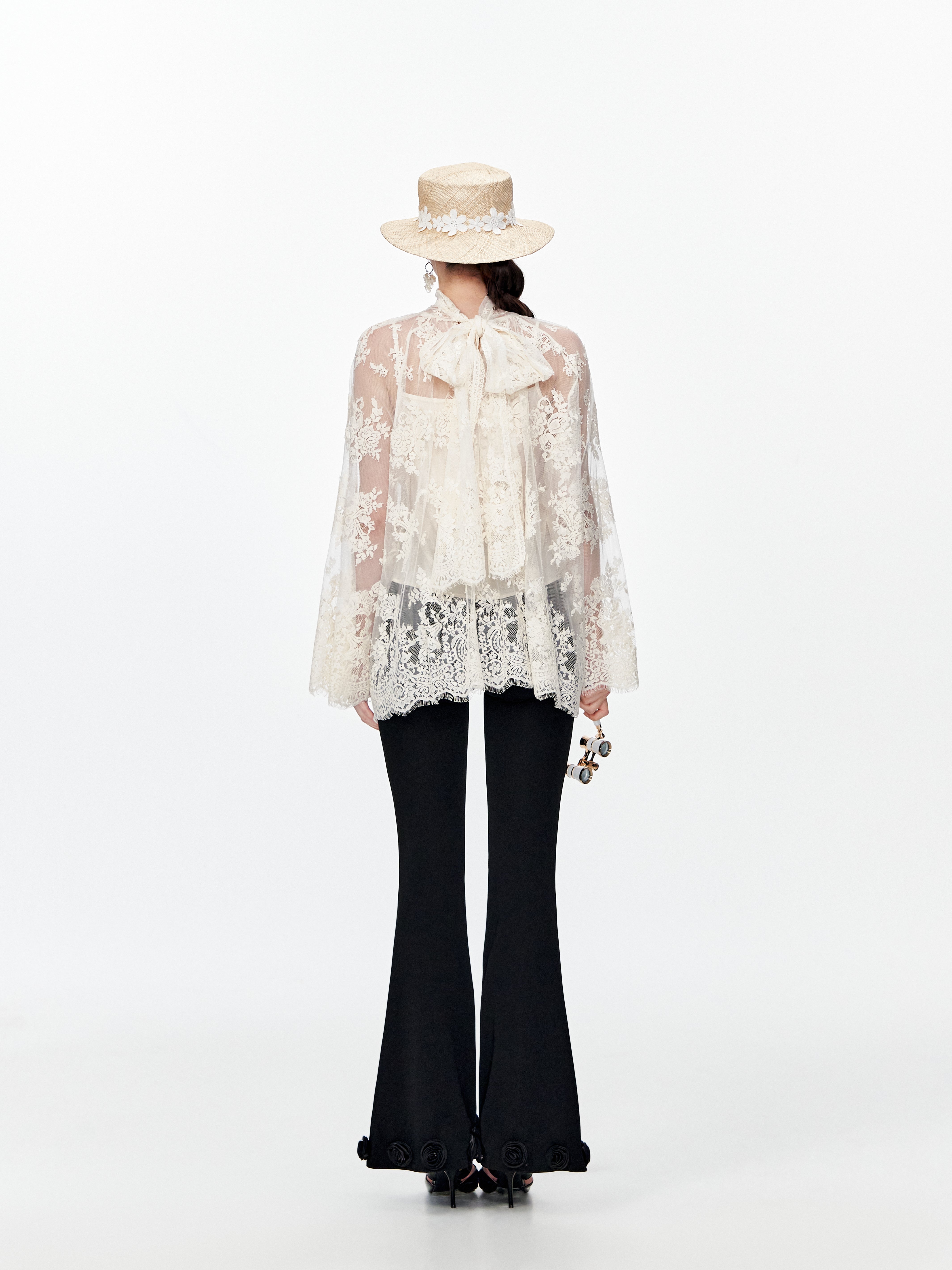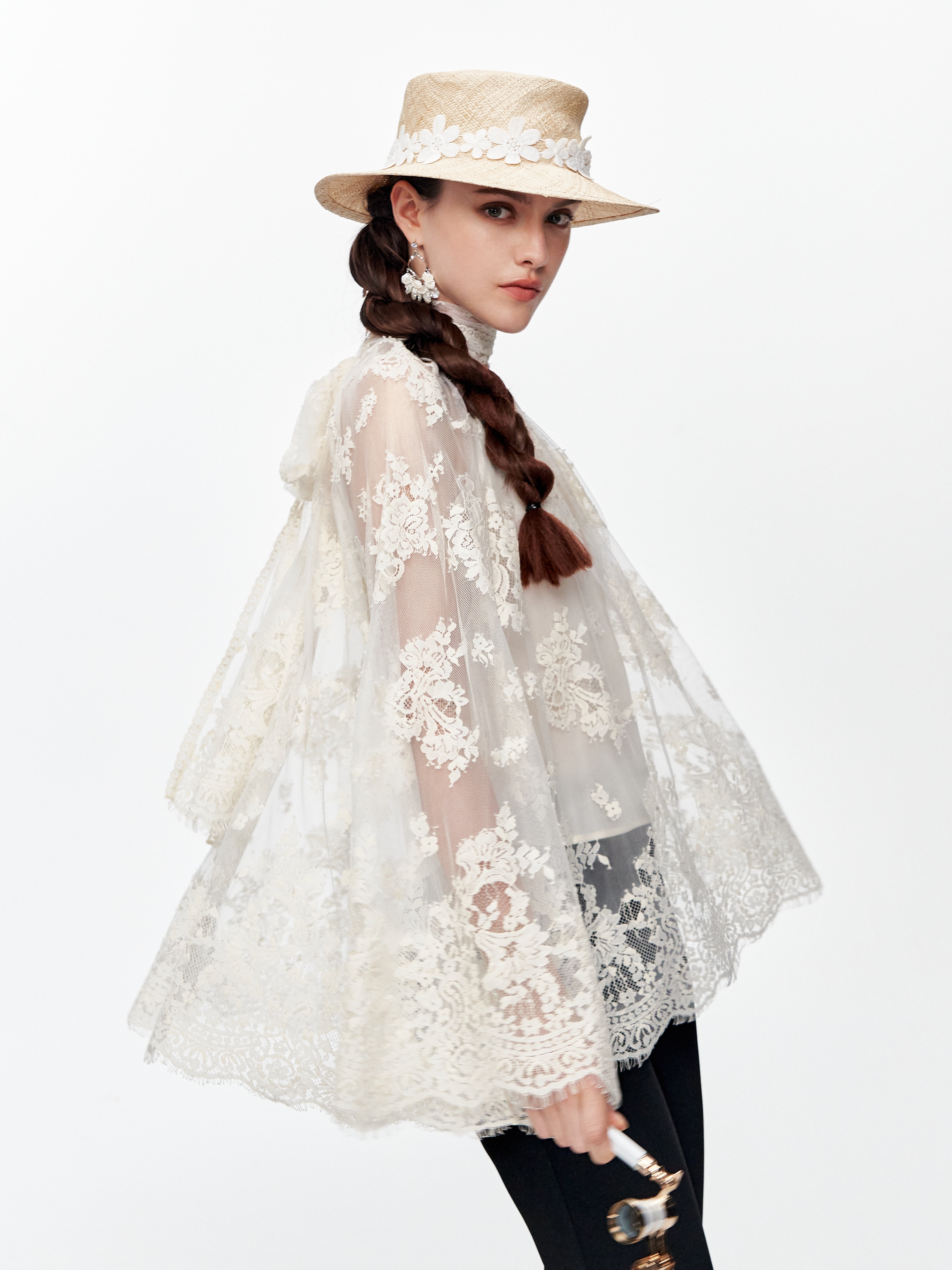 ROCHA ROMA Lace-Panel High-Neck Overlay Top