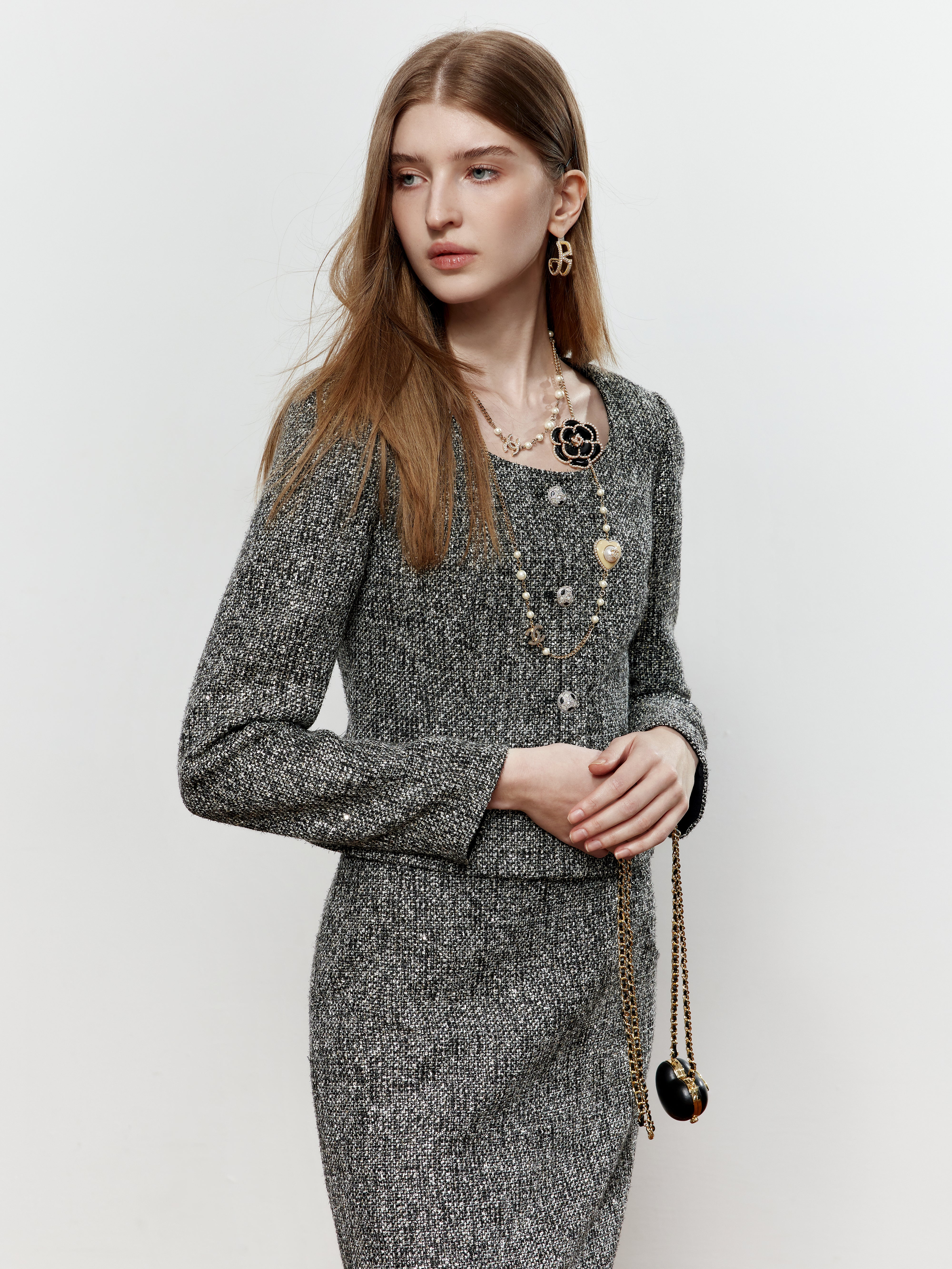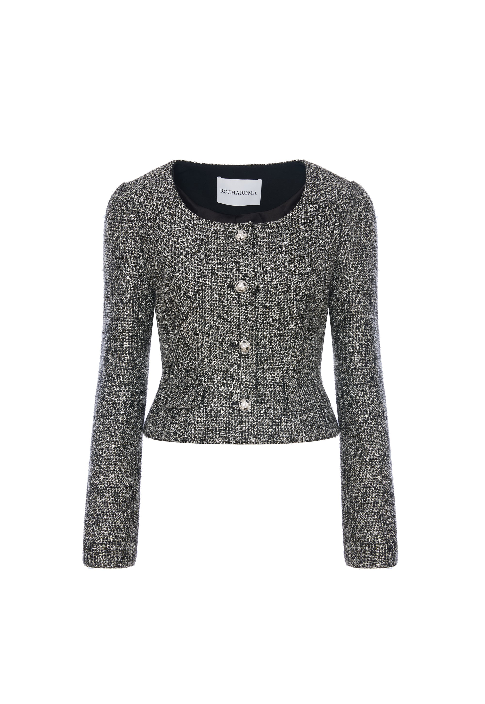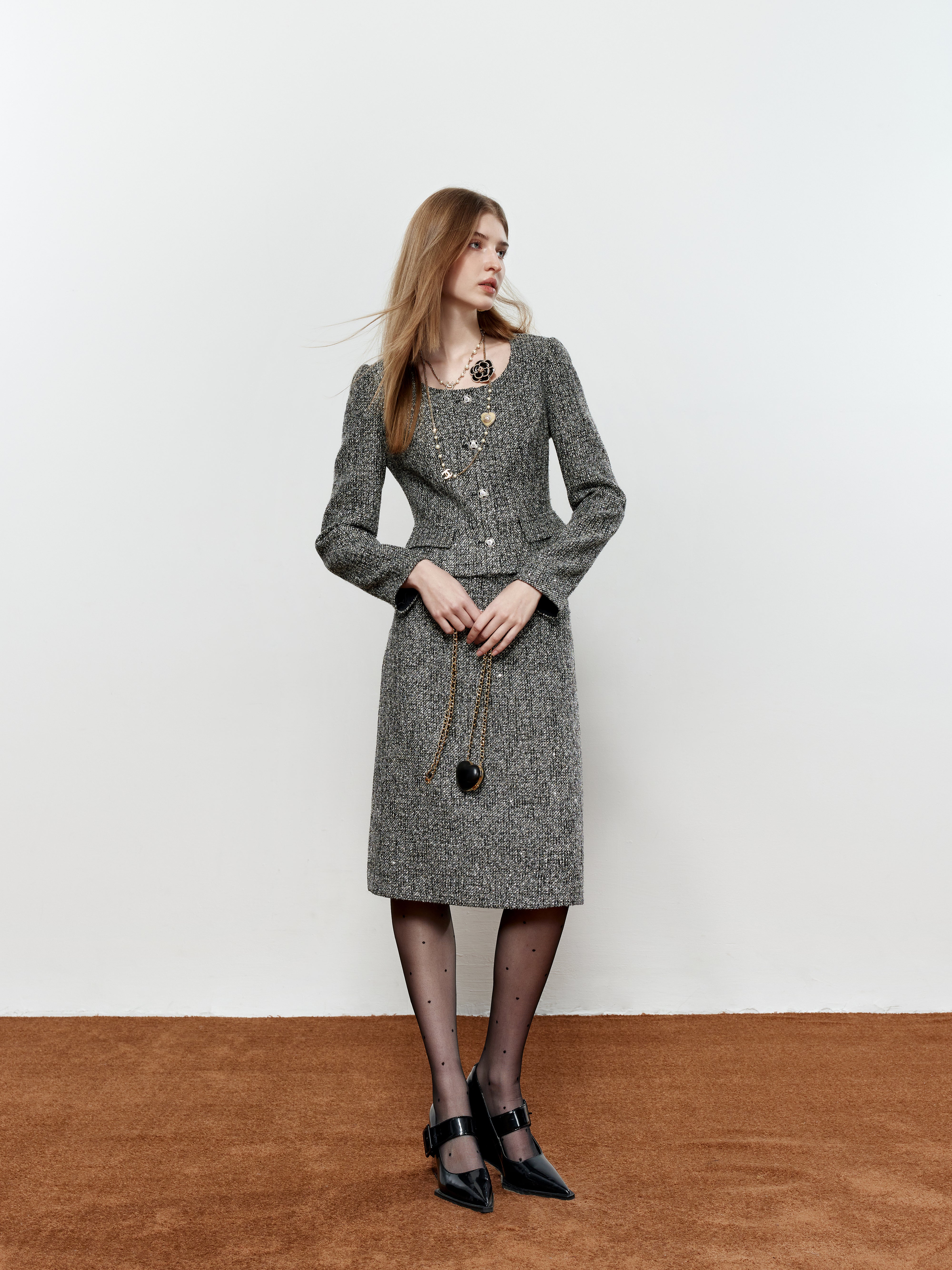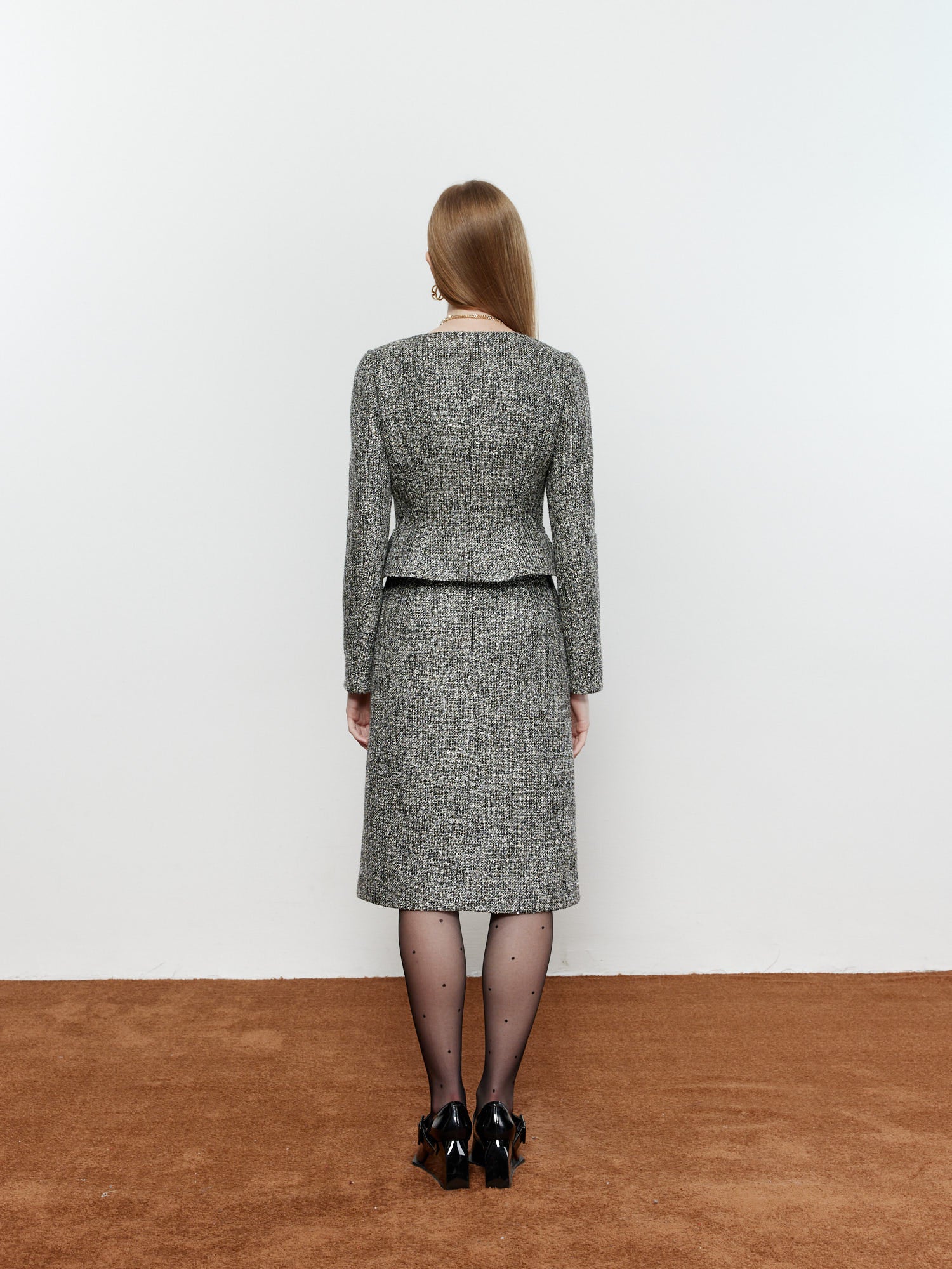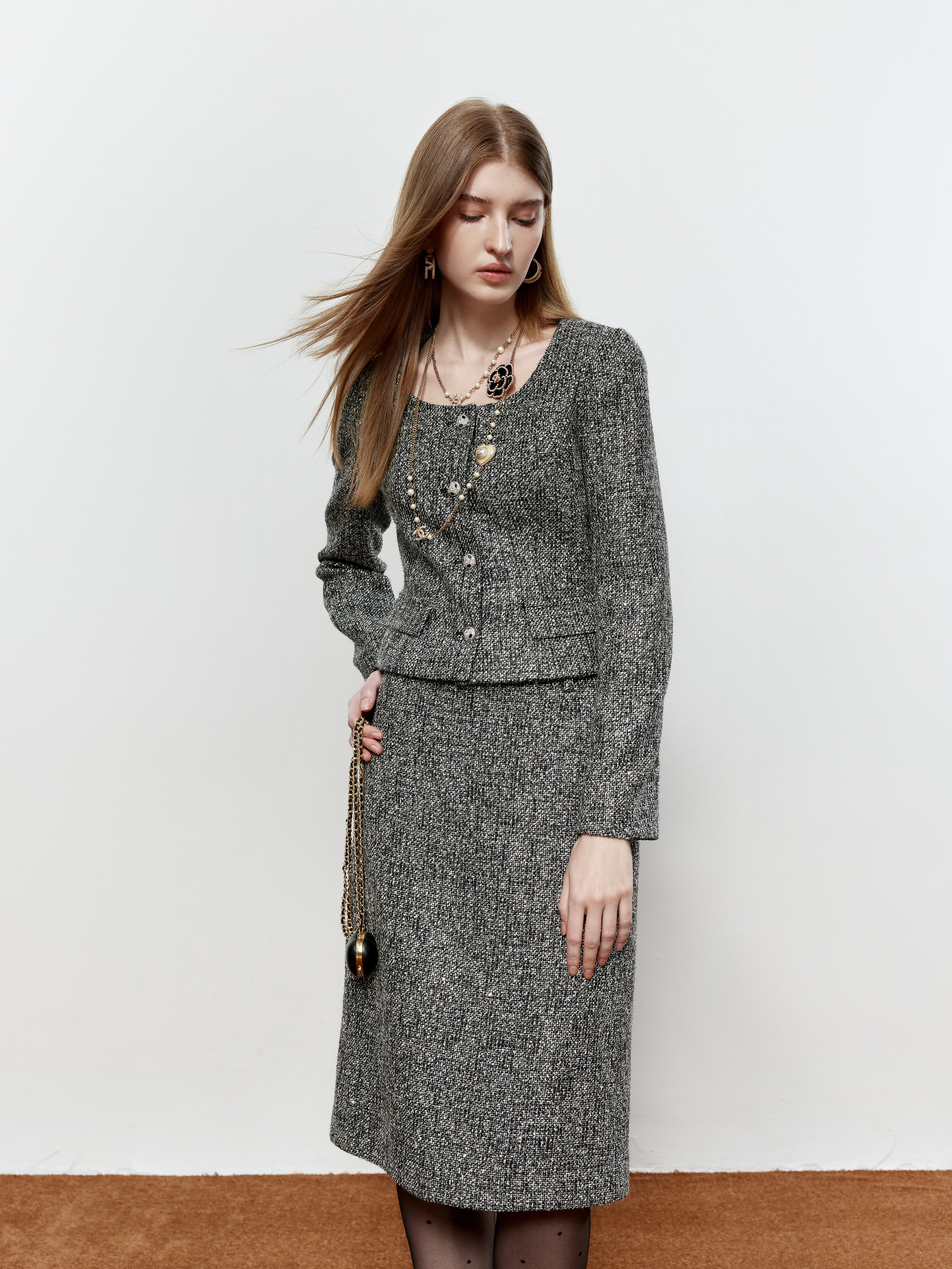 ROCHA ROMA Crew Neck Fitted Tweed Jacket+Maxi Skirt