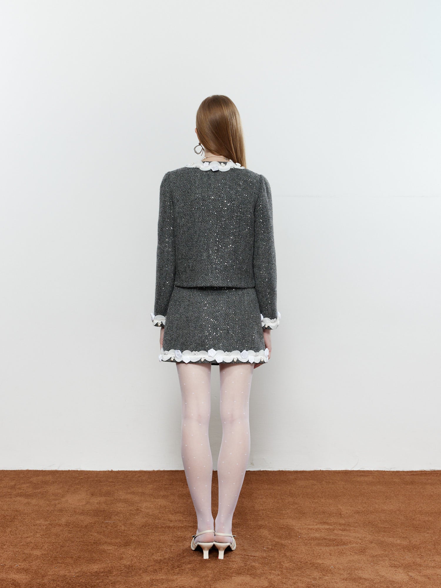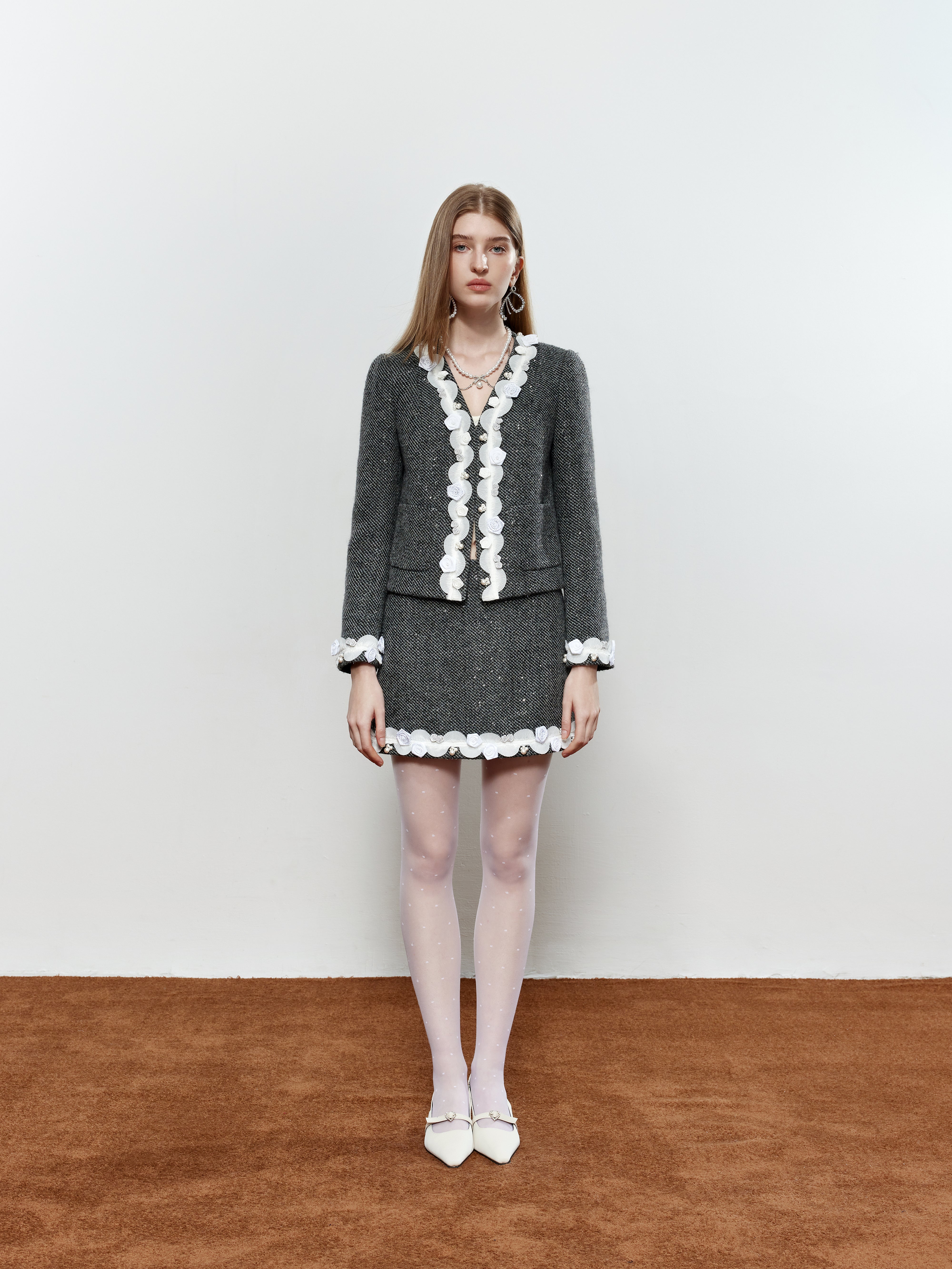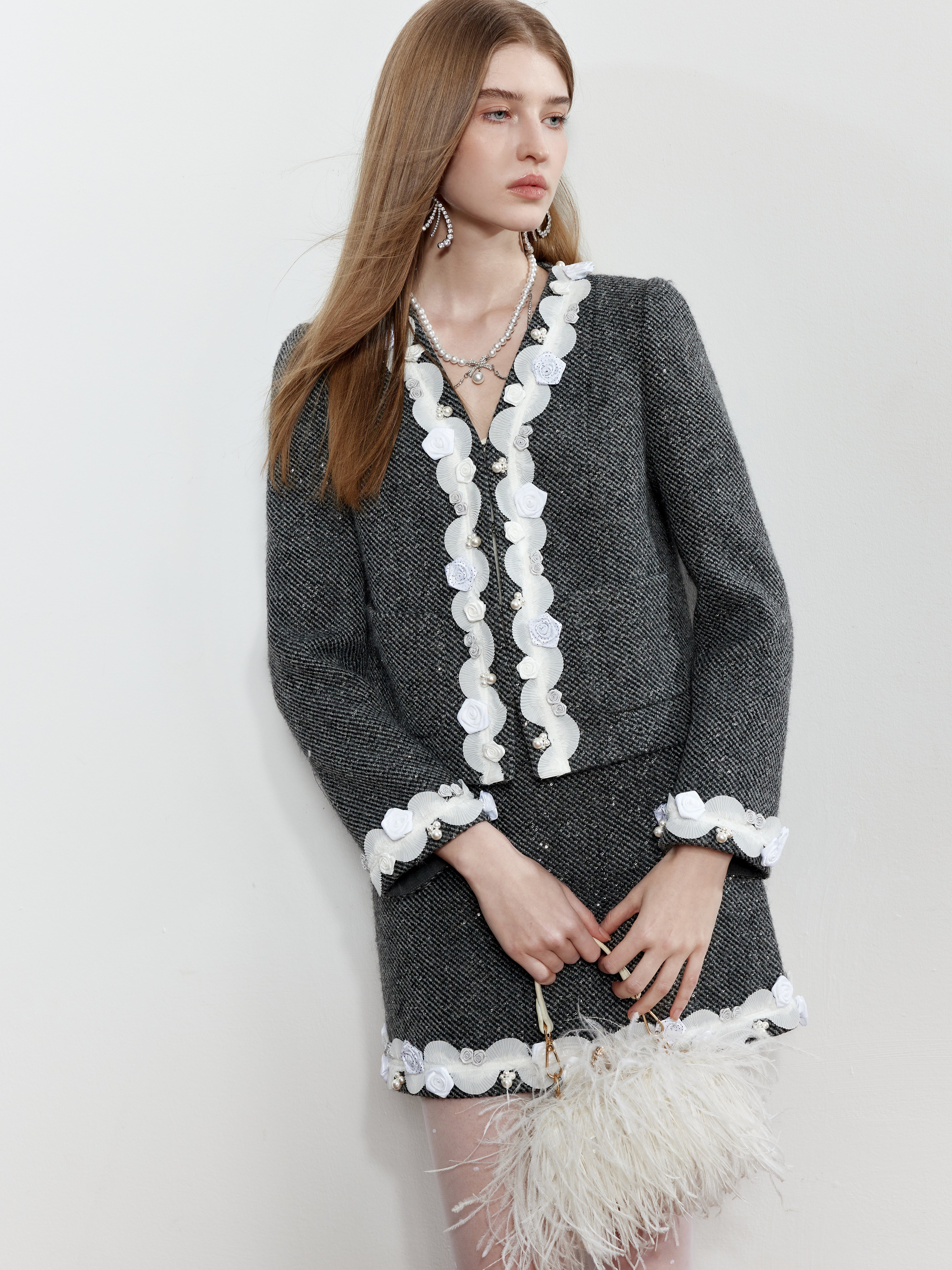 ROCHA ROMA Embellished 3D Floral Jacket+Skirt
