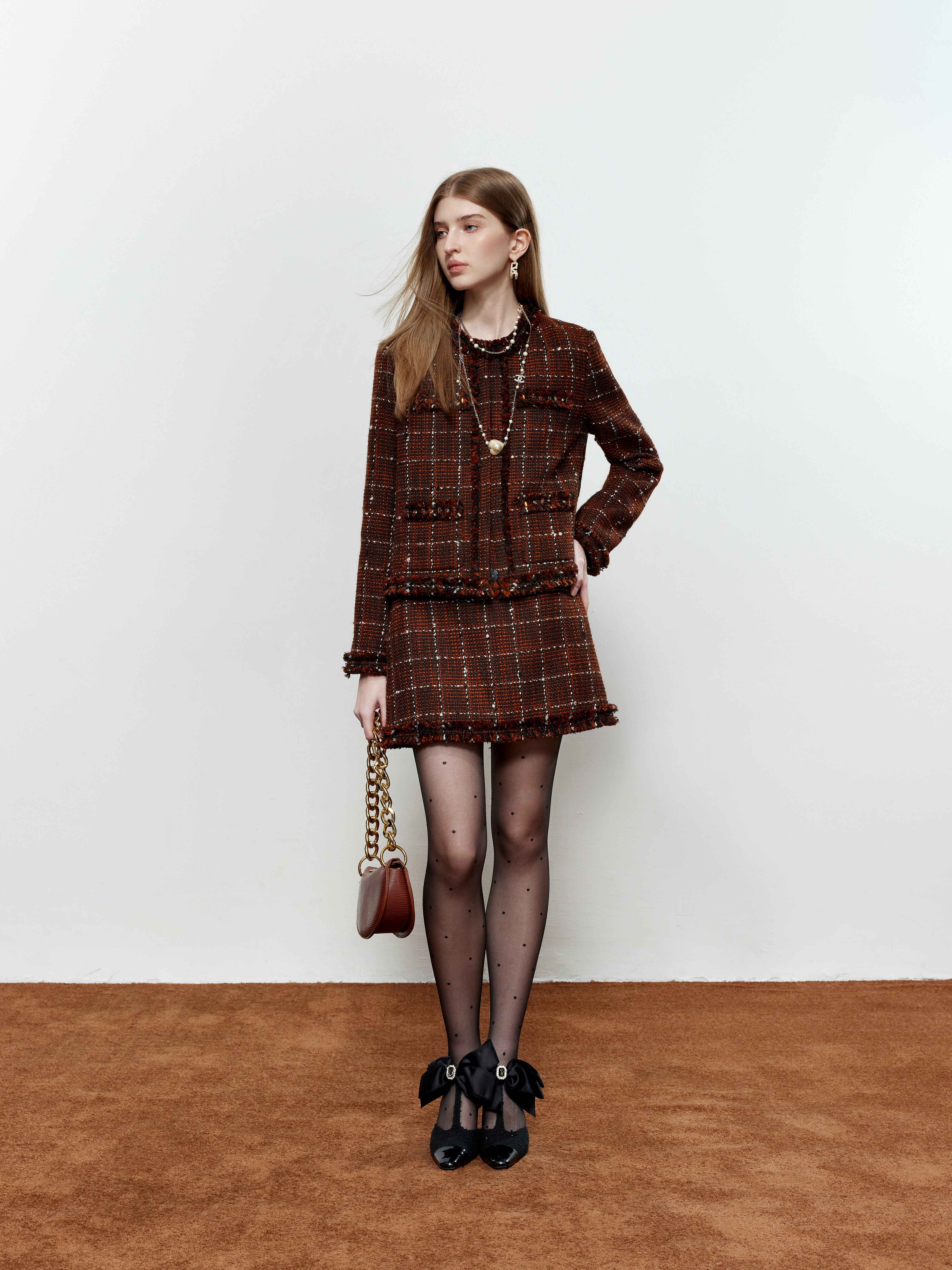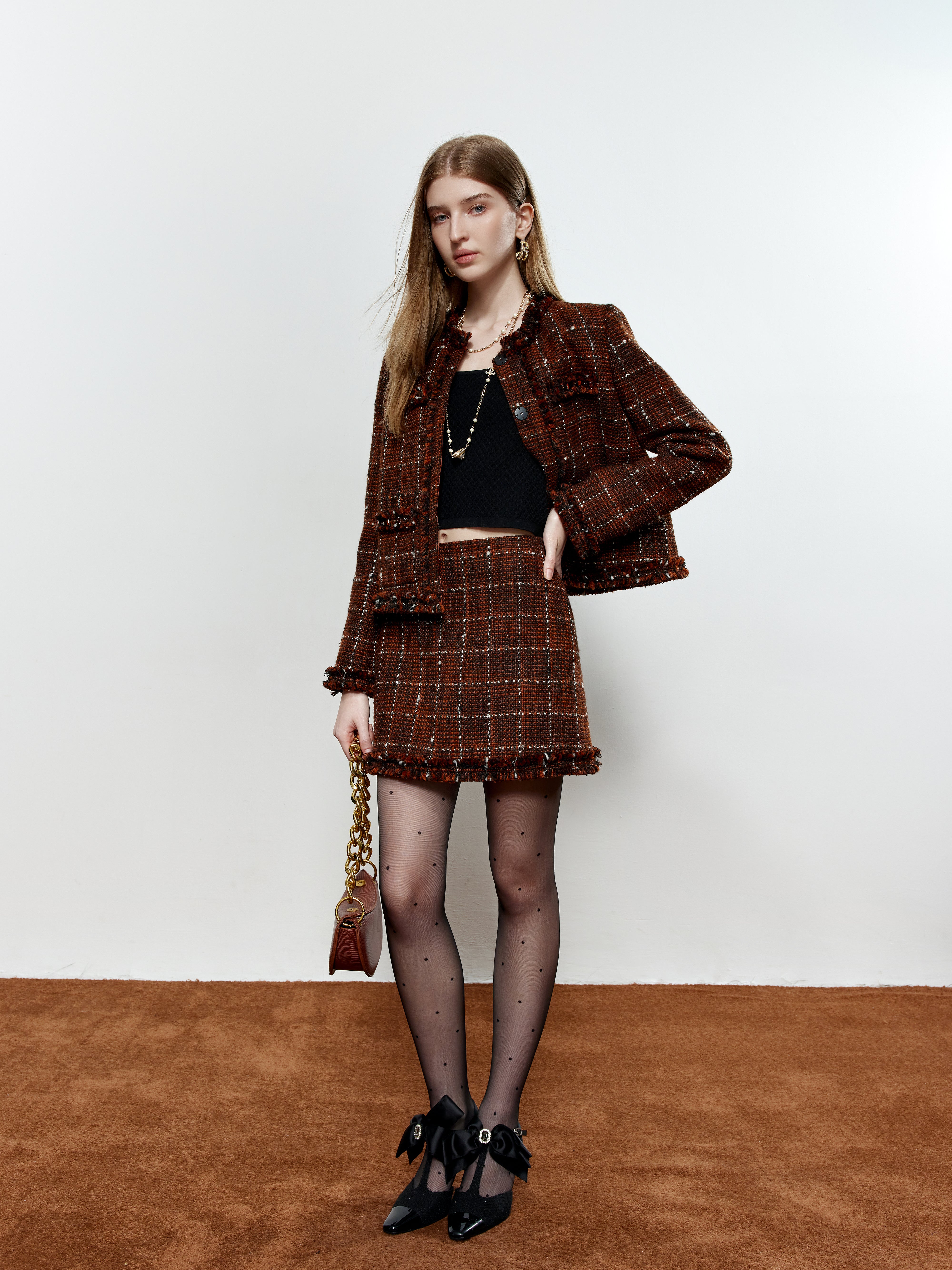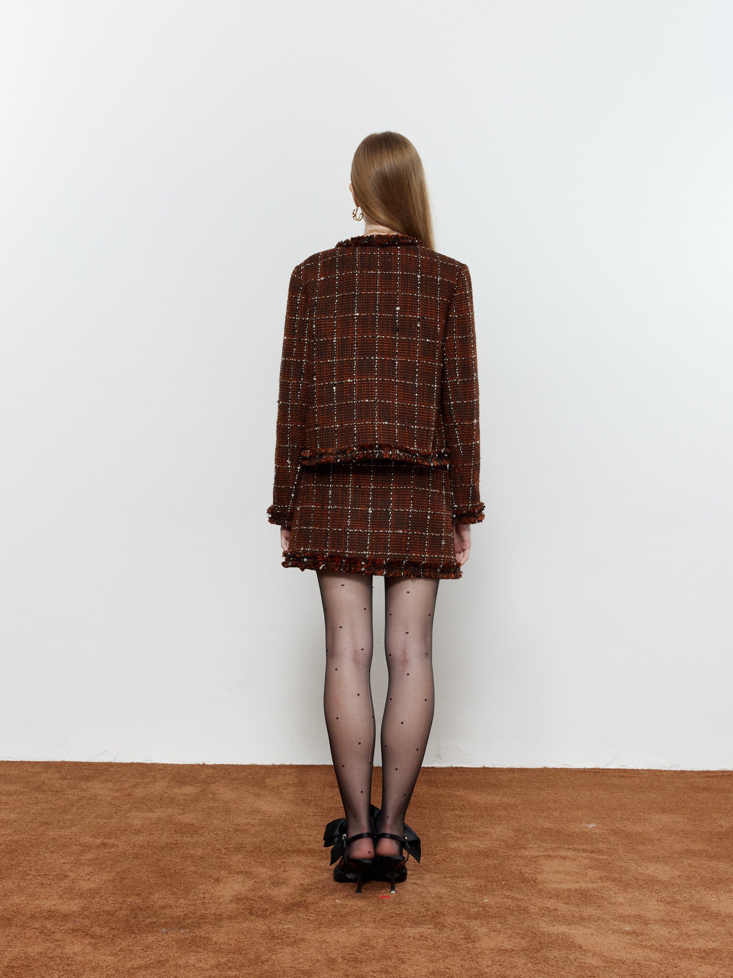 ROCHA ROMA Frayed Tweed Down Jacket+Skirt