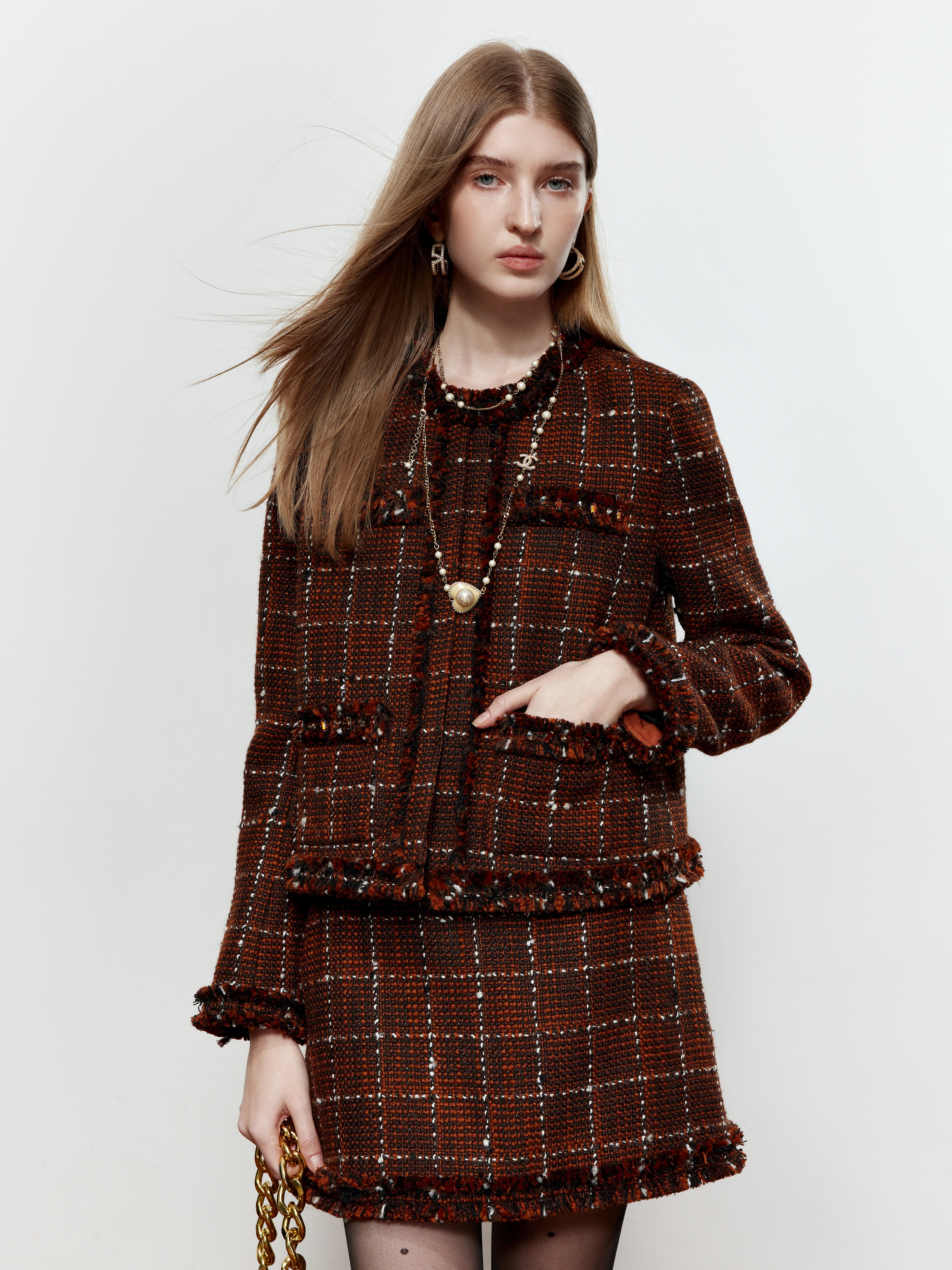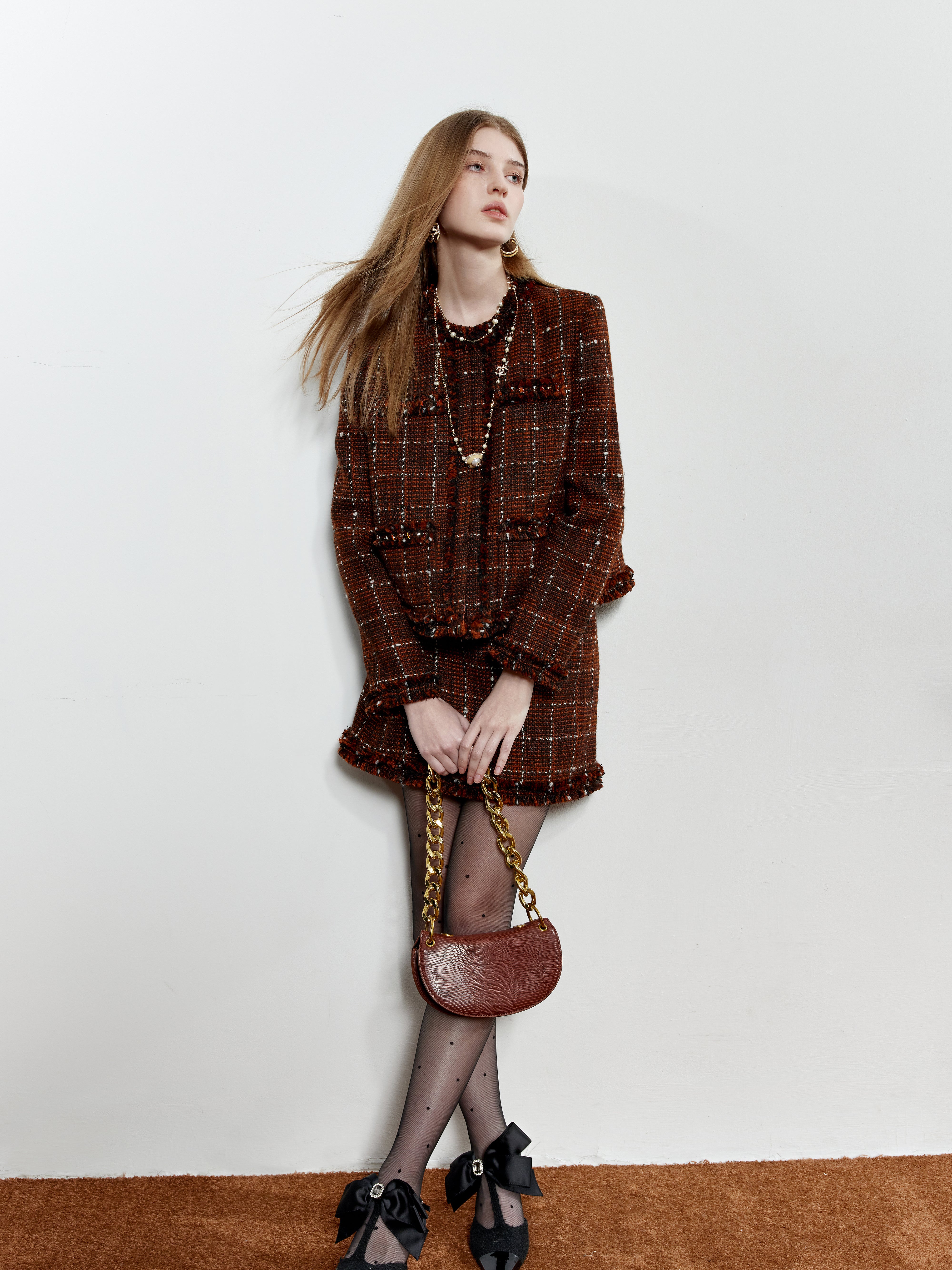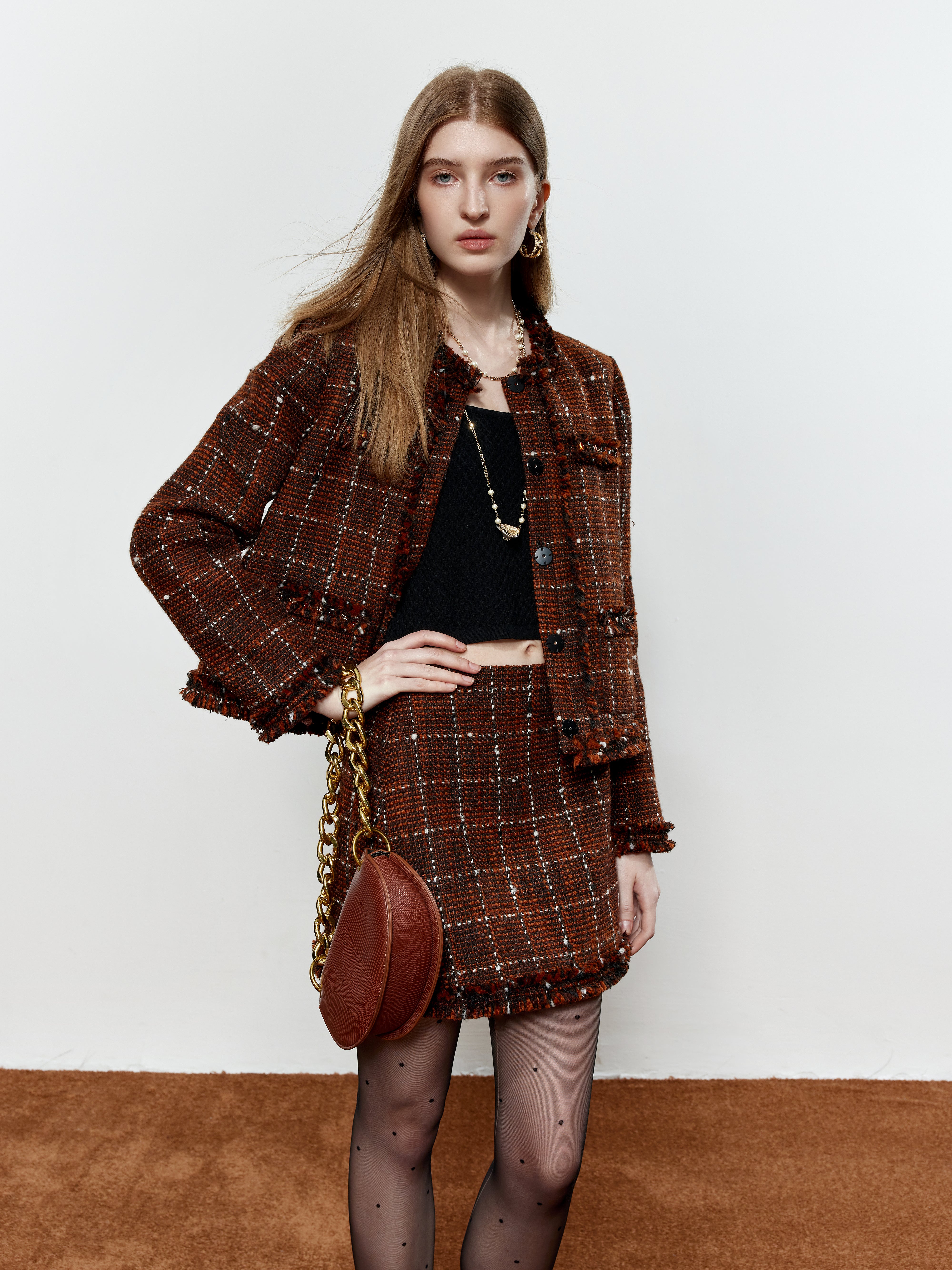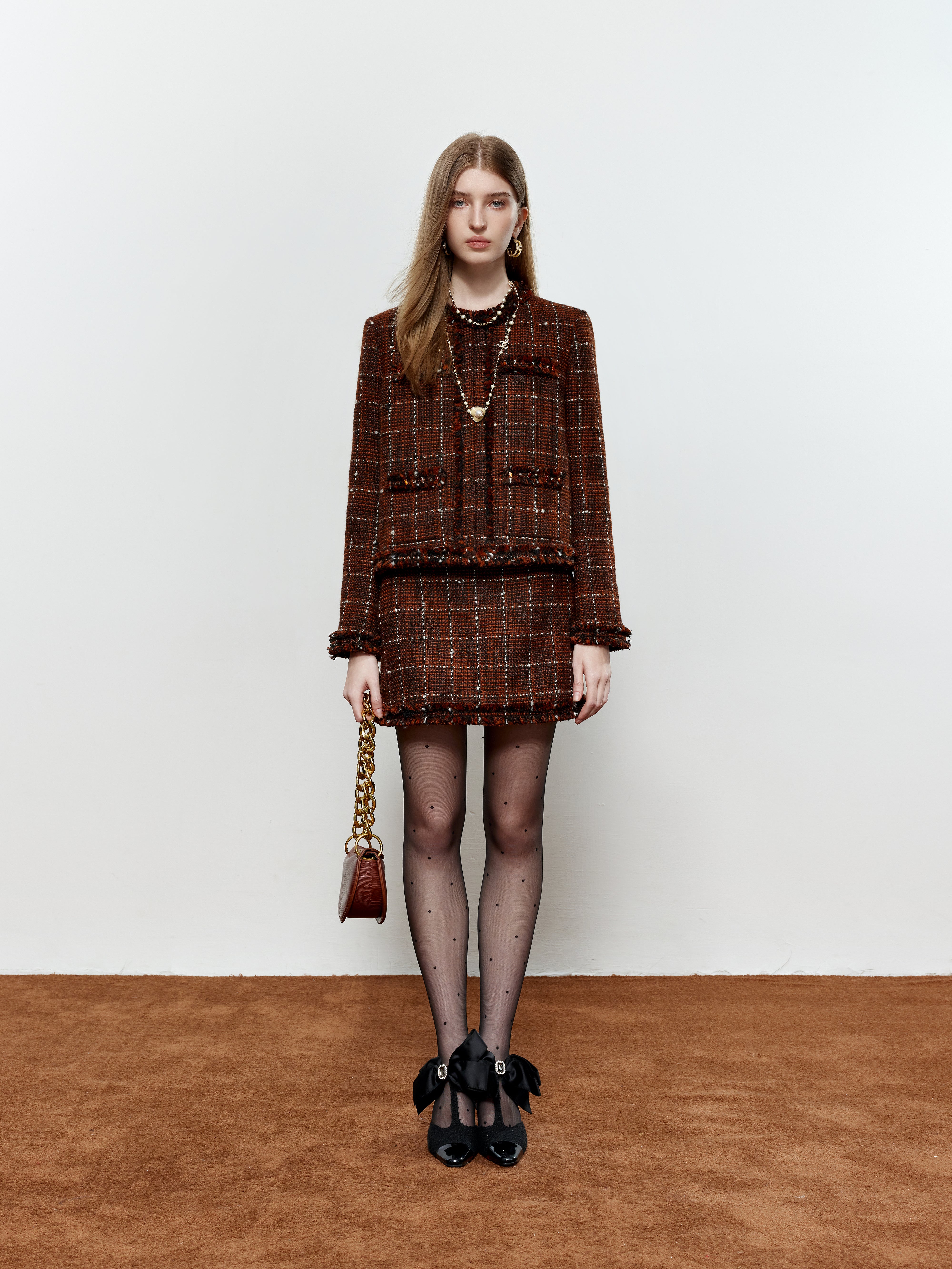 ROCHA ROMA Frayed Tweed Down Jacket+Skirt