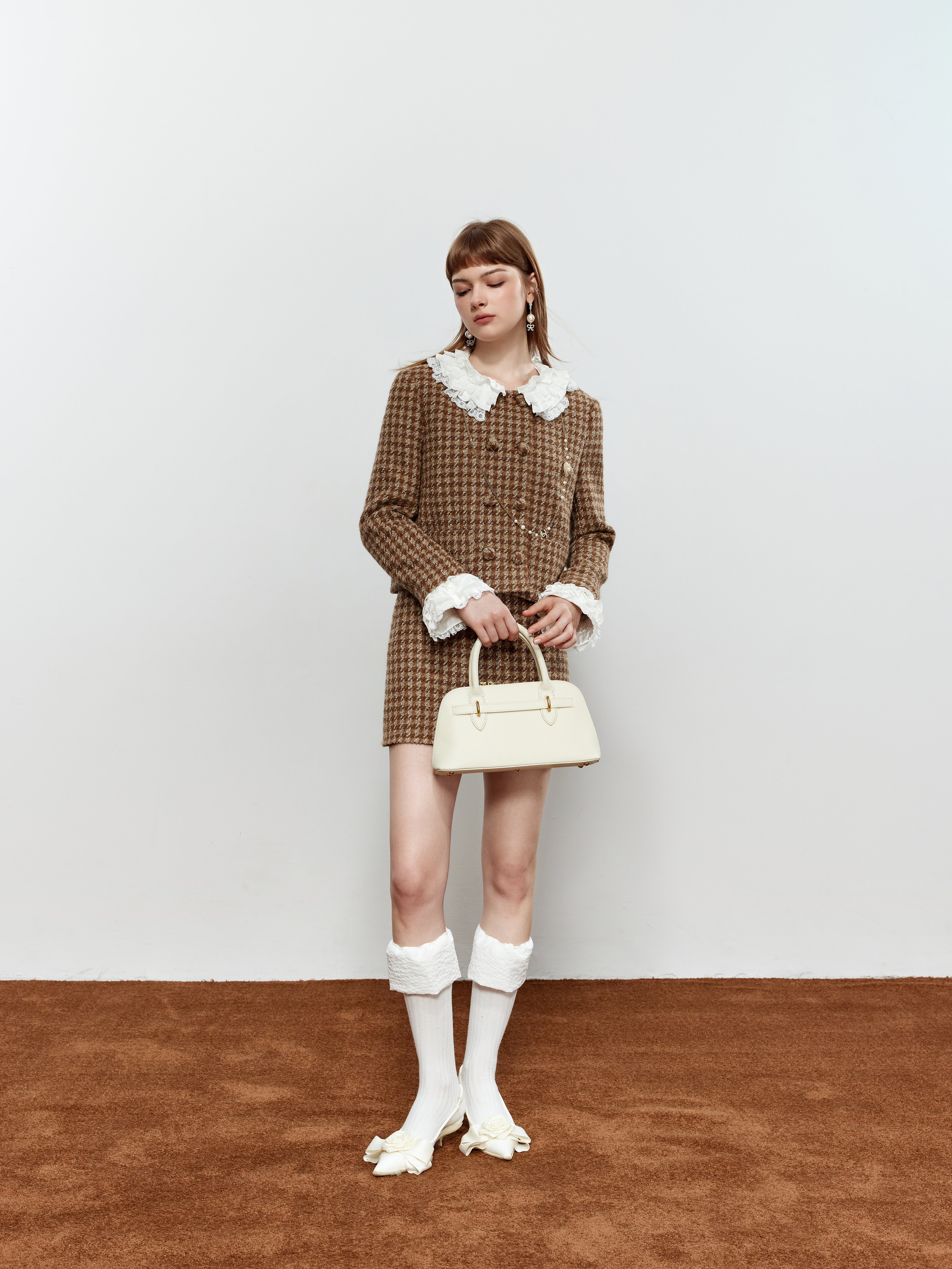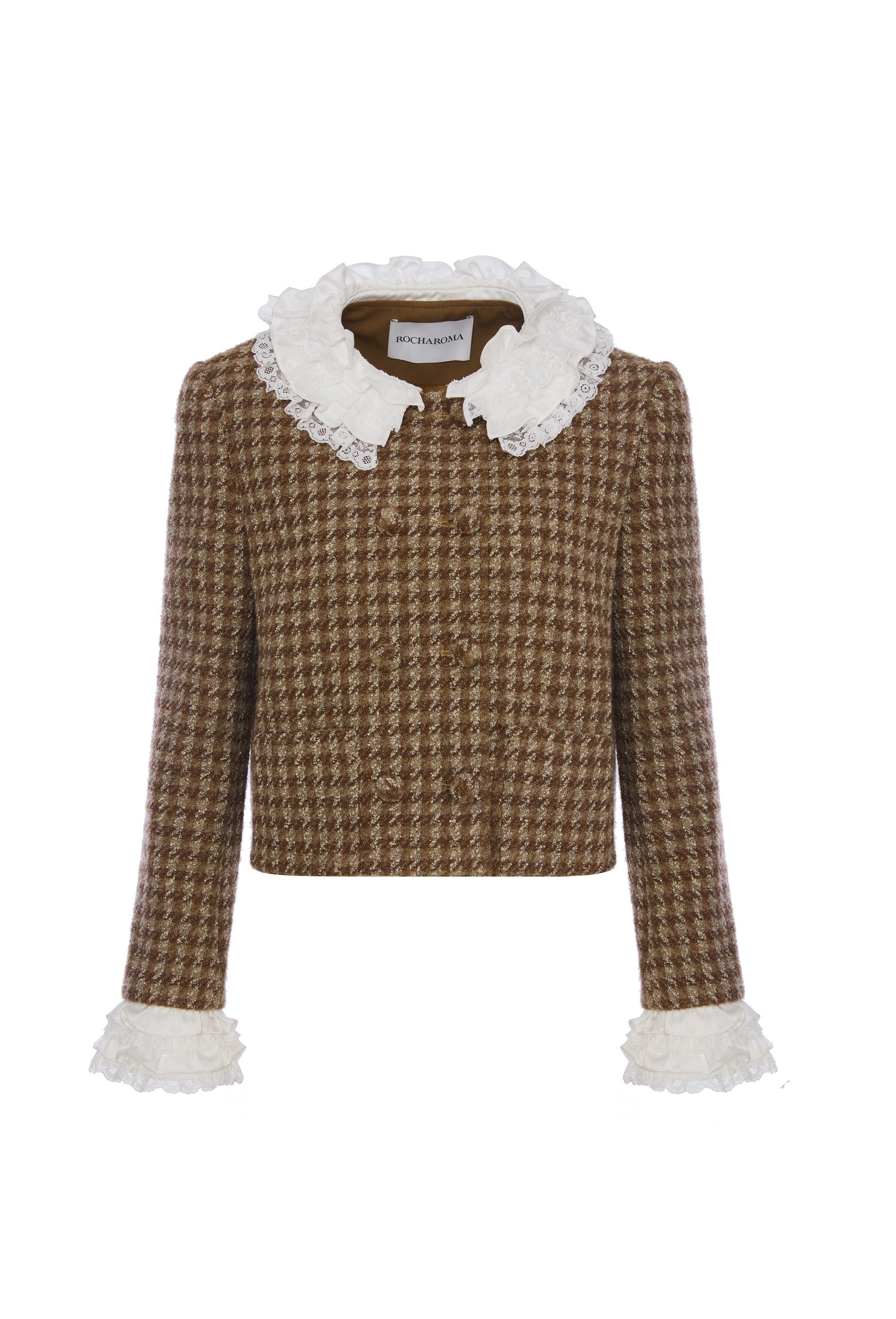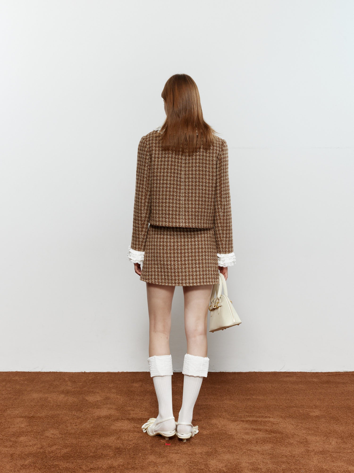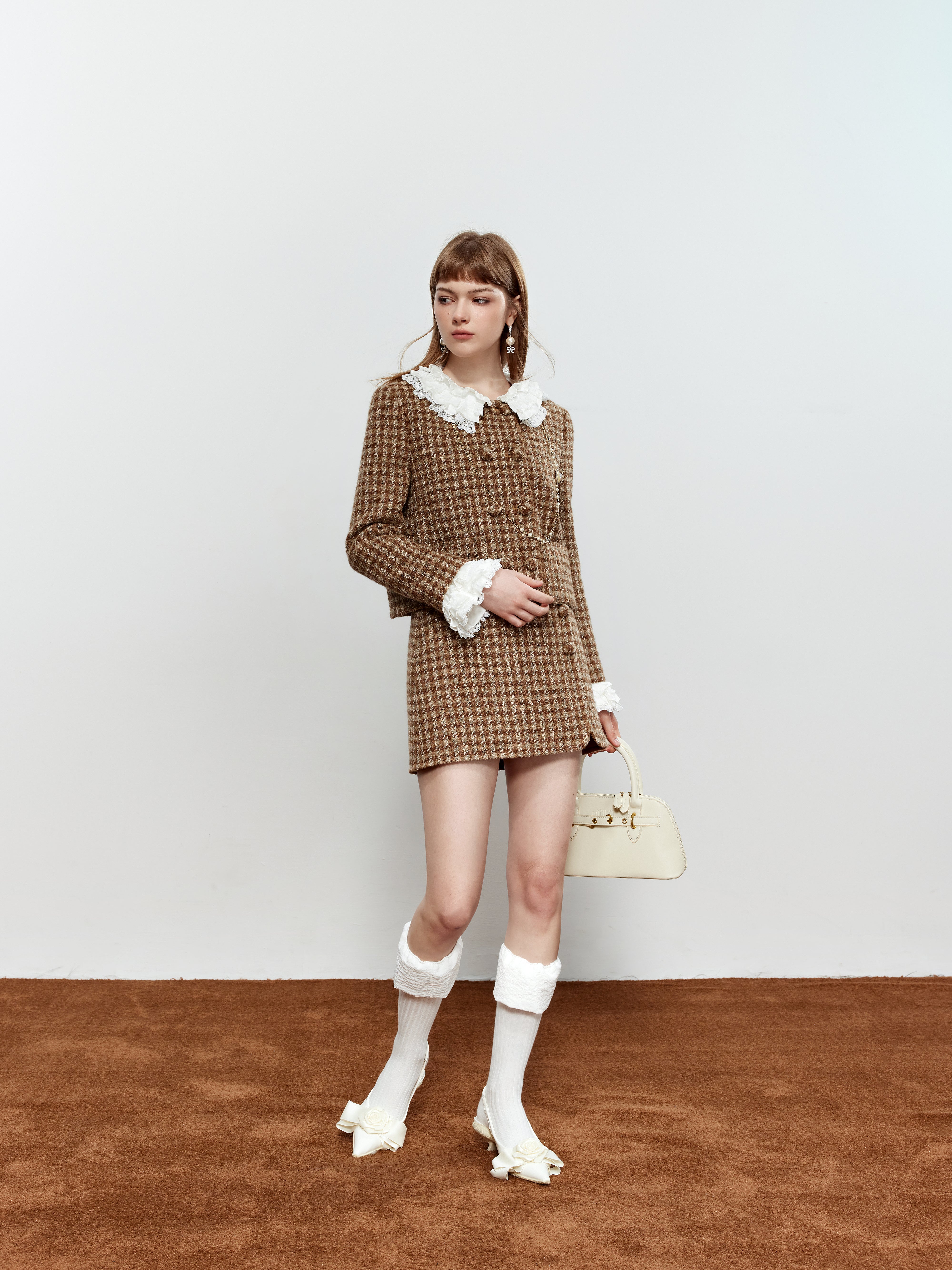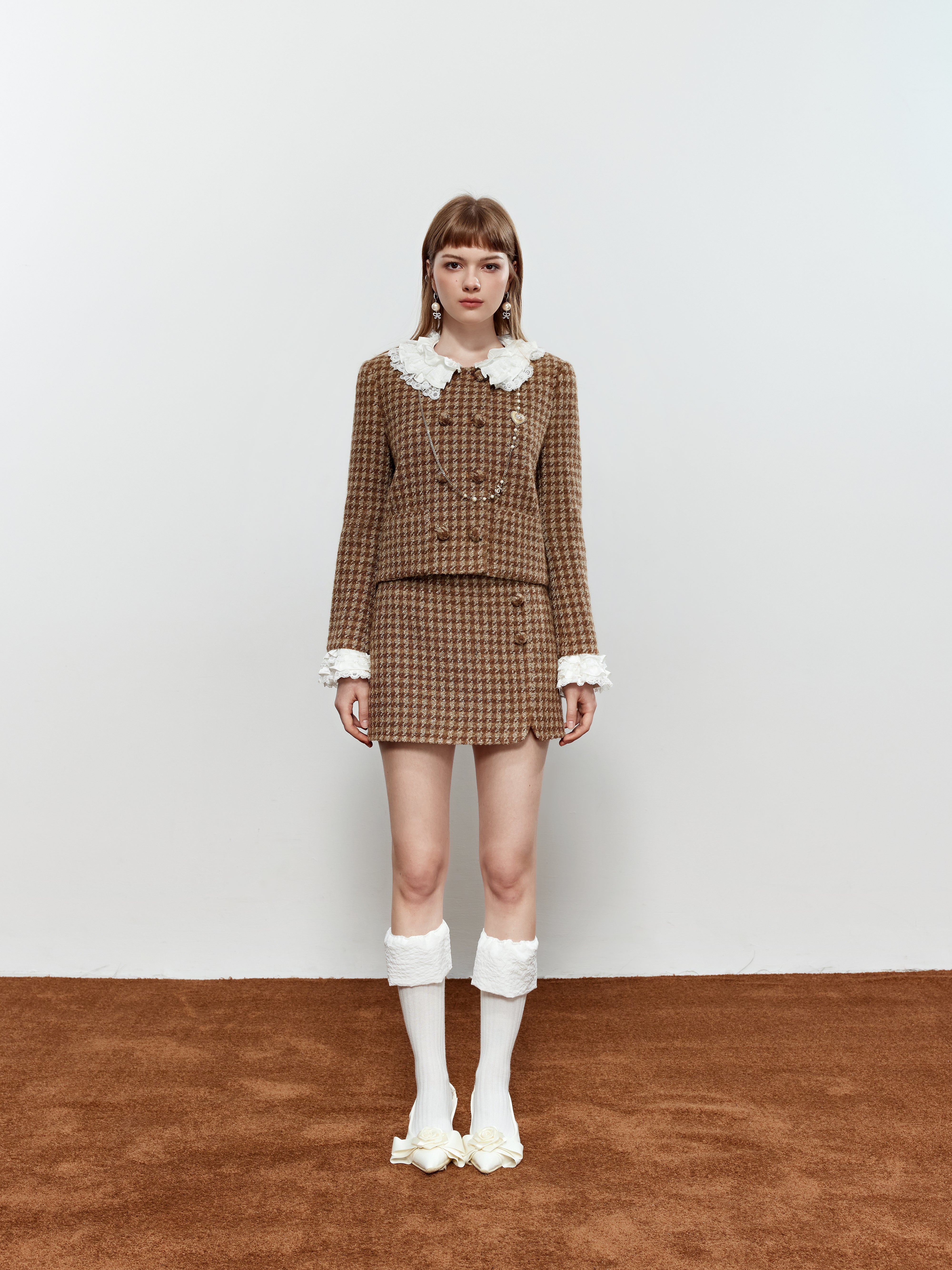 ROCHA ROMA Lace Collar Plaid Jacket+Skirt