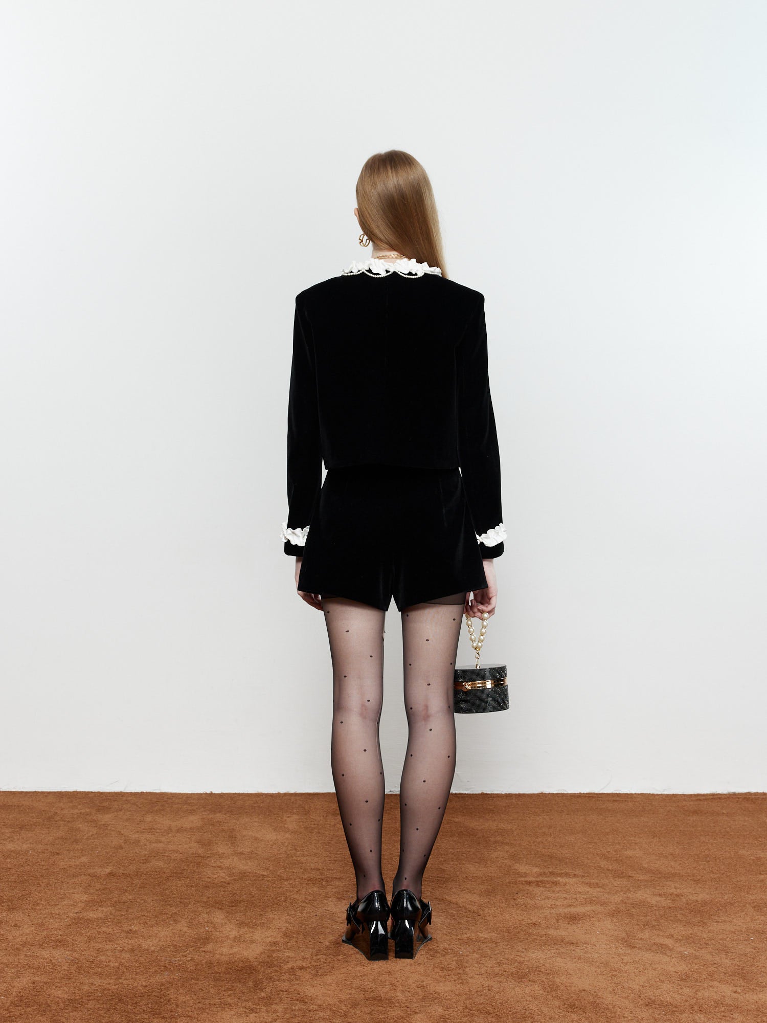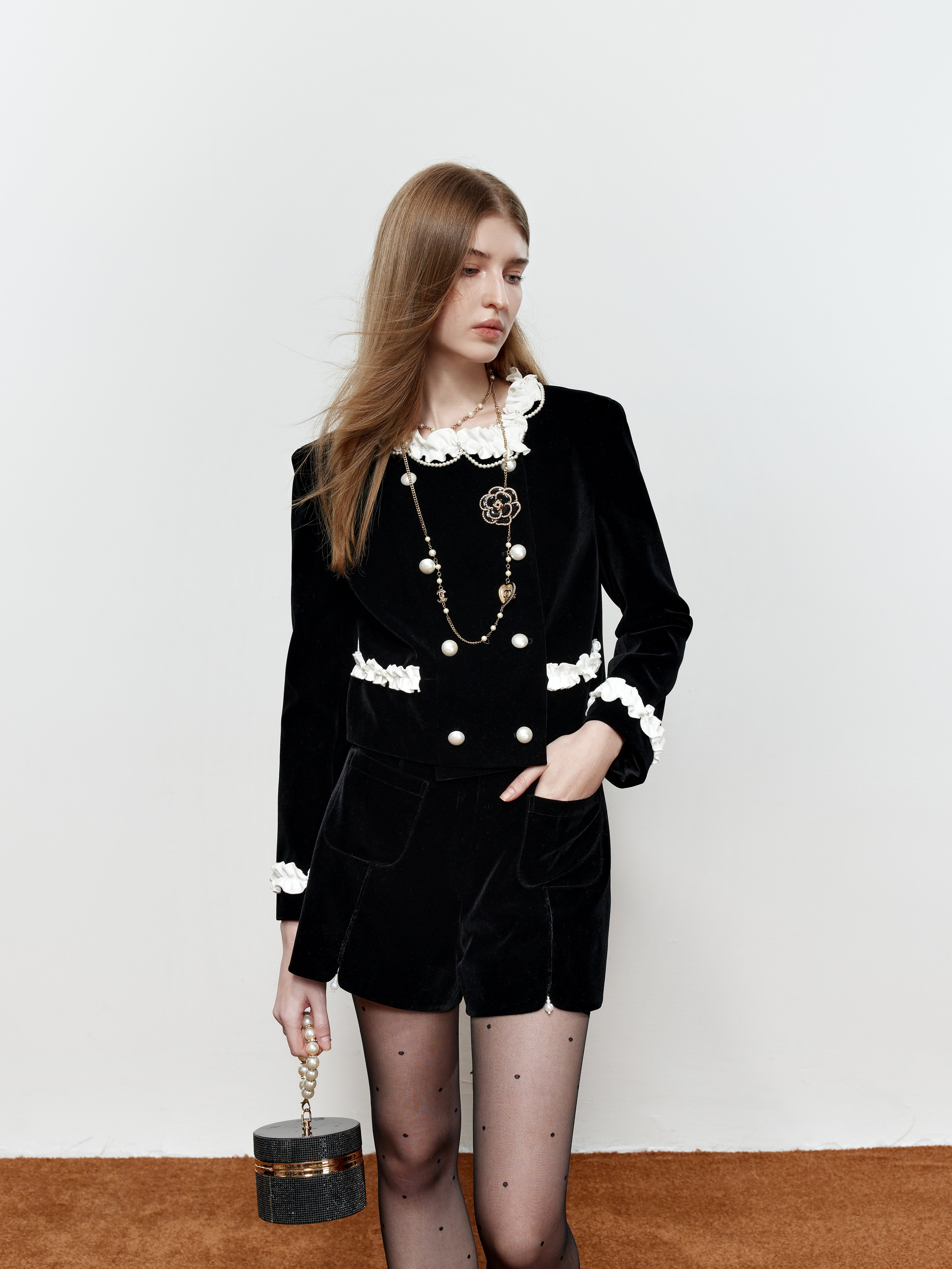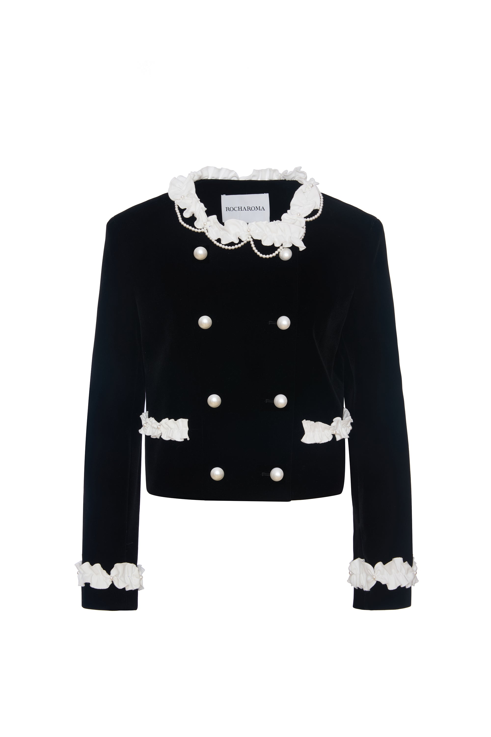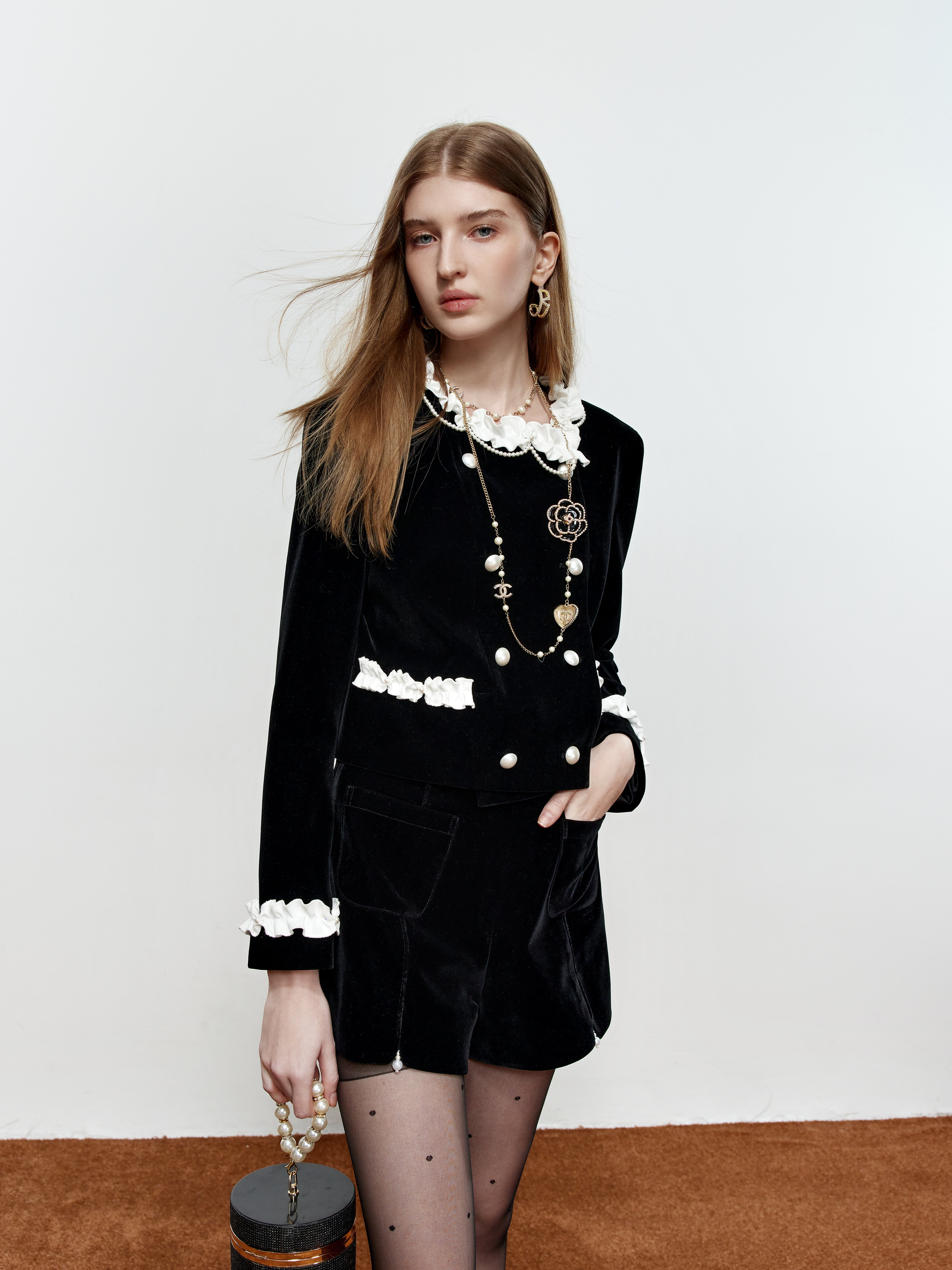 ROCHA ROMA Pearl Collar Velvet Jacket+Skirt