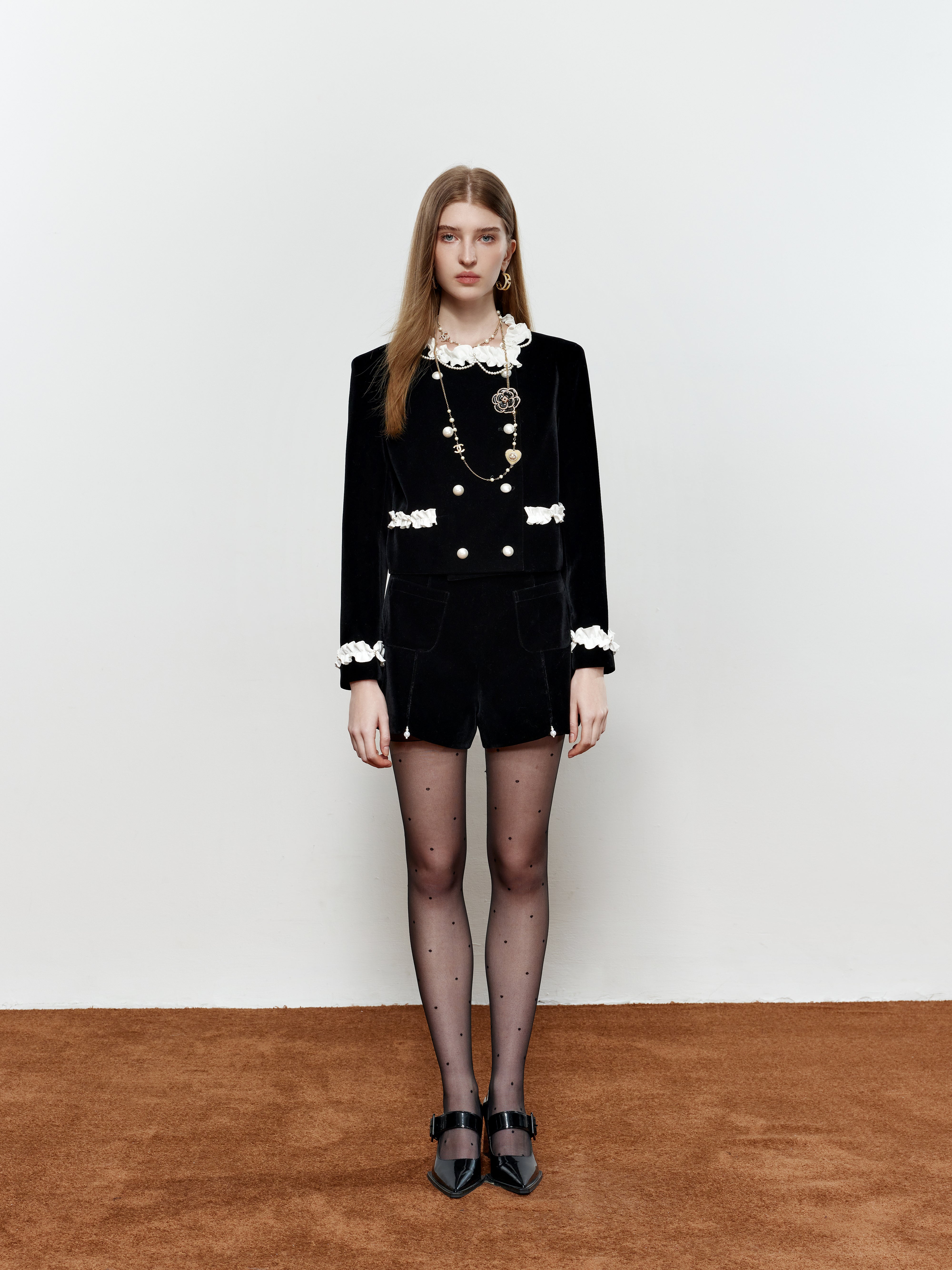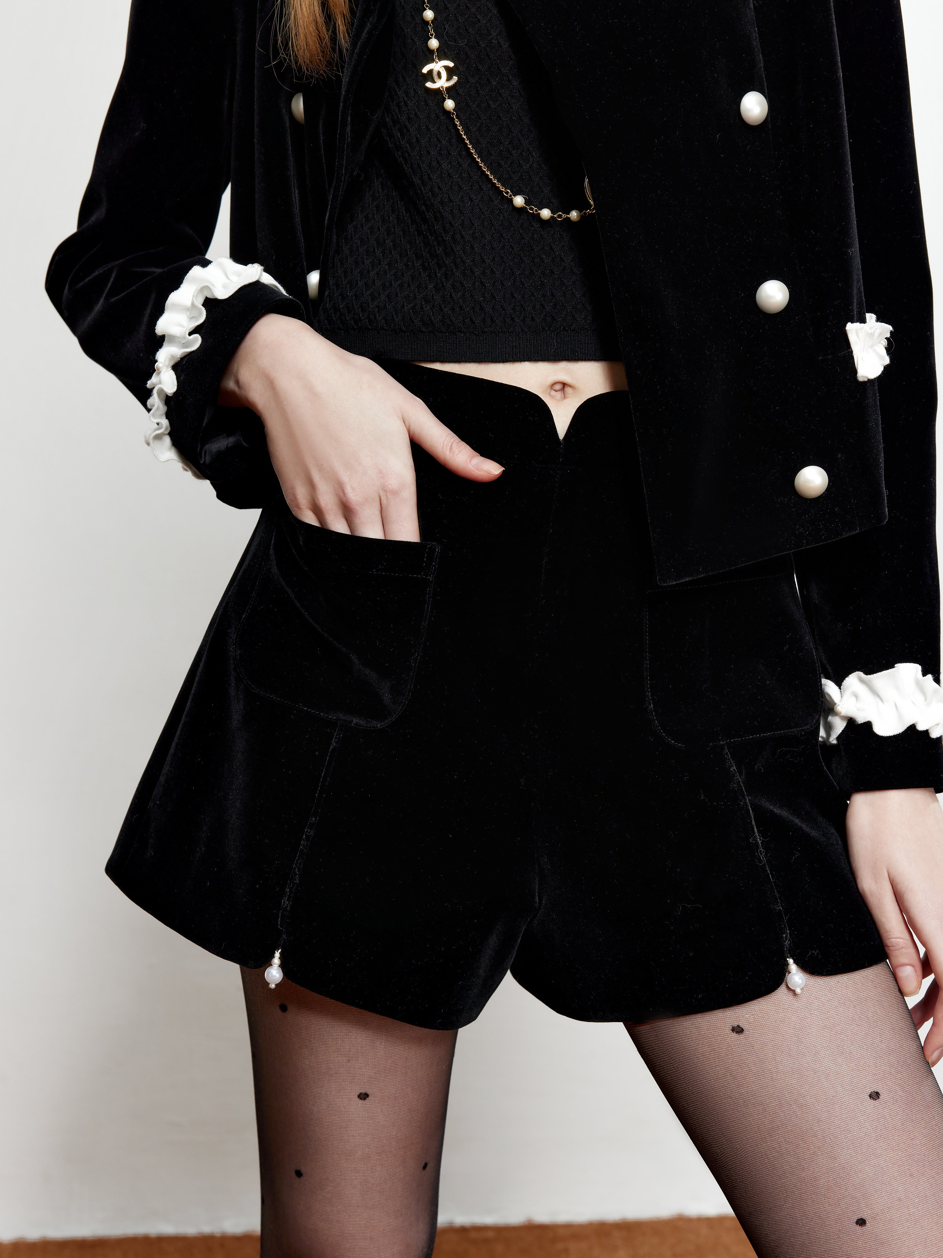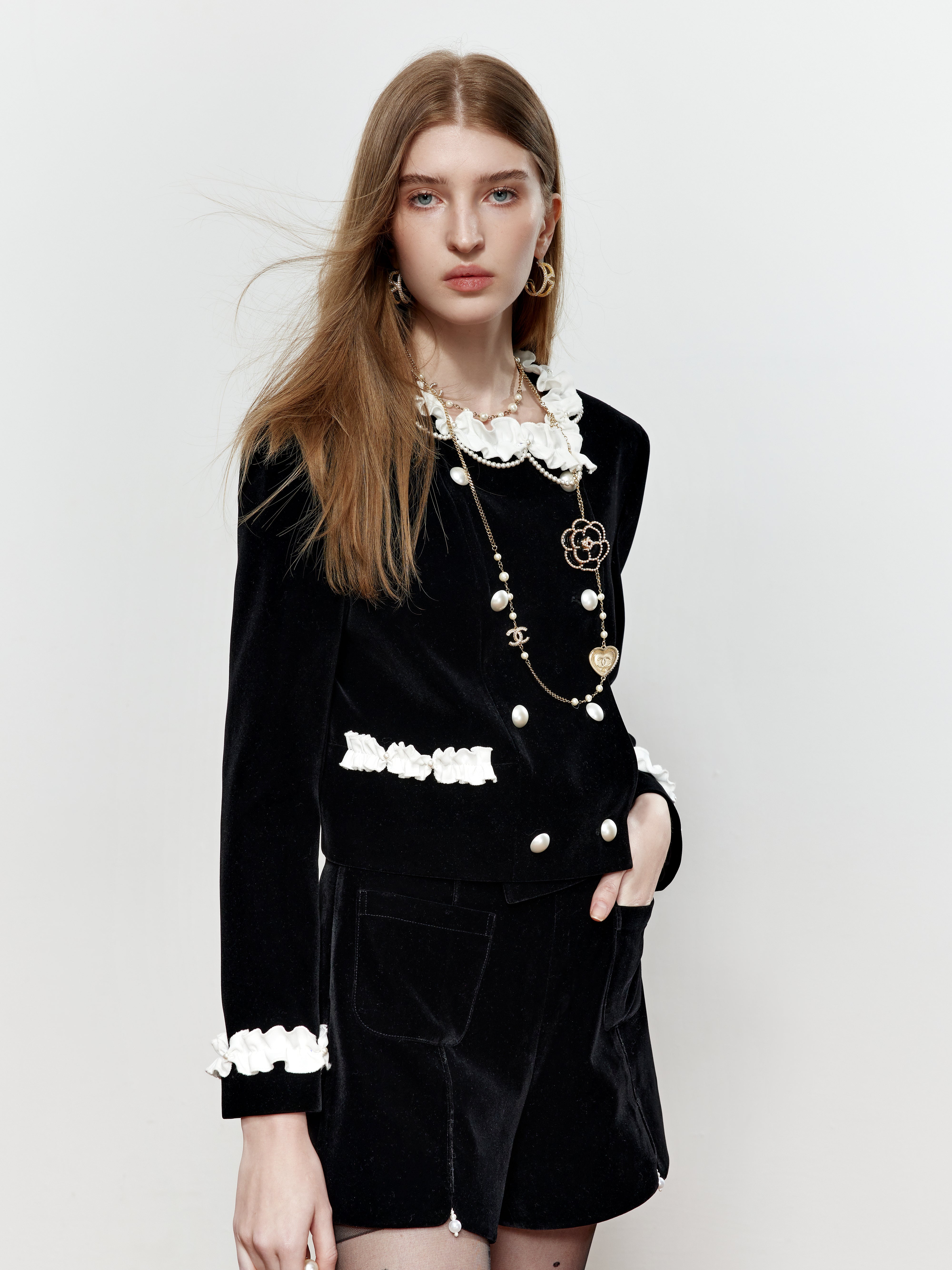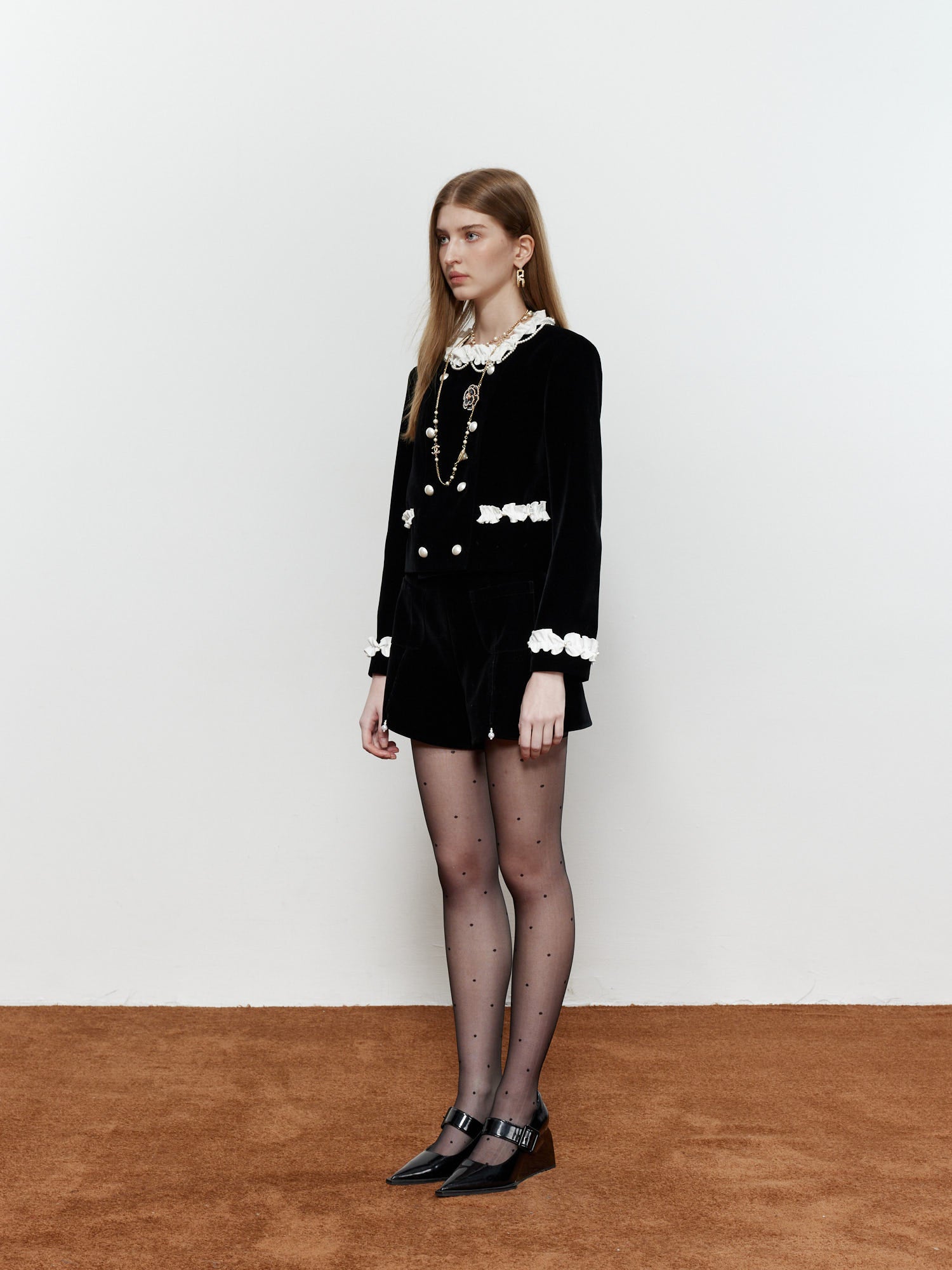 ROCHA ROMA Pearl Collar Velvet Jacket+Skirt