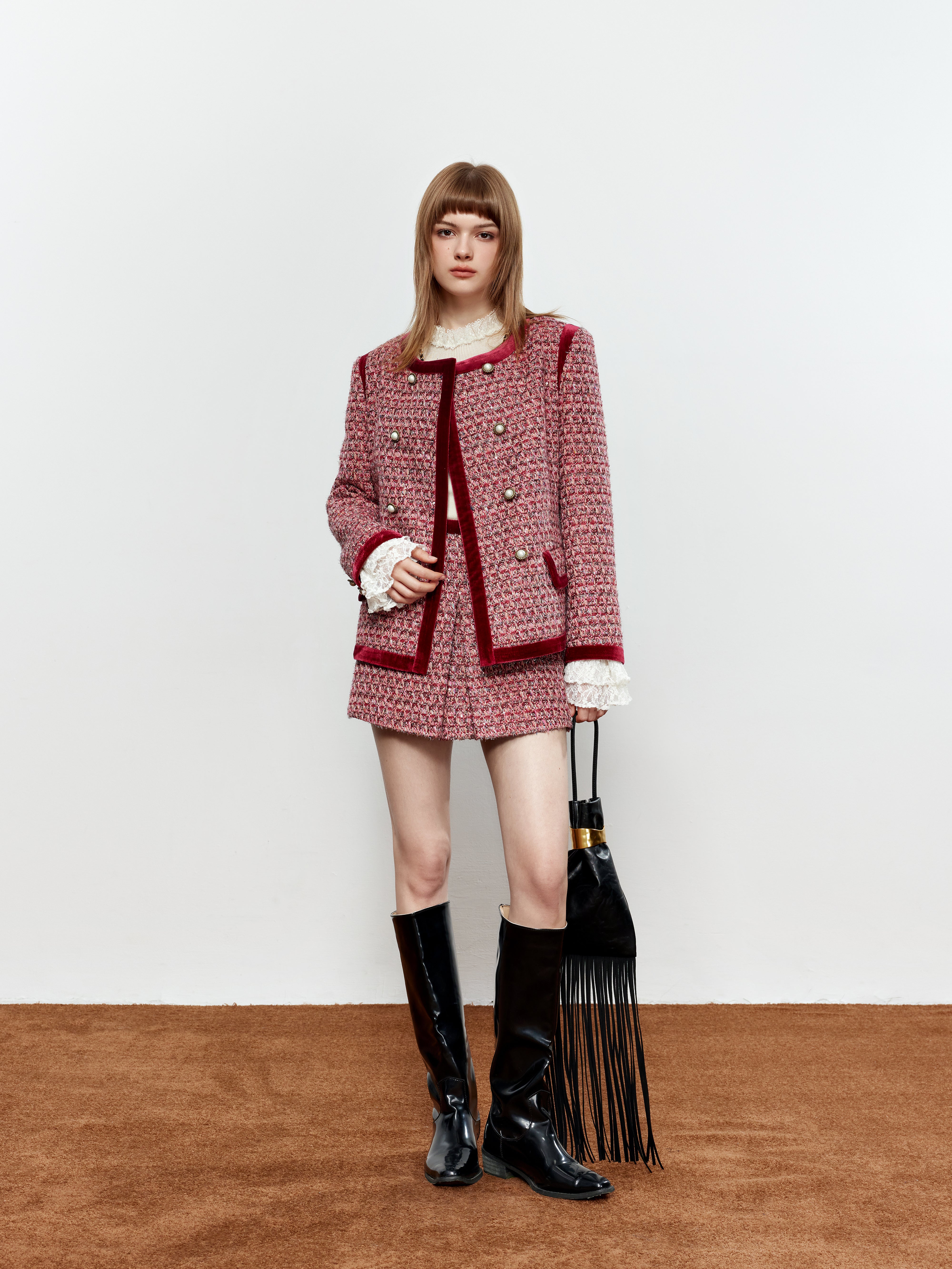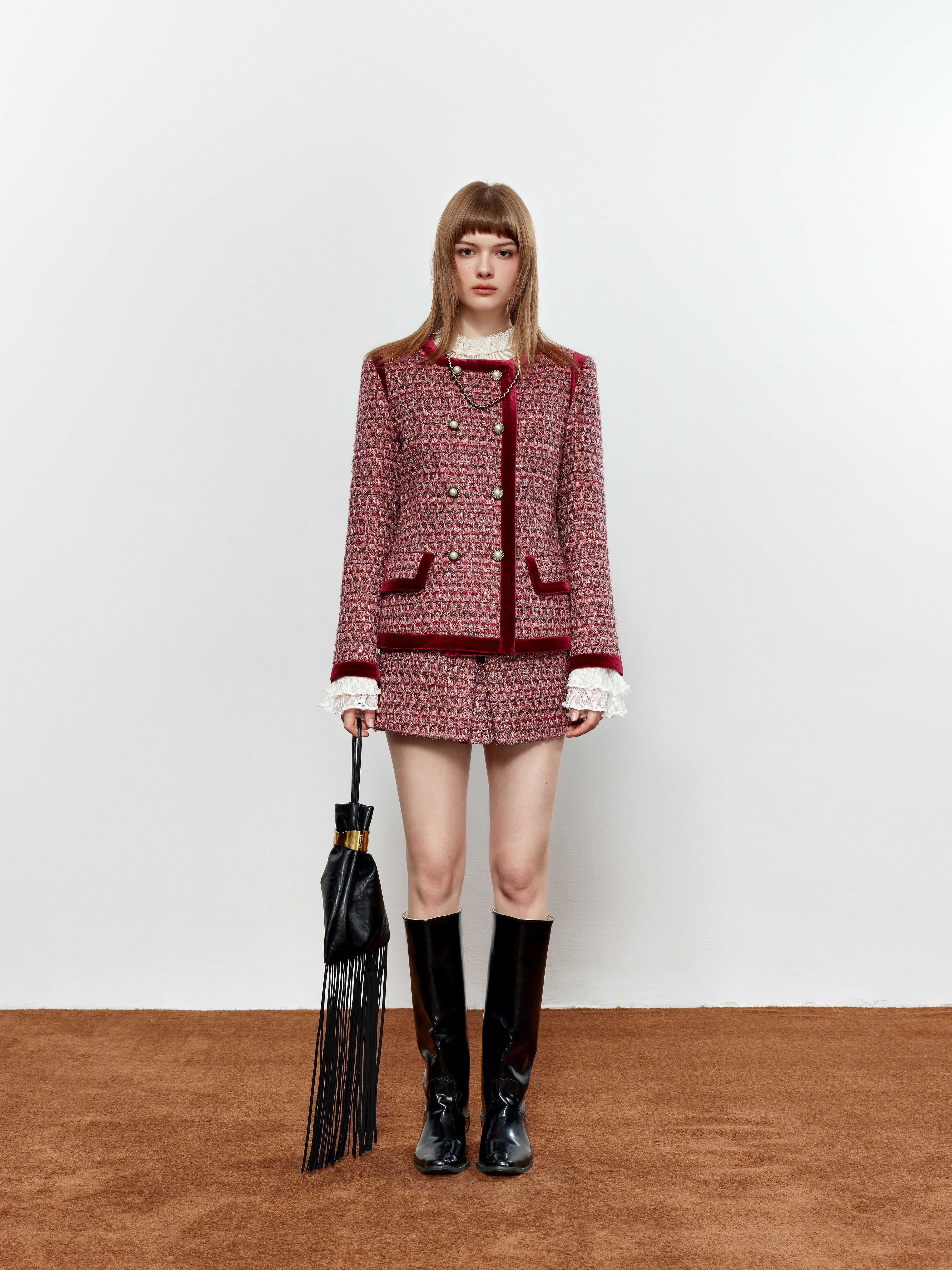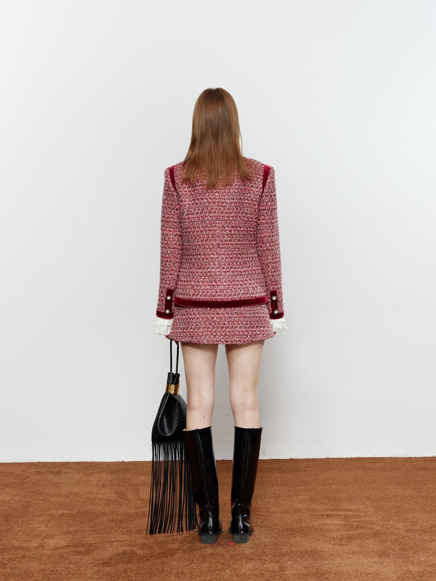 ROCHA ROMA Red Velvet Panel Jacket+Skirt