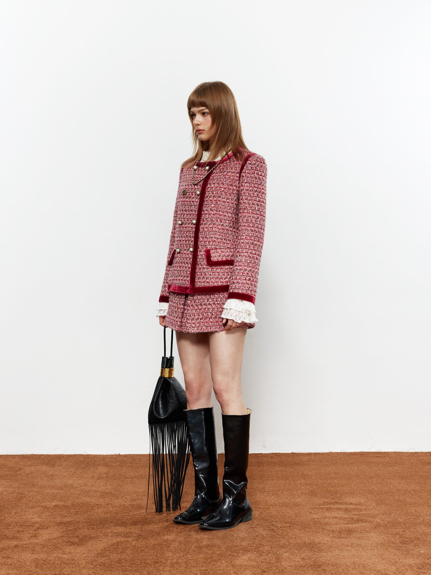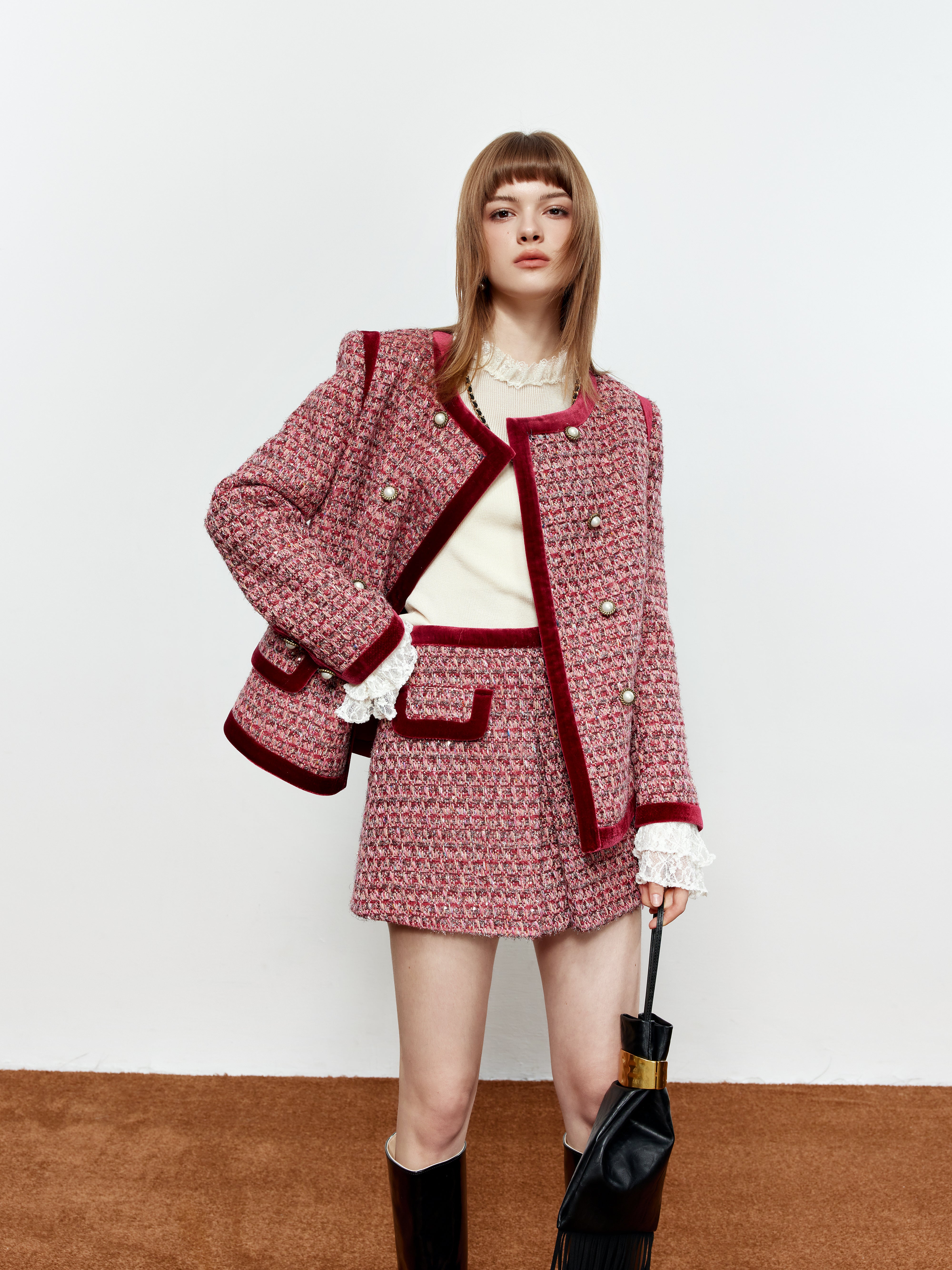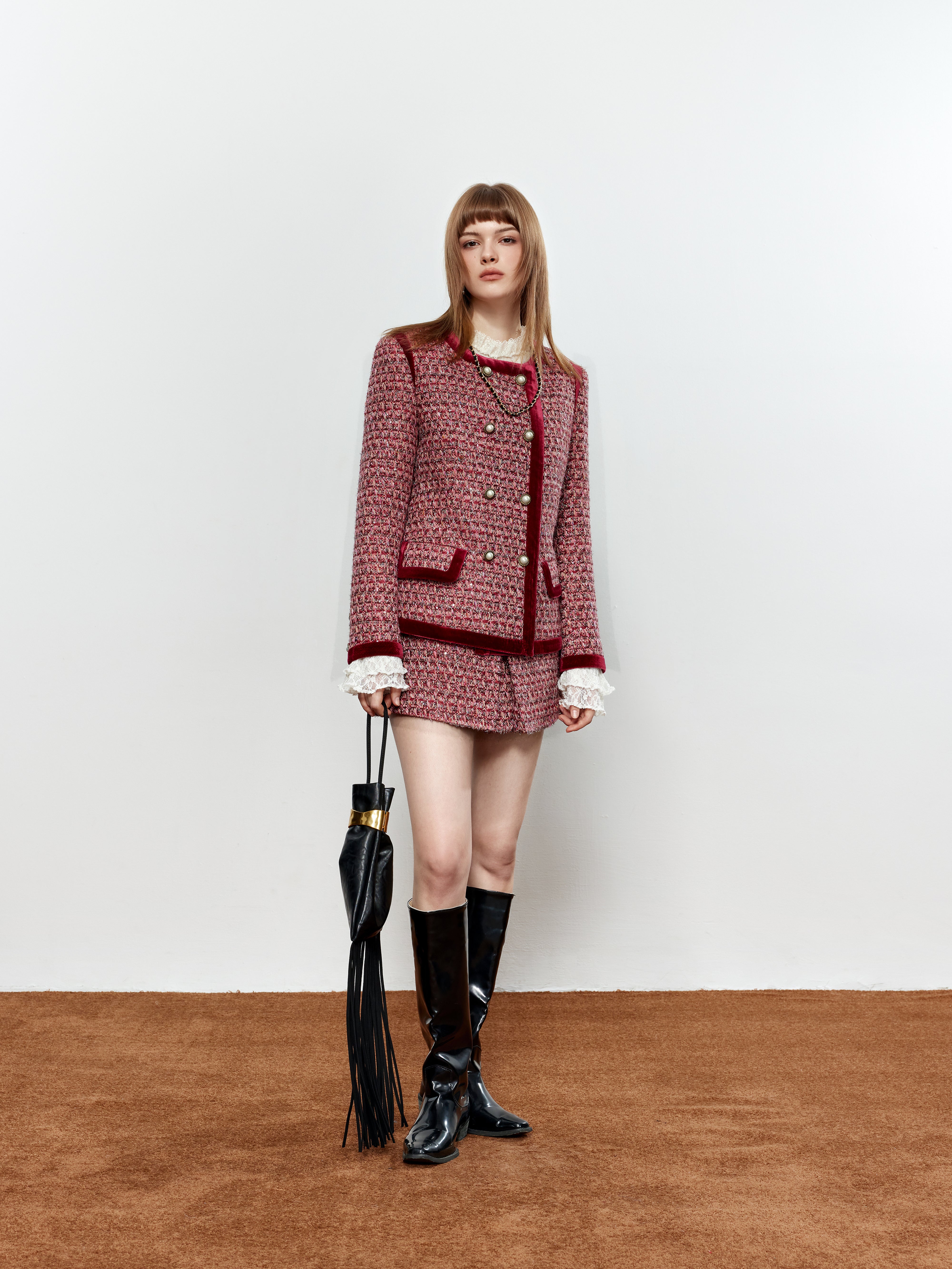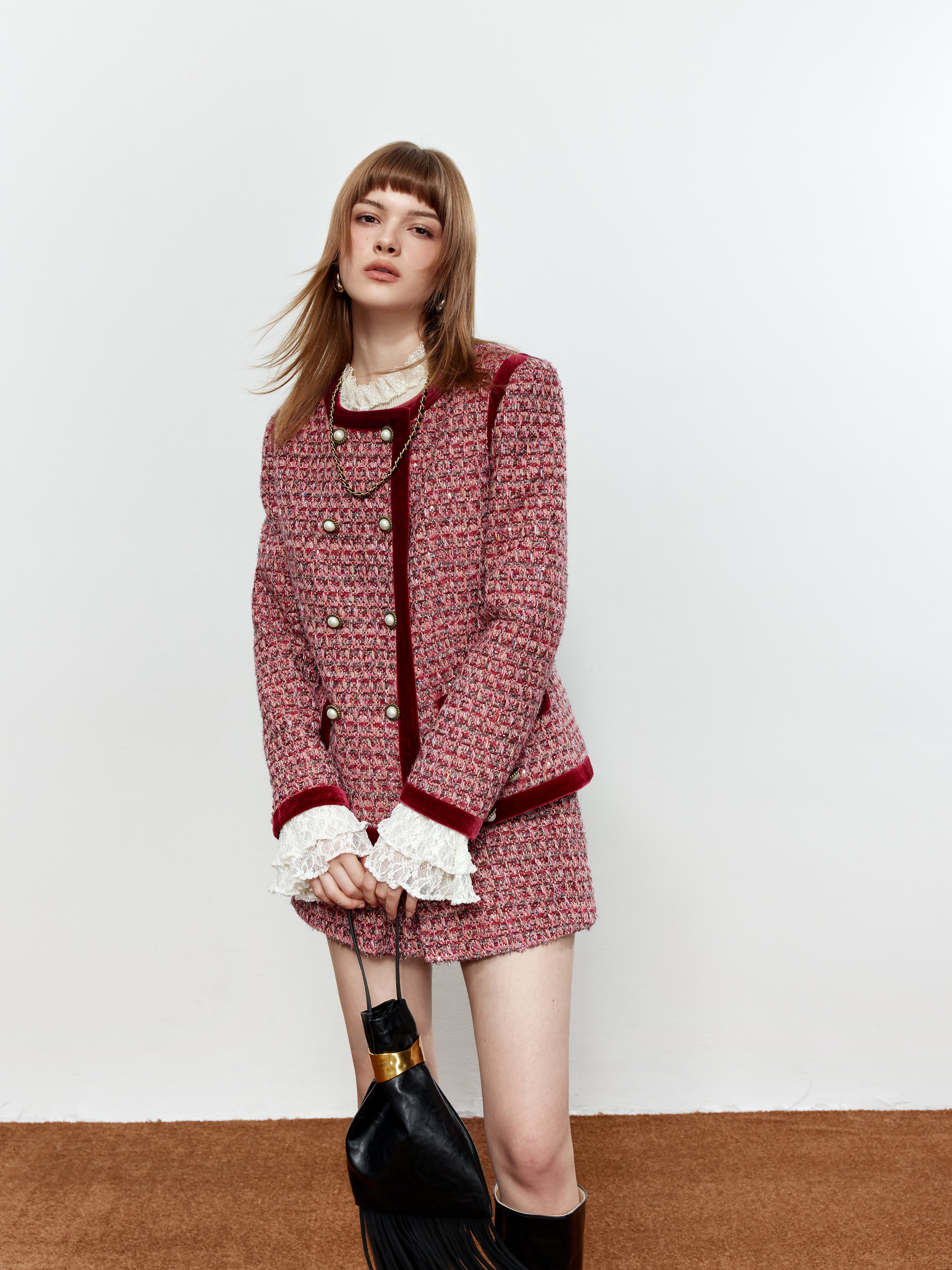 ROCHA ROMA Red Velvet Panel Jacket+Skirt