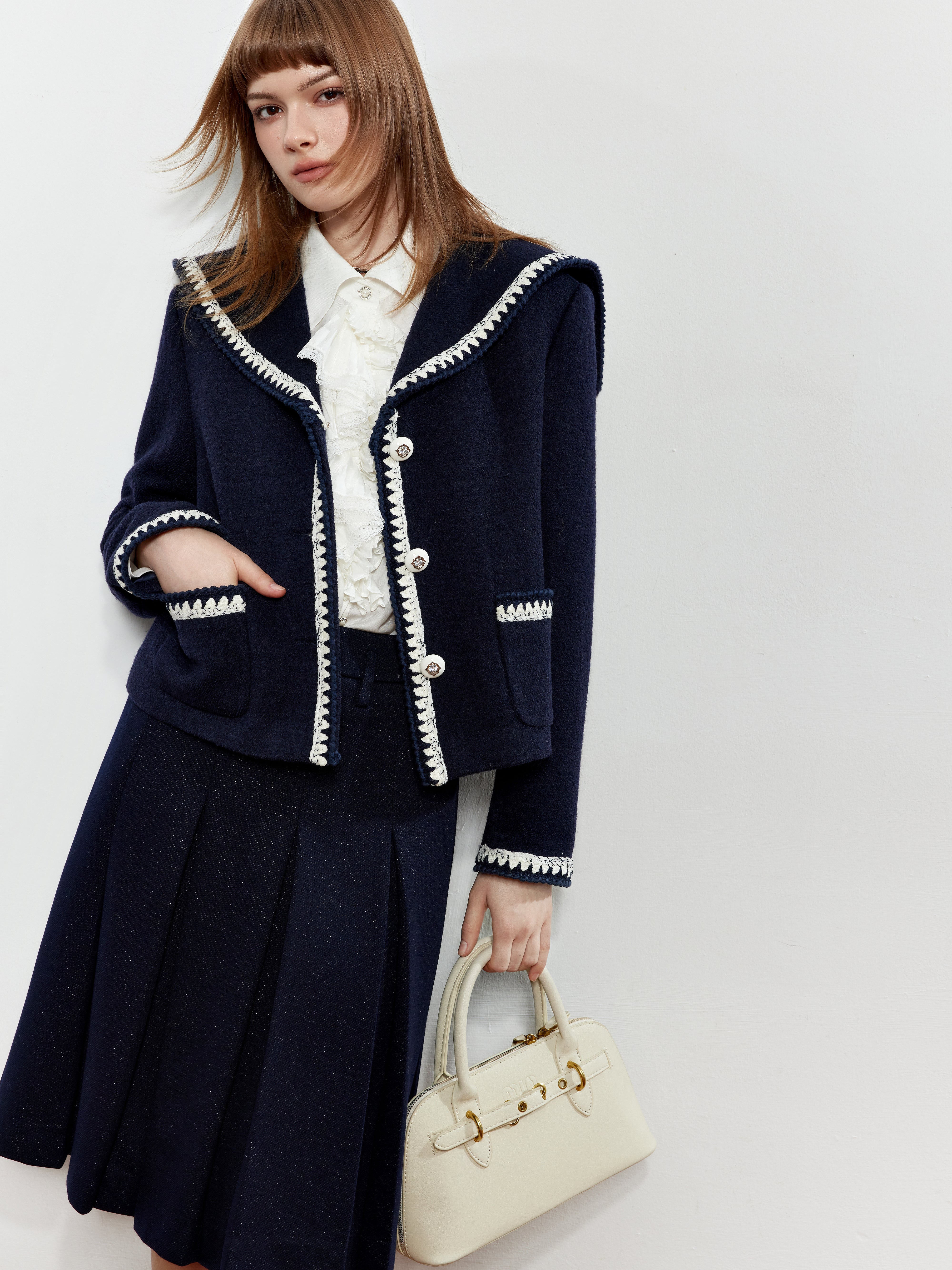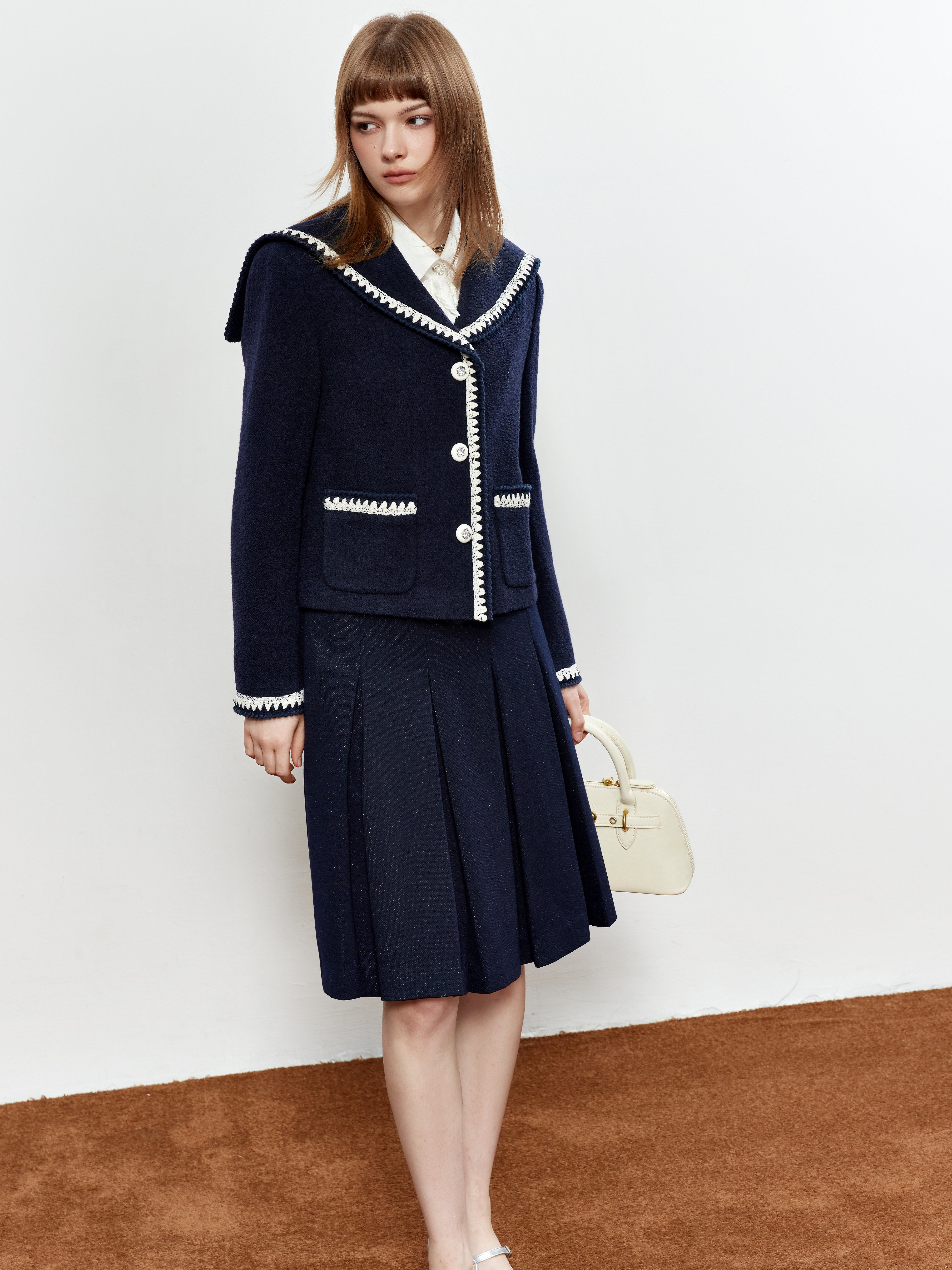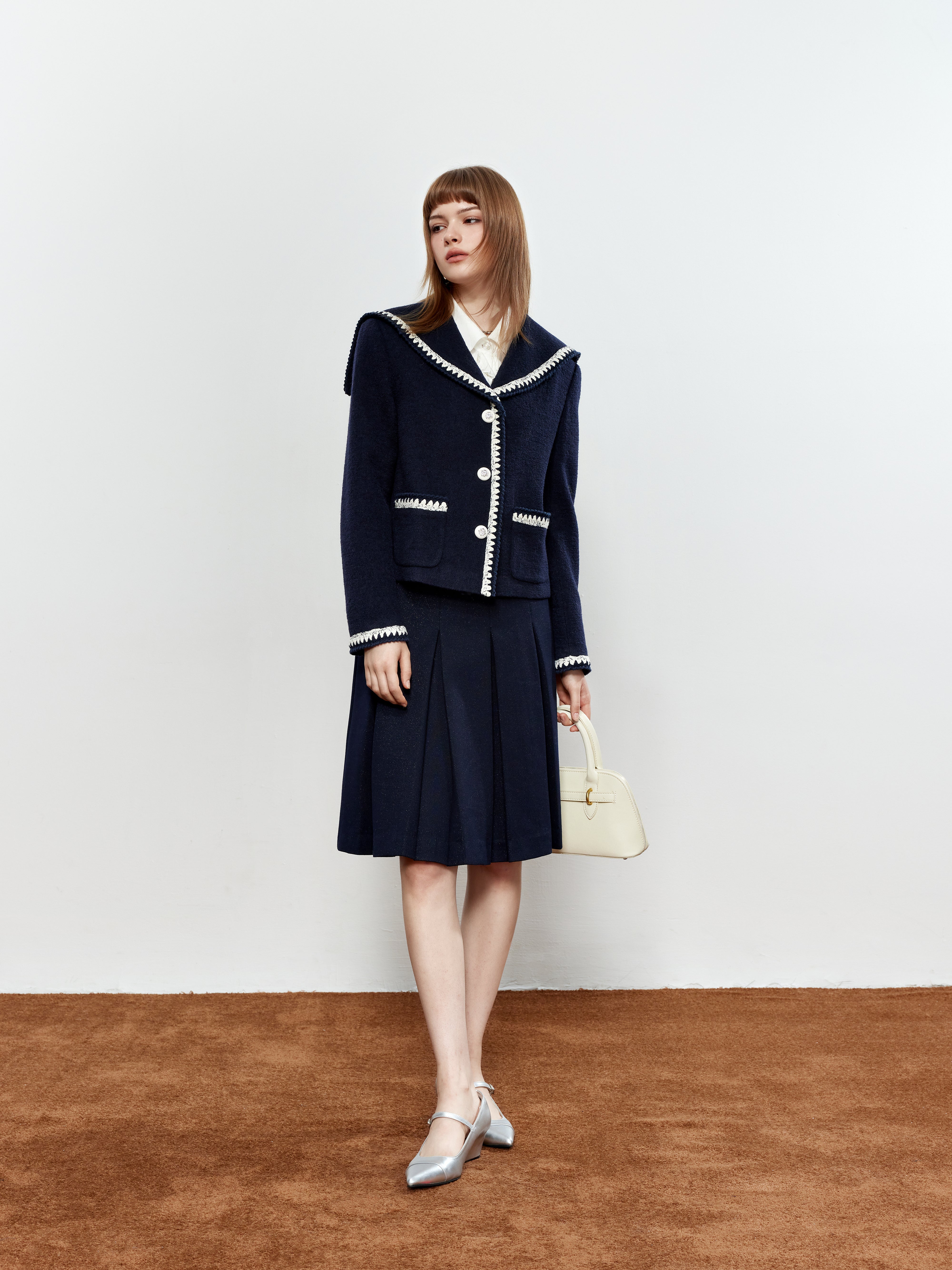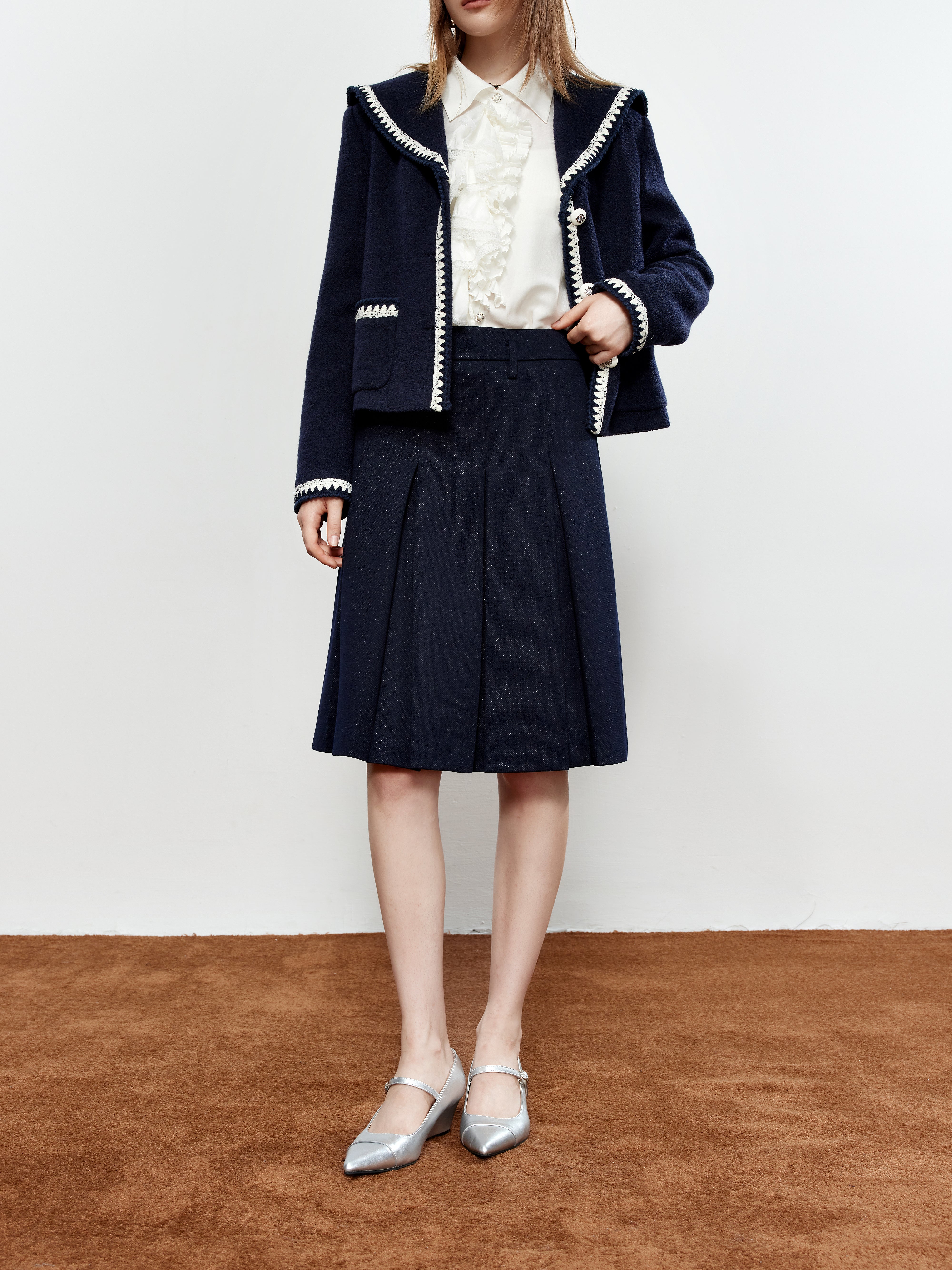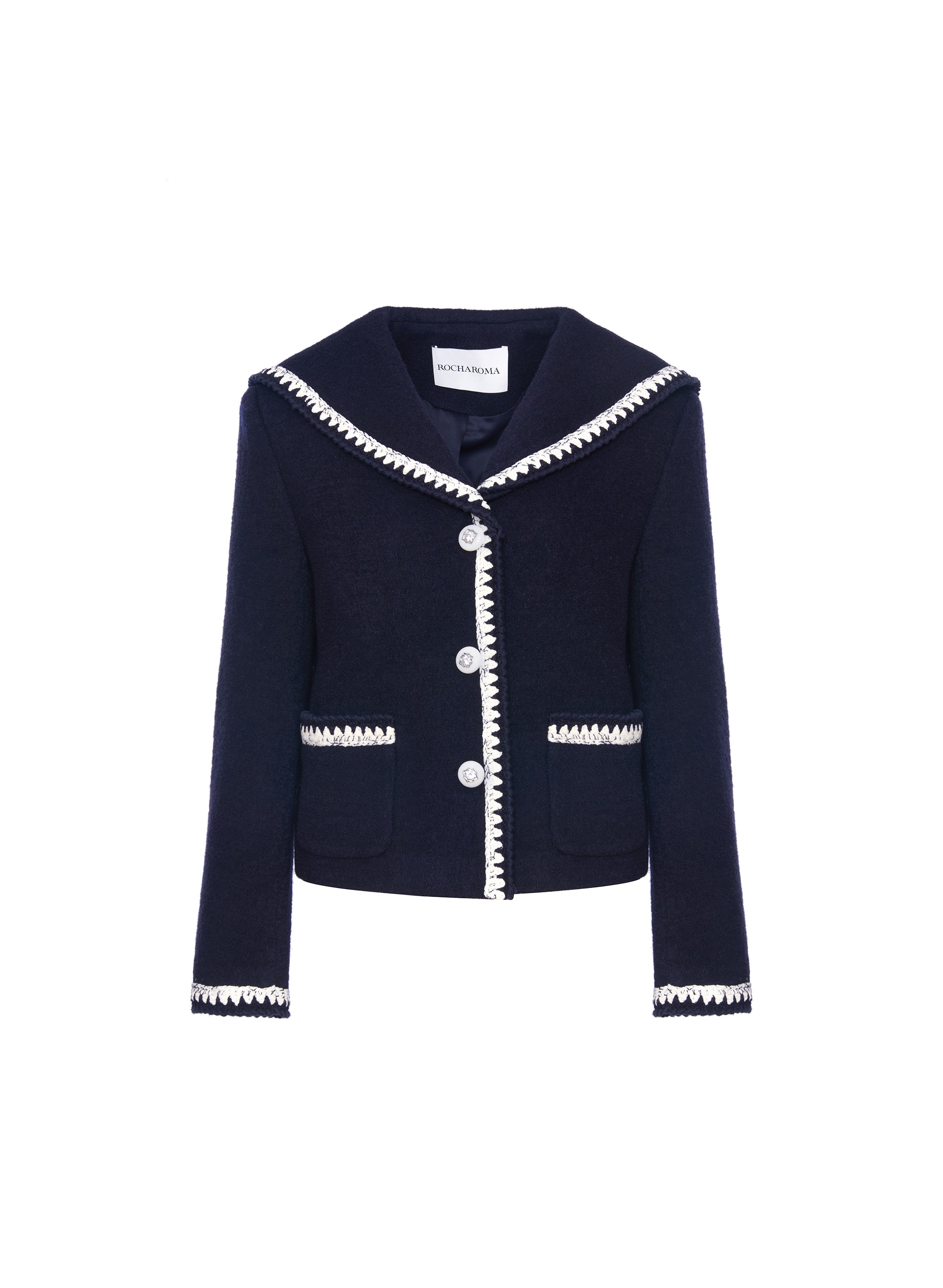 ROCHA ROMA Sailor Collar Lace Trim Jacket+Skirt