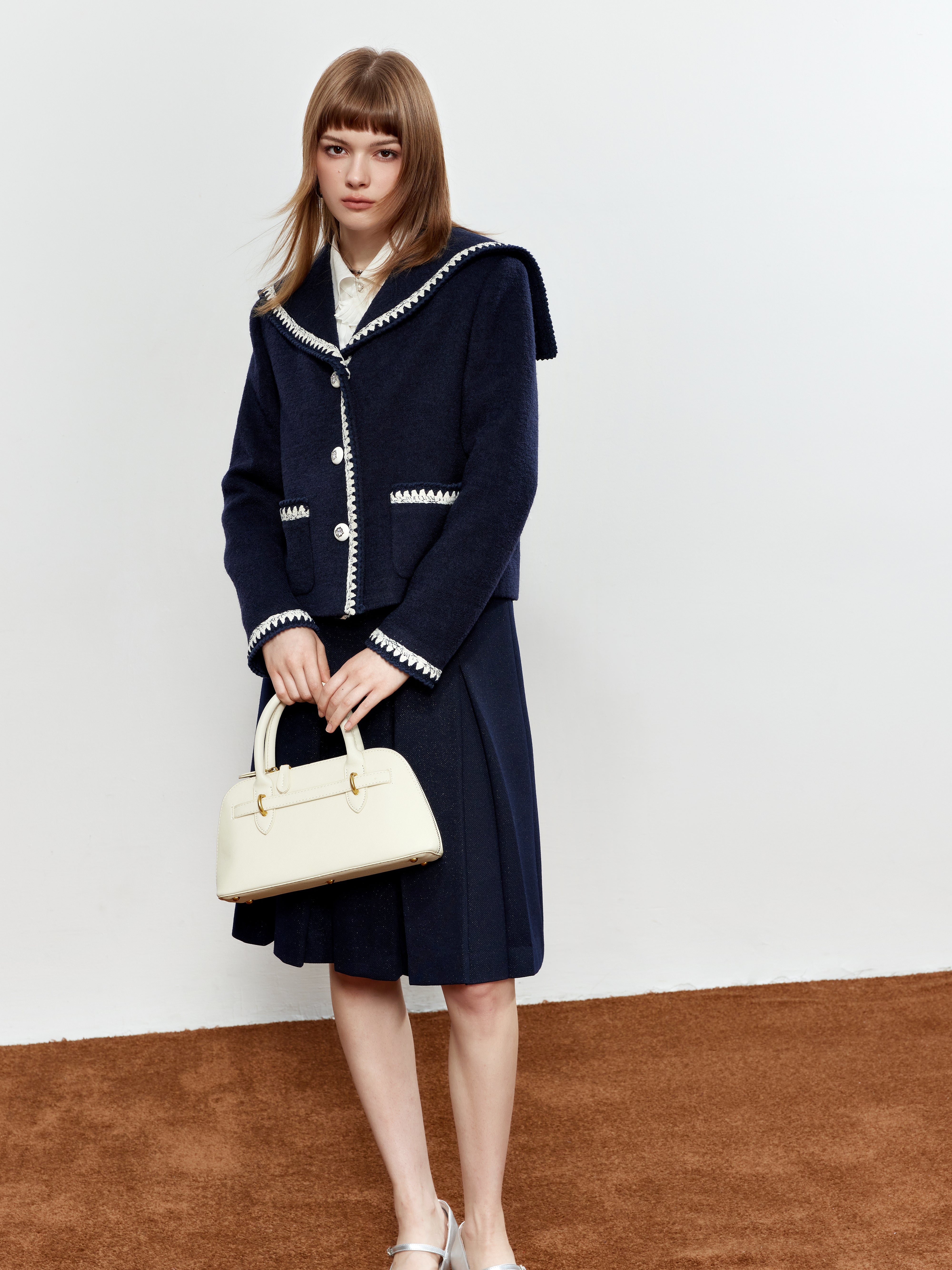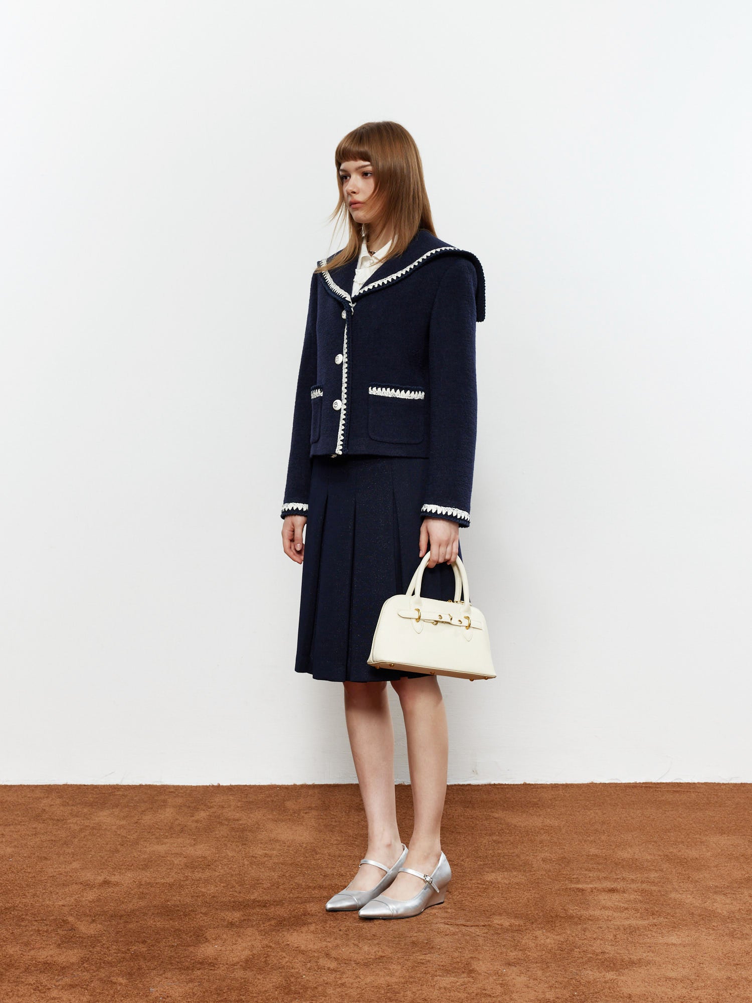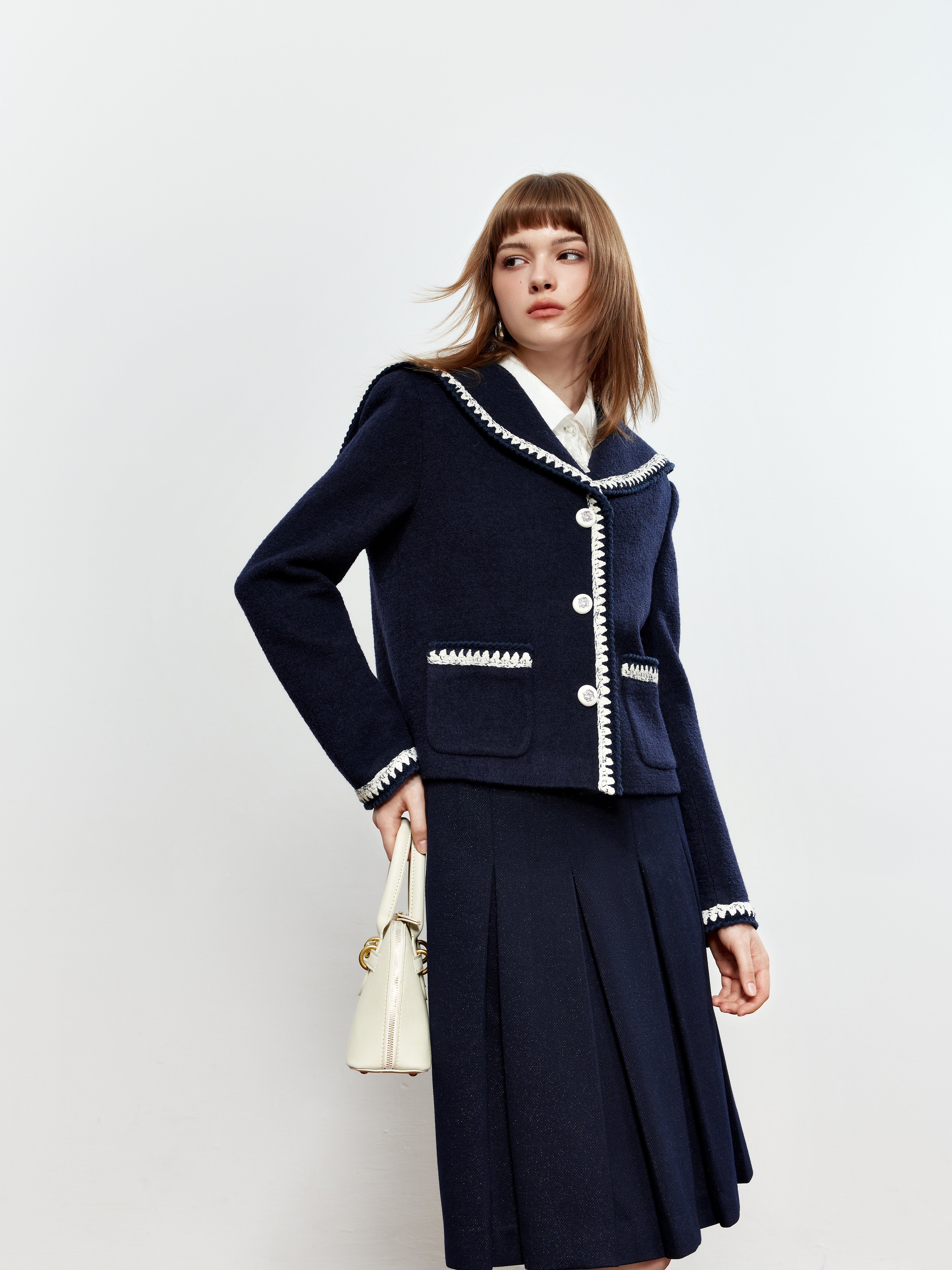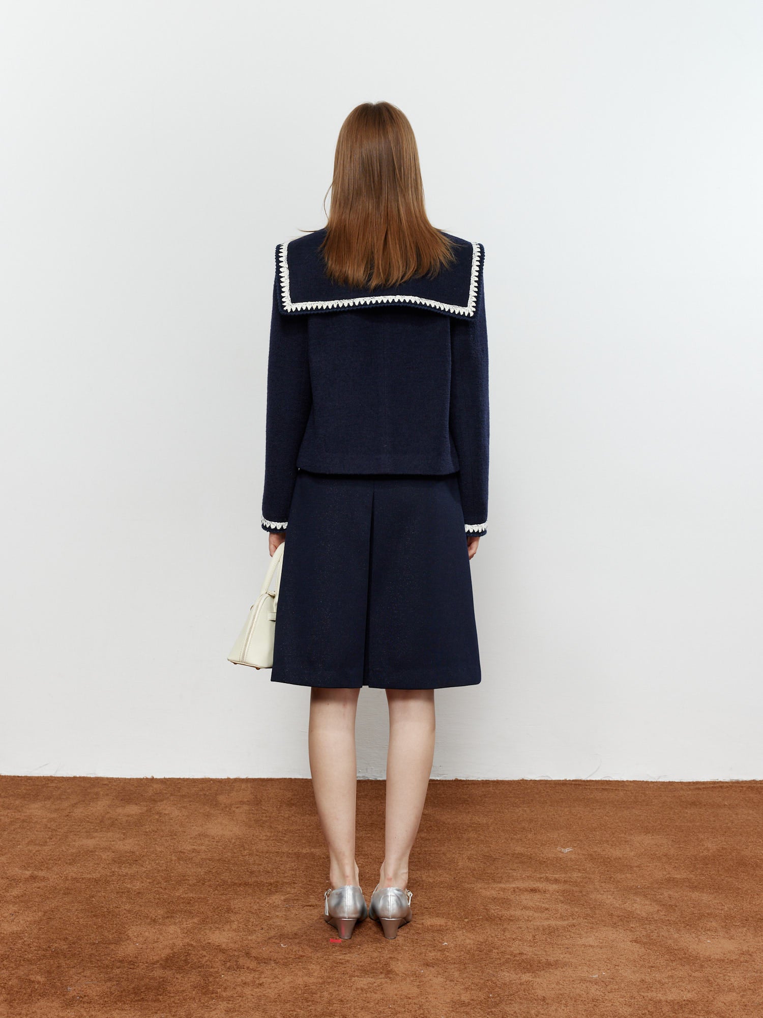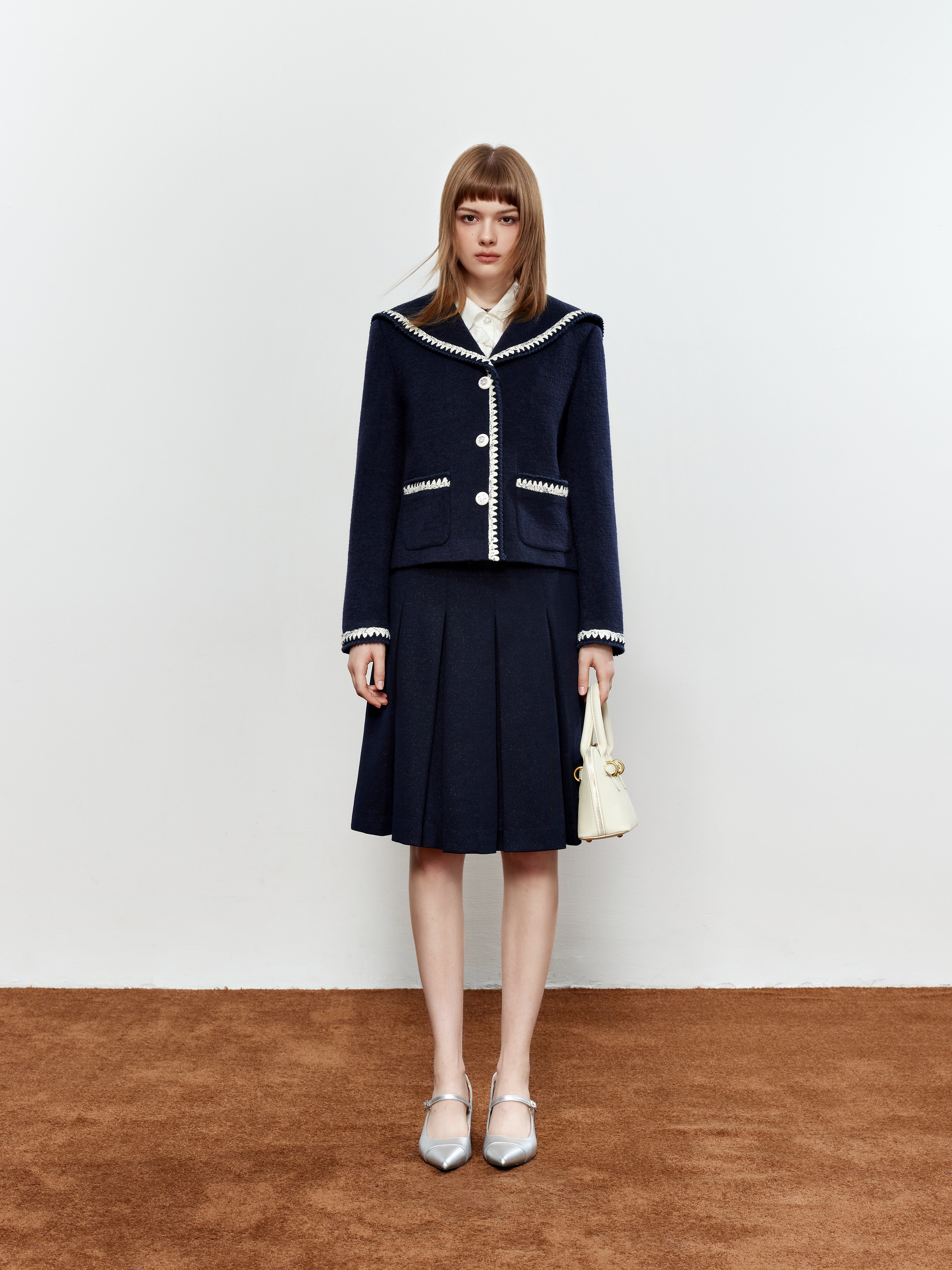 ROCHA ROMA Sailor Collar Lace Trim Jacket+Skirt